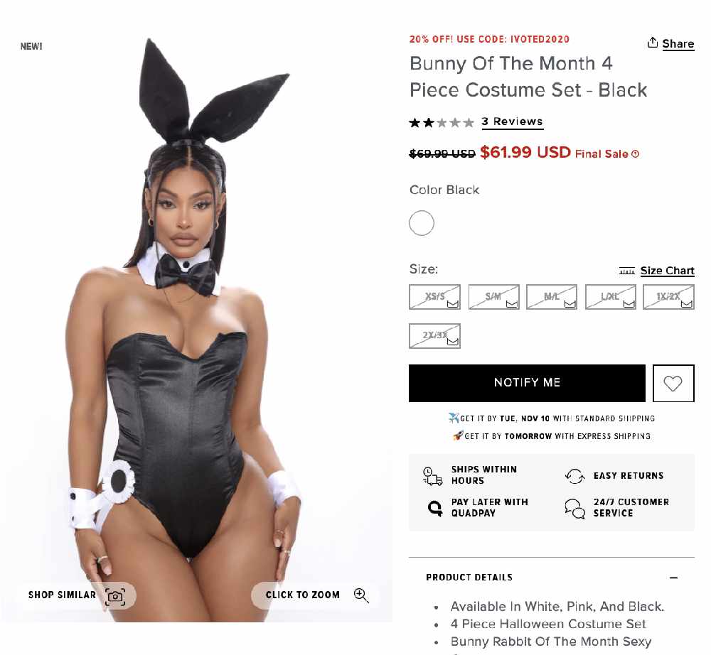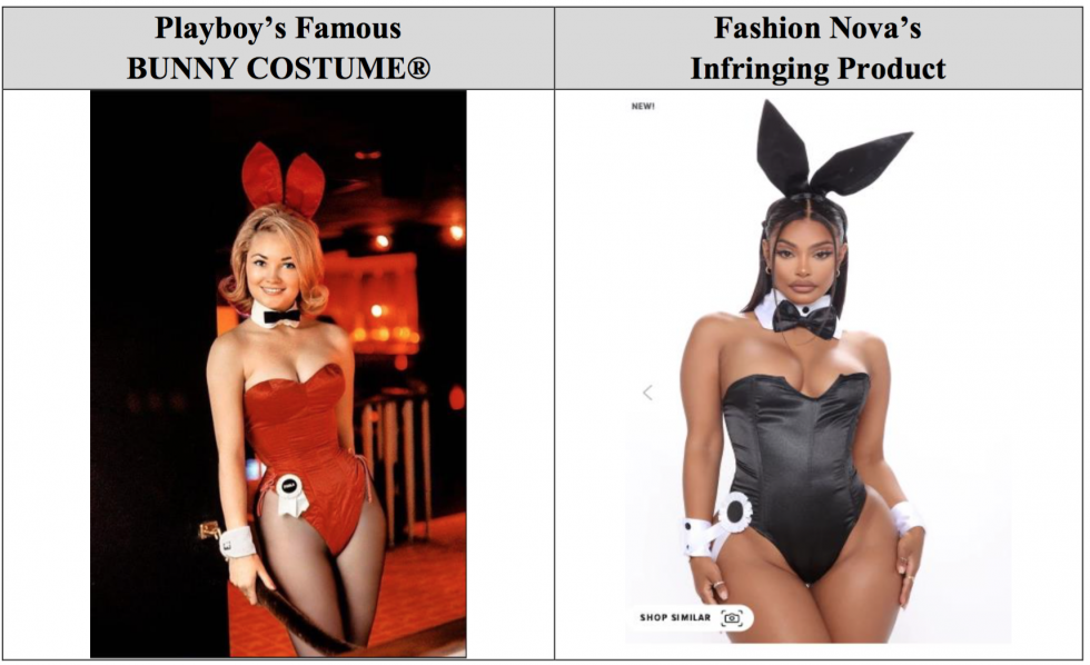 Secondo quanto riportato da TMZ, dopo aver inviato una lettera di diffida al brand di fast fashion, che non è stata in nessun modo ascoltata, Playboy si è trovato costretto a intentare causa contro Fashion Nova, per aver copiato (deliberatamente, secondo il magazine) il suo costume più iconico nei minimi dettagli, come i polsini, il collare, il corsetto, le orecchie da coniglio e persino la coda, commercializzandoli come costumi di Halloween. Inizialmente inoltre Fashion Nova aveva messo in vendita i costumi con il nome di 'Bunny of The Month', un chiaro riferimento al titolo di 'Playmate of the Month', reso famoso da Playboy, che ne detiene anche il trademark. Nel frattempo, nonostante l'azione legale, Fashion Nova non ha ritirato dalla vendita i costumi incriminati, ma ha semplicmente cambiato il loro nome, trasformandoli in 'Miss B Bunny' e 'Bunny Hop', declinando qualsiasi commento sulla questione.