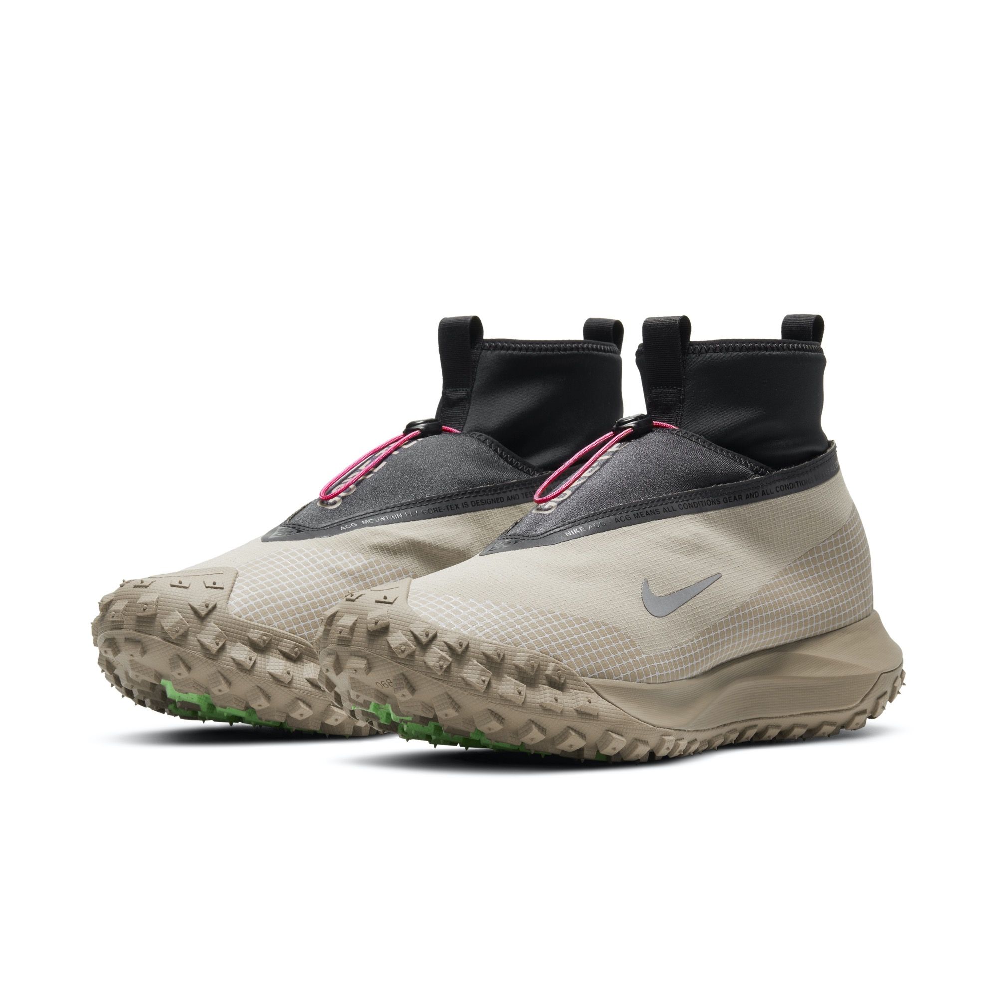 Infine la proposta è completata da due nuove sneaker, perfette per l'outdoors: la Nike ACG Mountain Fly GORE-TEX e la colorway invernale della Nike ACG Air Nasu GORE-TEX. La prima, che riprende la forma di un boot, è caratterizzata da una tomaia in GORE-TEX, entrambi elementi che assicurano la massima performance e protezione dagli agenti esterni, completata da un'estetica e da una suola riprese dalla Nike React, per assicurare comfort ed aderenza al terreno. Grazie ad una suola con un motivo waffle, la Nike ACG Mountain Fly GORE-TEX è pensata invece per ogni tipo di superficie rocciosa.