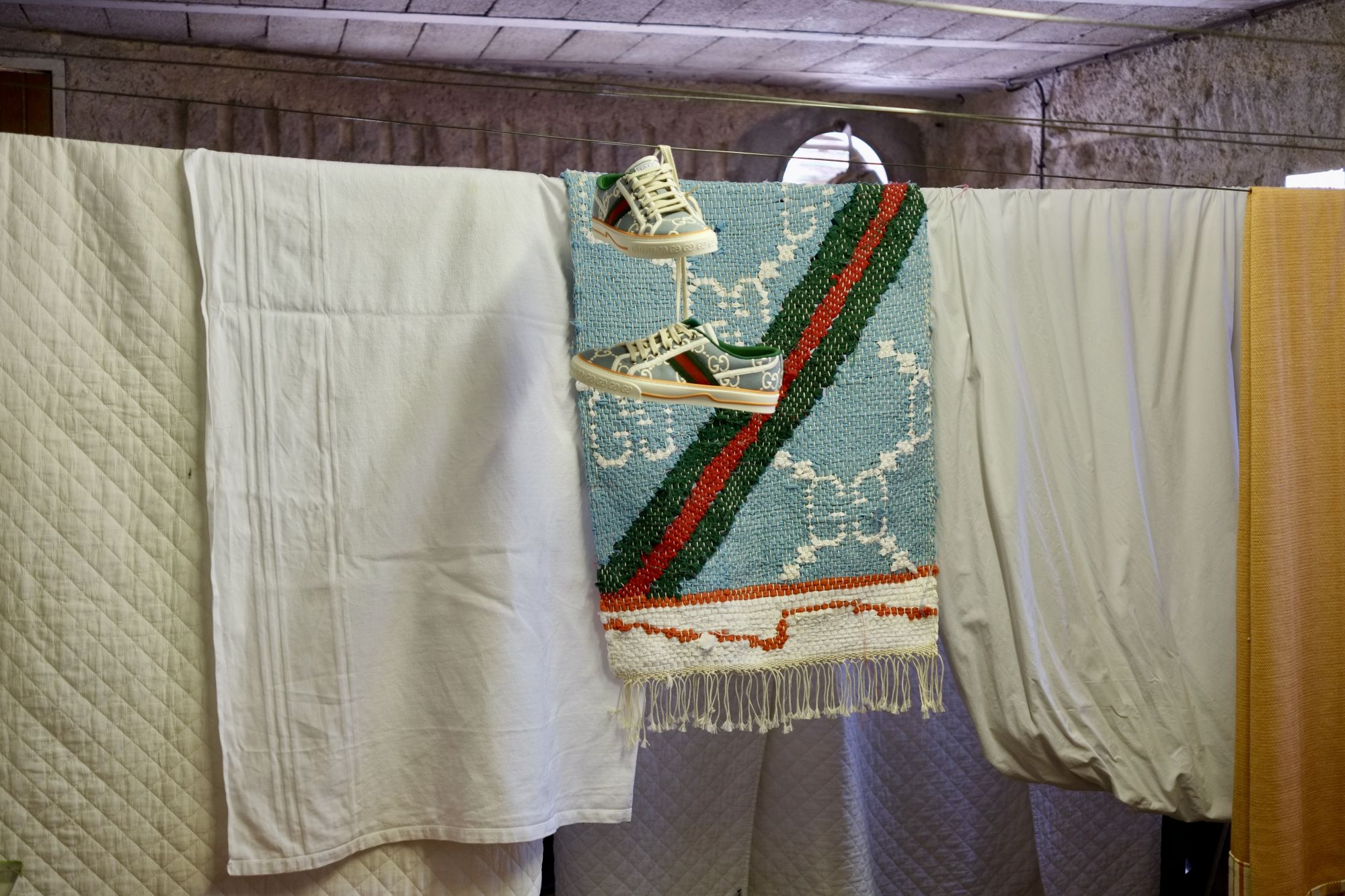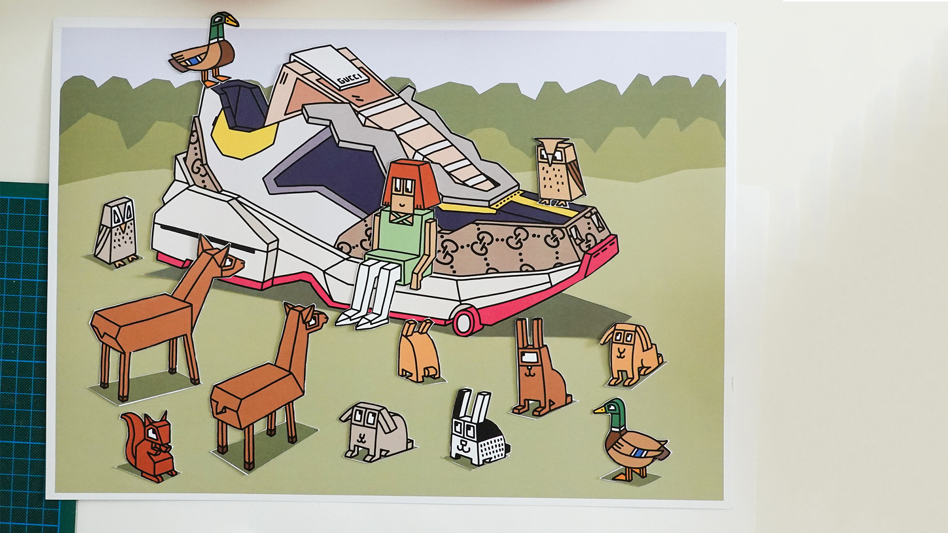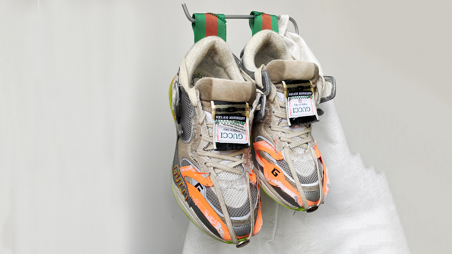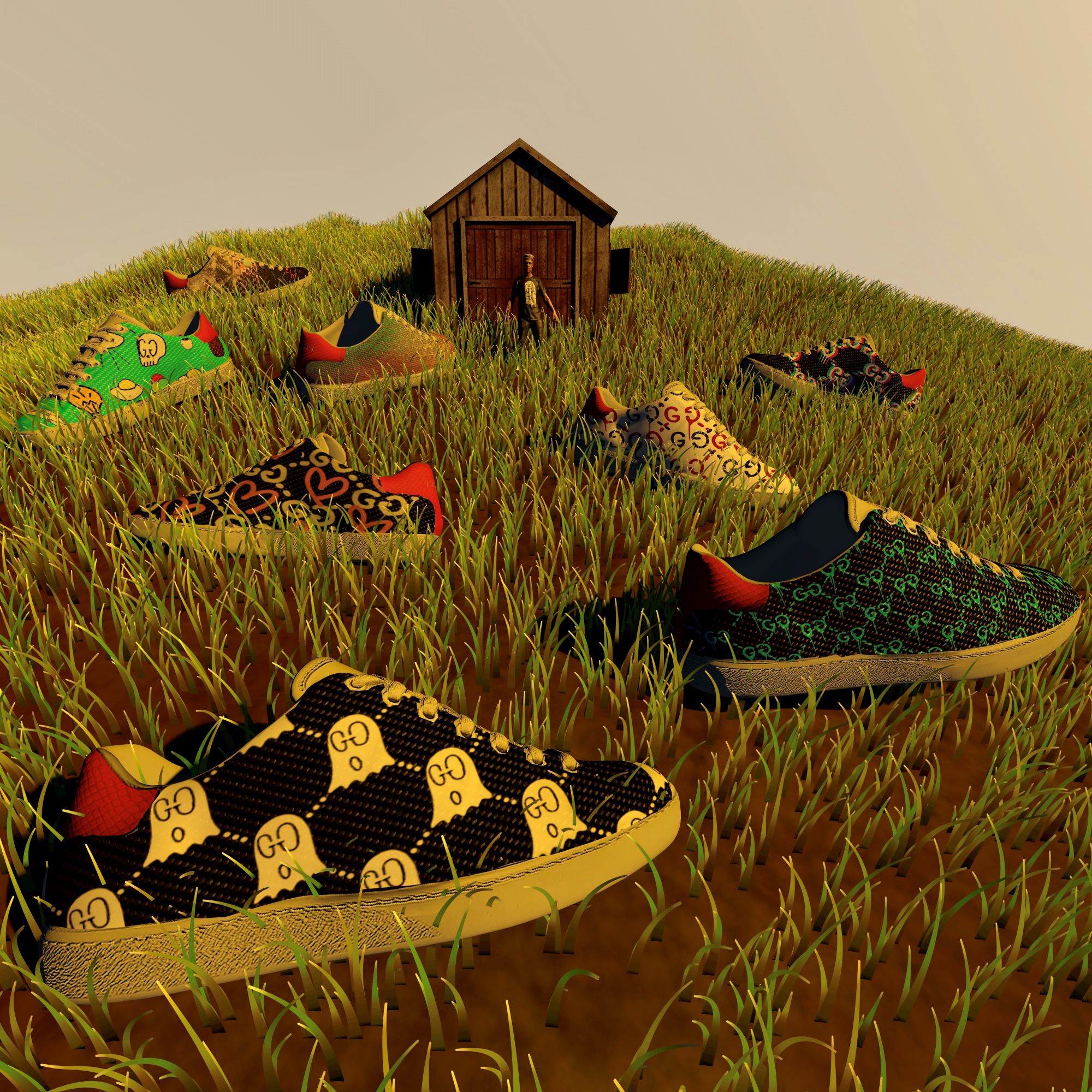 Per l’occasione, inoltre, Gucci ha contattato il suo network di creativi e artisti che hanno creato una propria personale versione delle più celebri silhouette del brand, declinandola in base alla propria disciplina artistica. Così il plant design studio di New York Bodega Rose ha creato un vaso a forma di Ultrapace R, l’artista Christopher Chan ha trasformato la Ace in una delle sue sculture squadrate e il designer Mattias Gollins ha tempestato il modello Tennis 1977 di perle e gemme. Ma la lista continua e include nomi come l’artista tessile Delphine Denereaz, l’illustratore Ghica Popa, la sneaker artist Helen Kirkum e molti altri.