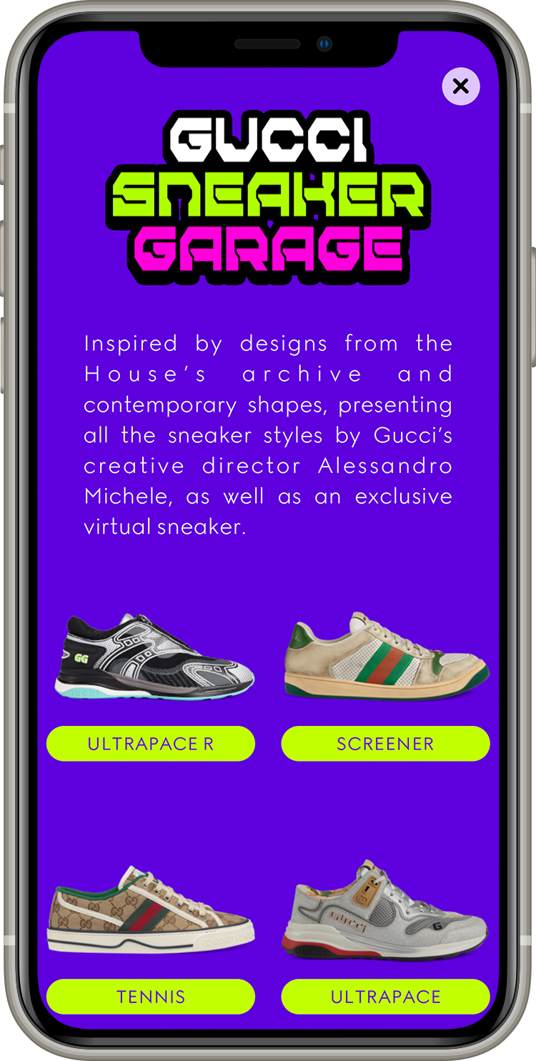 Fa il suo debutto oggi Gucci Sneakers Garage, la nuova sezione dell’app di Gucci dedicata alla prima sneaker virtuale disegnata da Alessandro Michele, oltre che alla versione digitalizzata di tutti i modelli già disponibili per Gucci. Insieme al design di Michele, inoltre, gli utenti potranno far indossare ai propri avatar le sneaker virtuali, e avranno inoltre la possibilità di customizzare o creare da zero il proprio modello combinando tomaie, suole e pattern delle sneaker Gucci.
