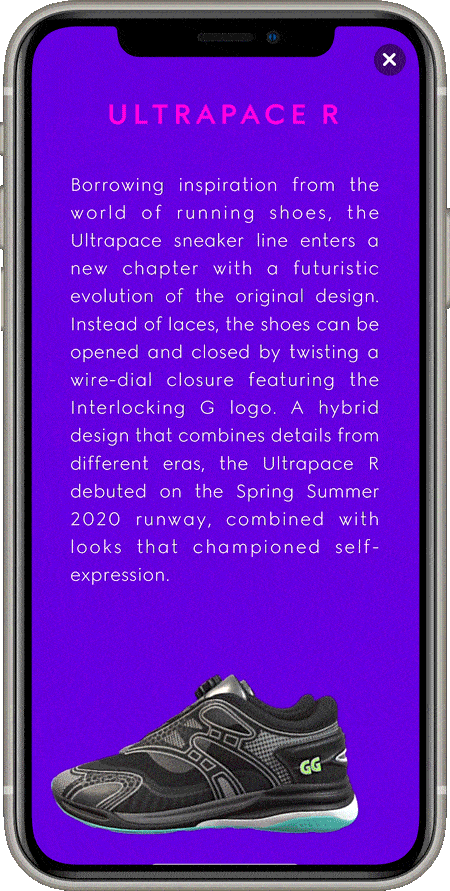 Le silhouette digitali di Gucci Sneaker Garage saranno disponibili anche su Aglet, app interamente dedicata agli sneakerhead che permette agli utenti di accumulare valuta virtuale muovendosi nel mondo reale con indosso delle sneaker virtuali, che poi possono essere utilizzati per acquistare delle sneakers. Più rare sono le sneaker virtuali indossate, più denaro virtuale si potrà ottenere – e i sei modelli di Gucci che stanno per sbarcare sull’app saranno fra i più rari e preziosi di tutti. Gli utenti saranno anche in grado di caricare i propri outfit su Roblox e VRChat e vederli adattarsi alla forma dei propri avatar.
