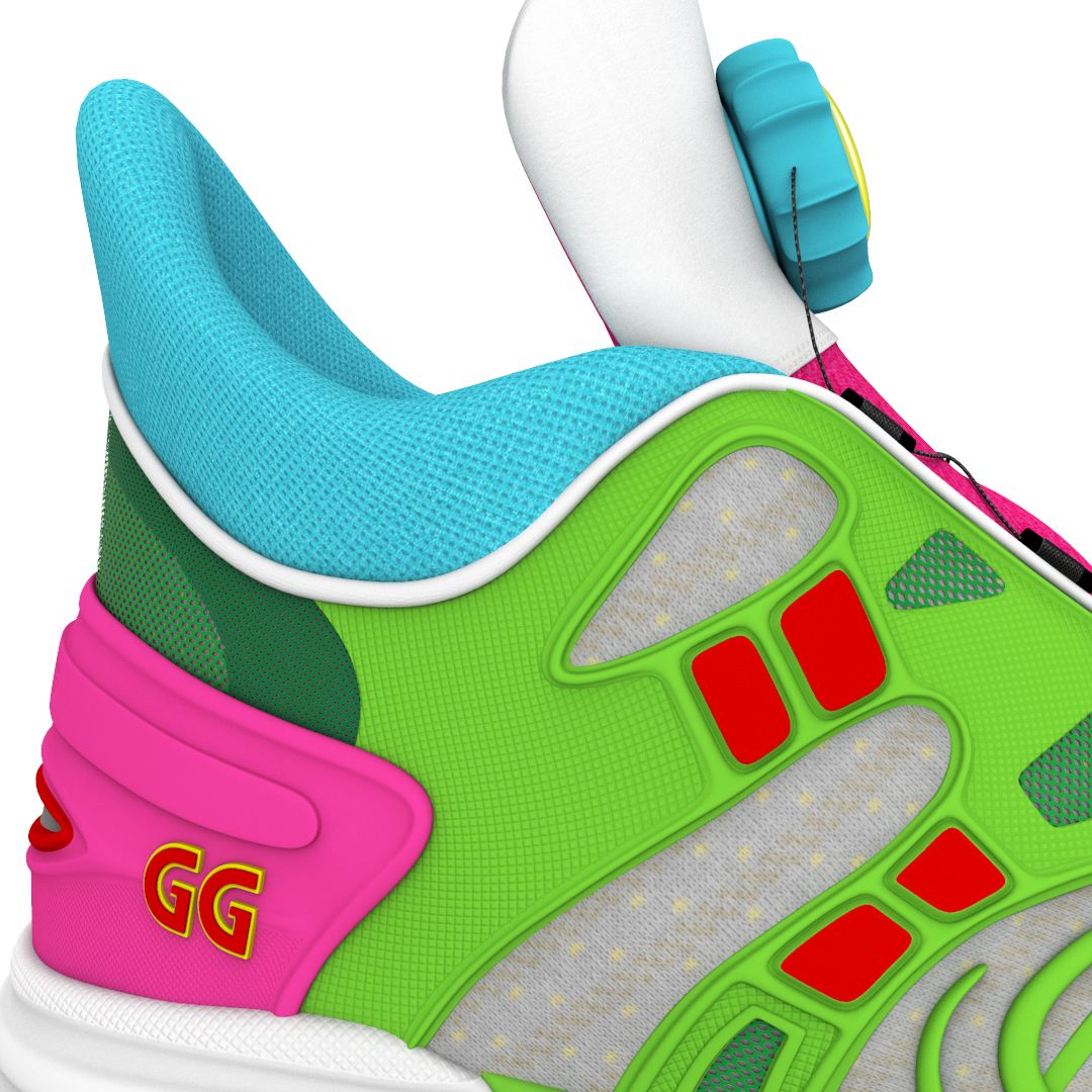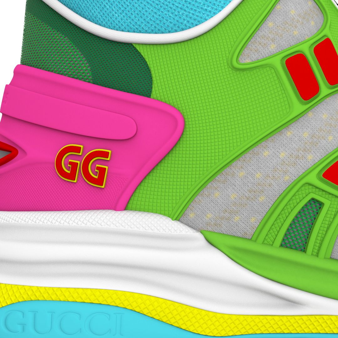 La nuova sneaker all-digital firmata da Michele si chiama Gucci Virtual 25 ed è il simbolo stesso della nuova iniziativa: un ibrido iperrealistico di high-top e low-top ispirato all’estetica degli anni '80, con una tomaia verde strata e composta di diversi materiali, una suola chunky e il logo della doppia G sulla suola.