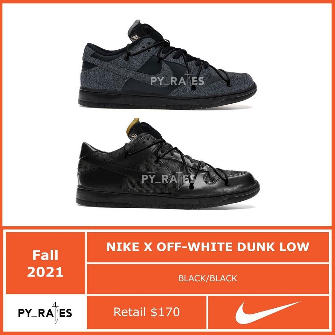 Le Black colorways delle Off-White™ x Nike Dunk Low dovrebbero uscire nell'autunno 2021, ad un prezzo di circa 170$.