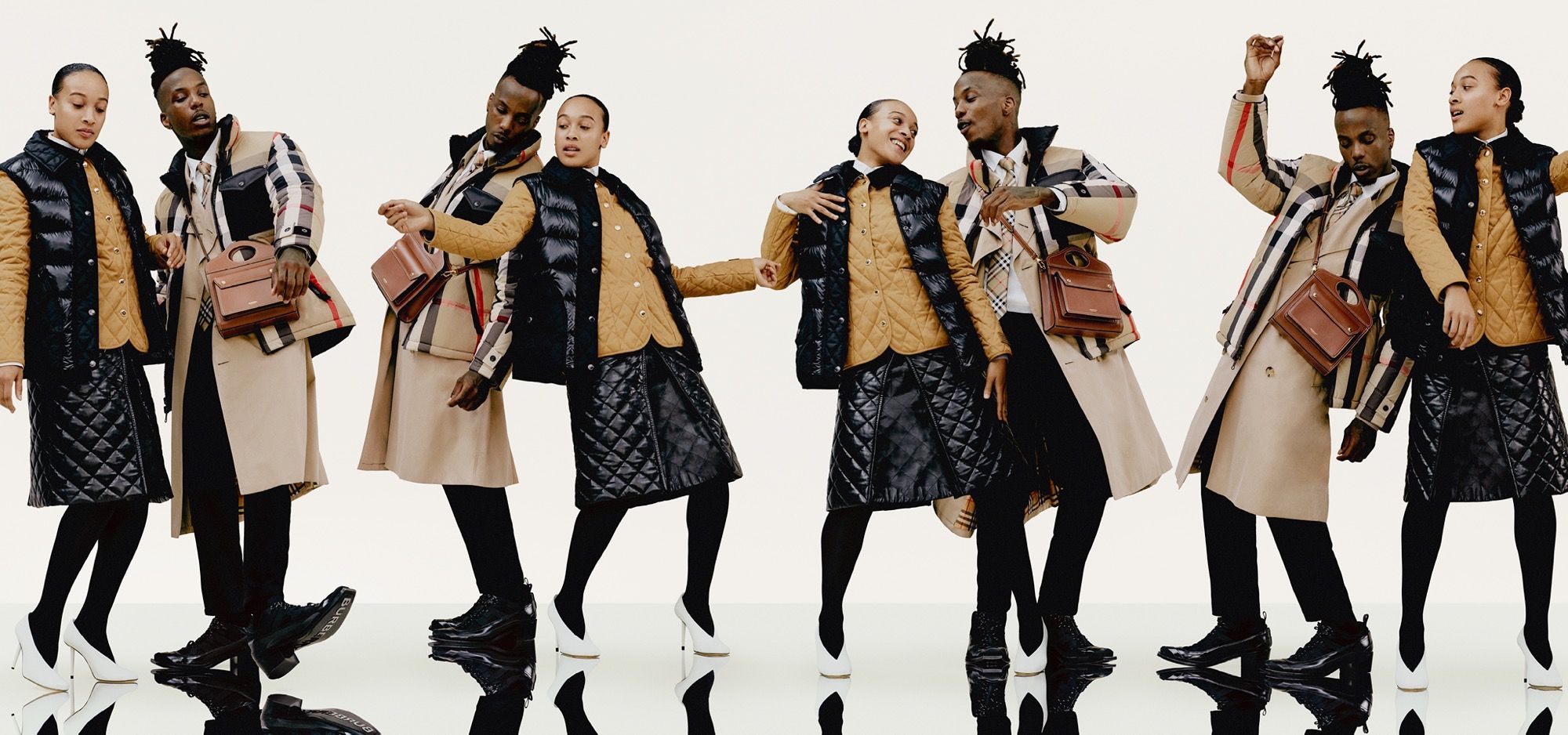 Le immagini della campagna, fotografata da Rafael Pavarotti con lo styling di Ibrahim Kamara, riflettono la fusione di mondi diversi, diventando così la combinazione creativa di sport, alta moda e danza. Tra i capi fotografati spiccano item simbolo del DNA del brand, come capispalla, trench, giacche trapuntate a rombi e piumini con cappuccio realizzati in nylon riciclato. Gli accessori includono la Pocket Bag, una tote in tela e pelle con impunture ispirata all'archivio.