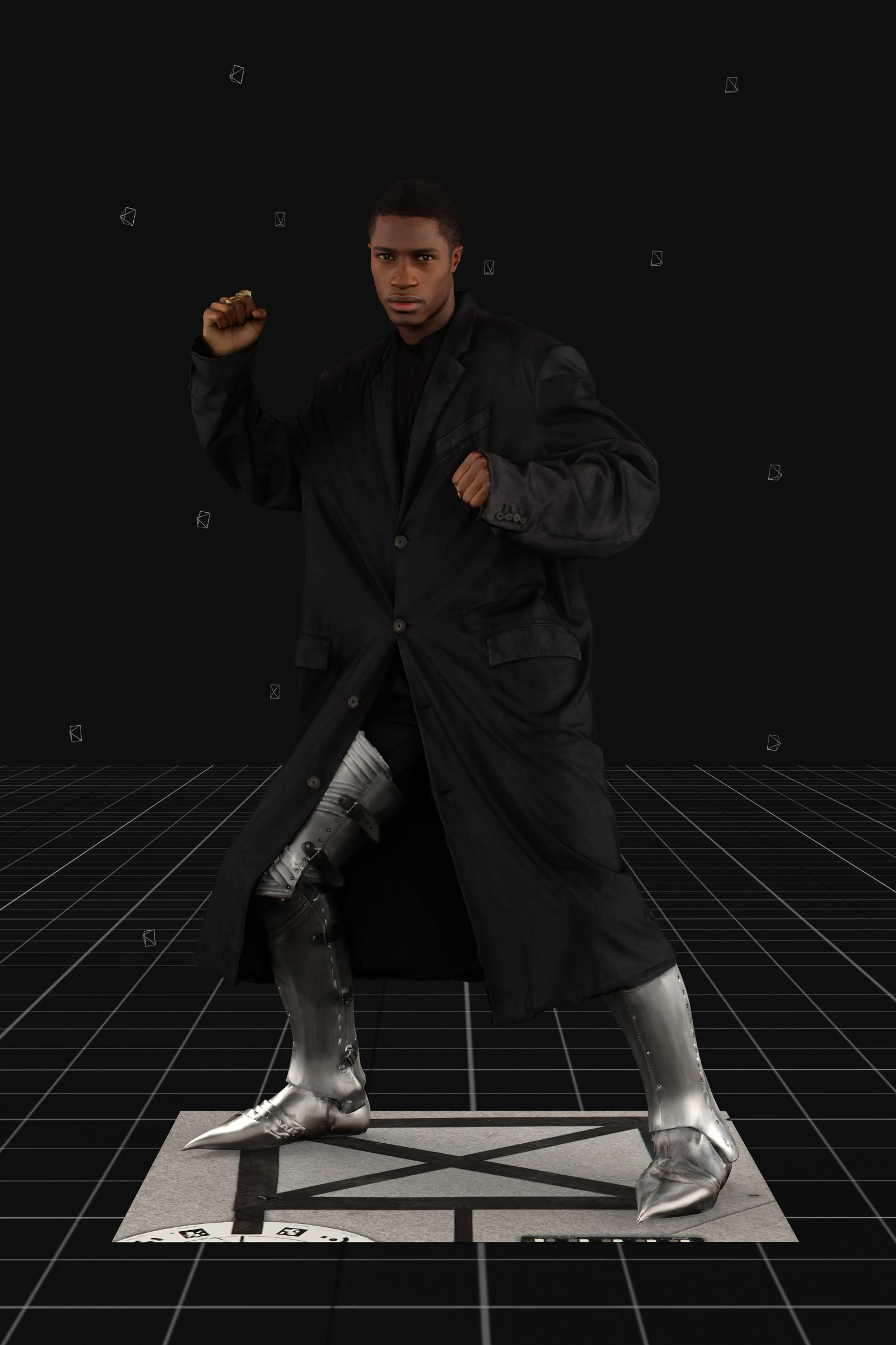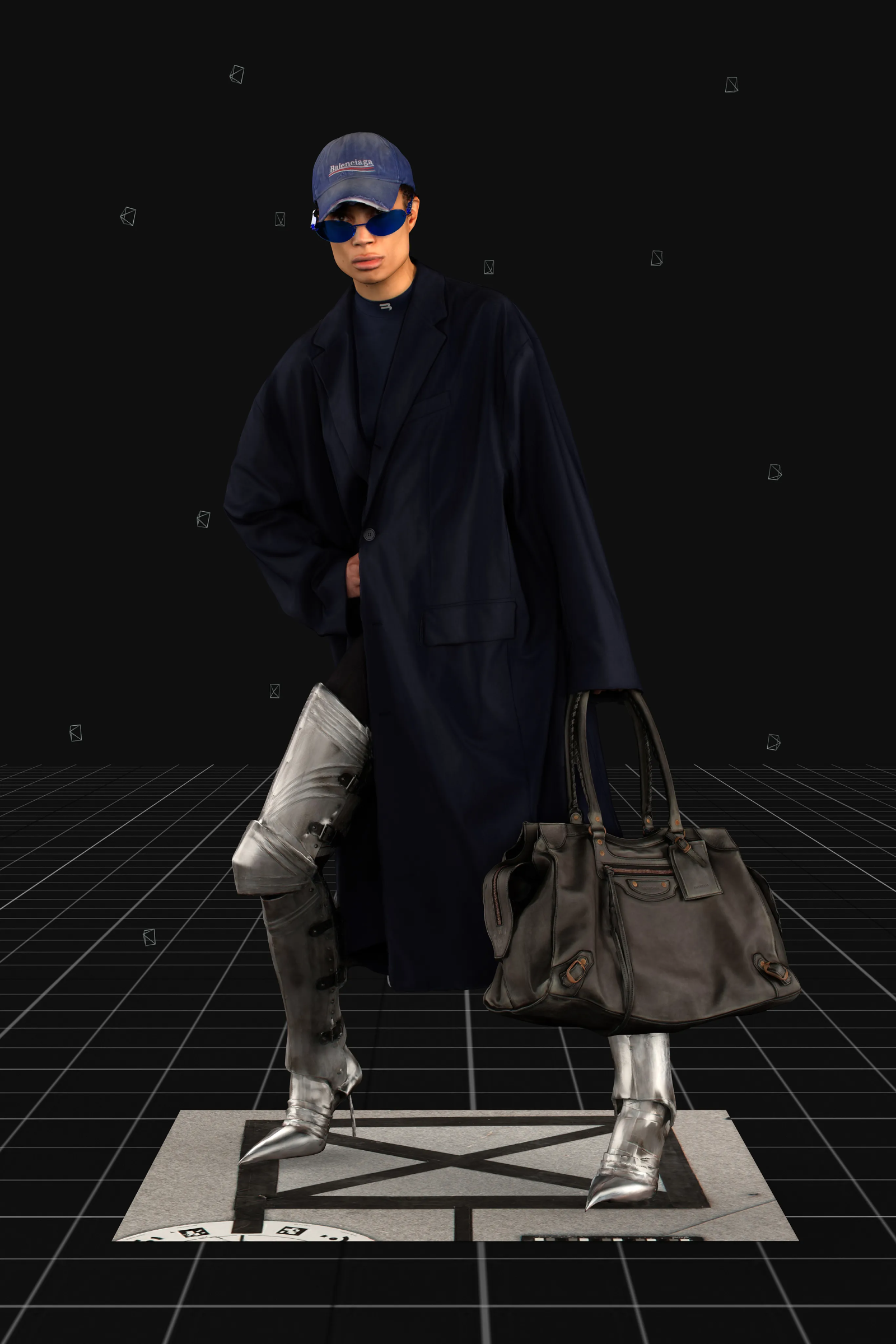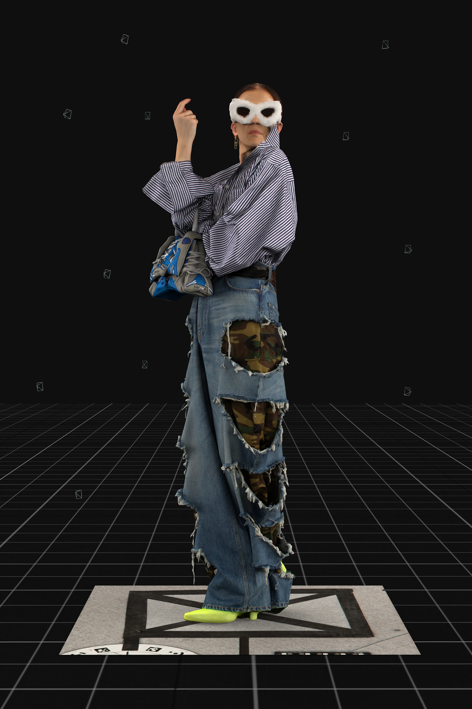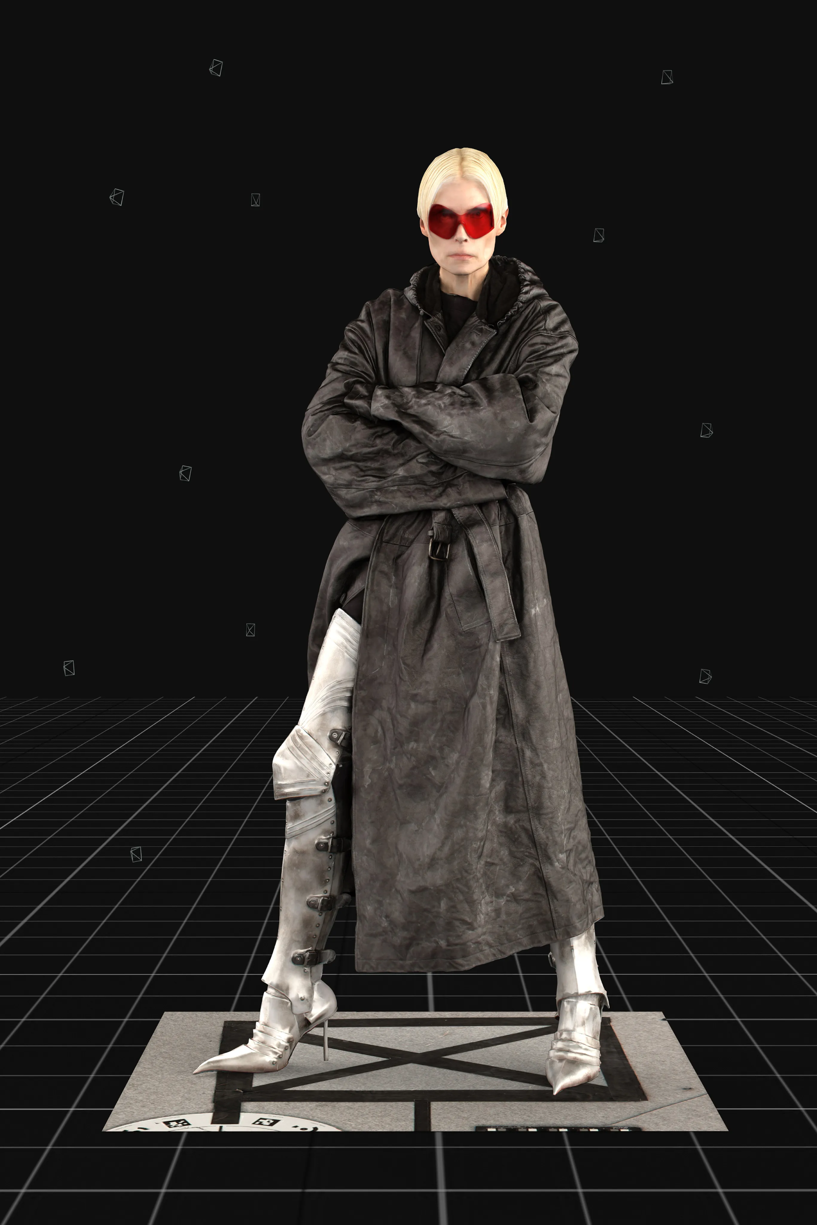 Il medium del videogame consente a Gvasalia di esaltare la dimensione scultorea dei look, che è possibile analizzare in massimo dettaglio e a 360° dopo aver conluso il «viaggio allegorico» del videogioco. La novità rispetto alle precedenti collezioni è l’aggiunta di un aspetto di texture e patina ai classici design di Gvasalia, che rende gli abiti da un lato più colorati e da un lato dotati di una patina “invecchiata” che è sia parte del moodboard apocalittico-distopico immaginato per la collezione sia risultato dell’upcycling di materiali di scarto del brand. Ci saranno, in edizione limitata, una versione in cuoio degli stivali a forma di armatura che si vedono attraverso i cinquanta look della collezione – stivali che, per il gioco, sono stati creati in un’autentica versione metallica da un artigiano francese specializzato nelle ricostruzioni storiche.
