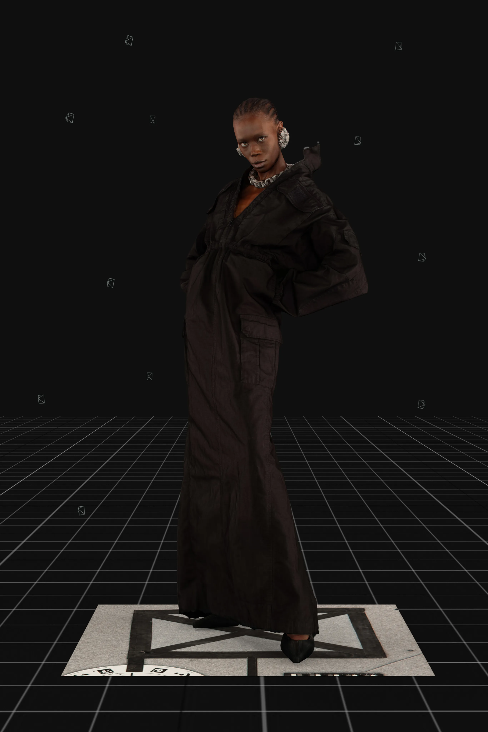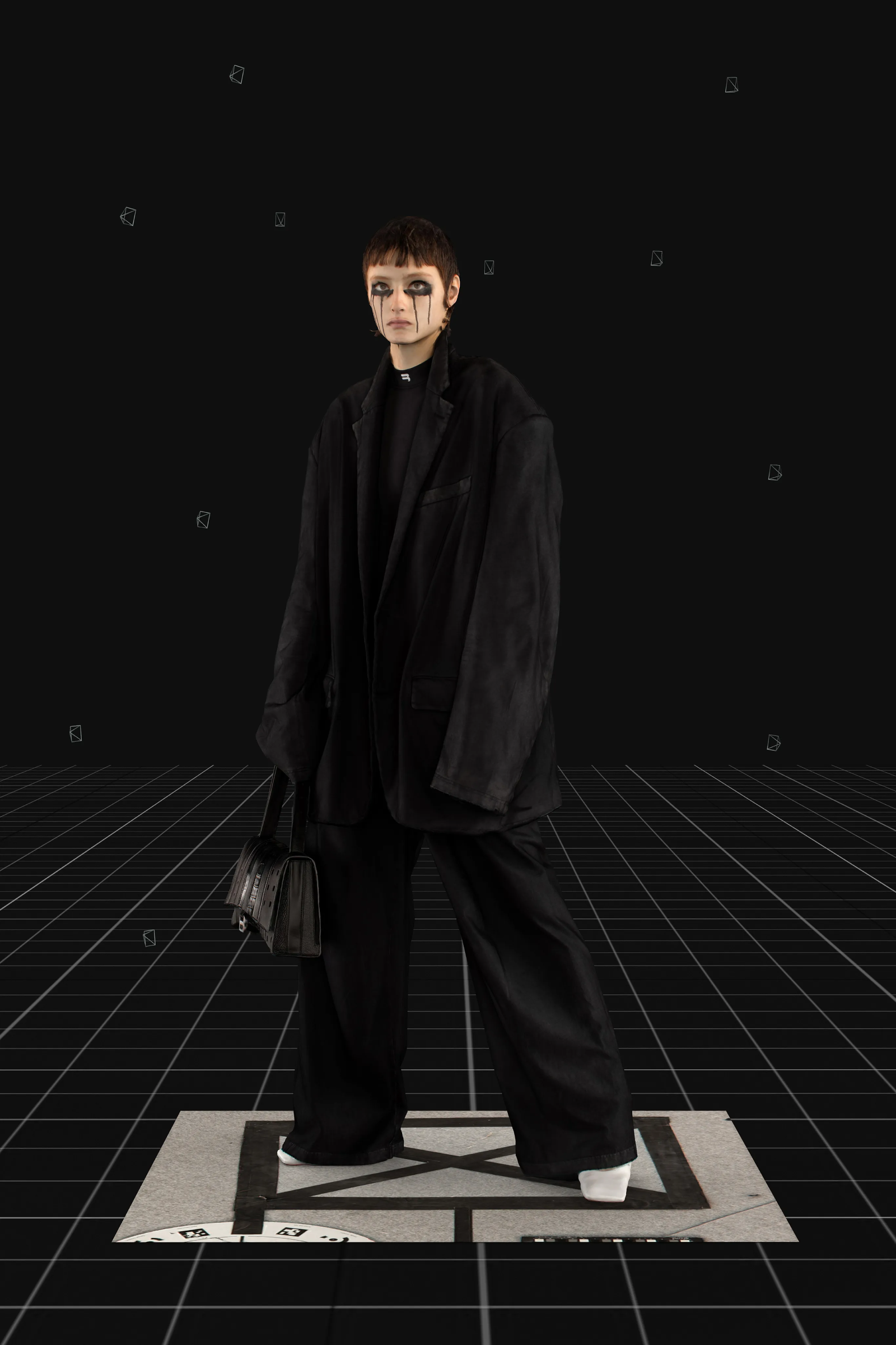 Sul versante dell’estetica pop, si aggiungono alla collezione apparizioni del logo NASA e della PS5 – un tentativo che, come Gvasalia stesso ha ammesso, è mirato al pubblico sempre crescente dei gamer («un’importante base dei consumatori del lusso») ma che guarda anche alla cultura neo-occultistica del manifesting che sta prendendo piede in America e sui social media. La scena finale del gioco, con la protagonista che respira dopo aver affrontato il suo viaggio, è carica di messaggi spiritualistici a cui si allinea una coscienza e una paura del futuro che sono assolutamente moderne. Gvasalia ha detto a Vogue: