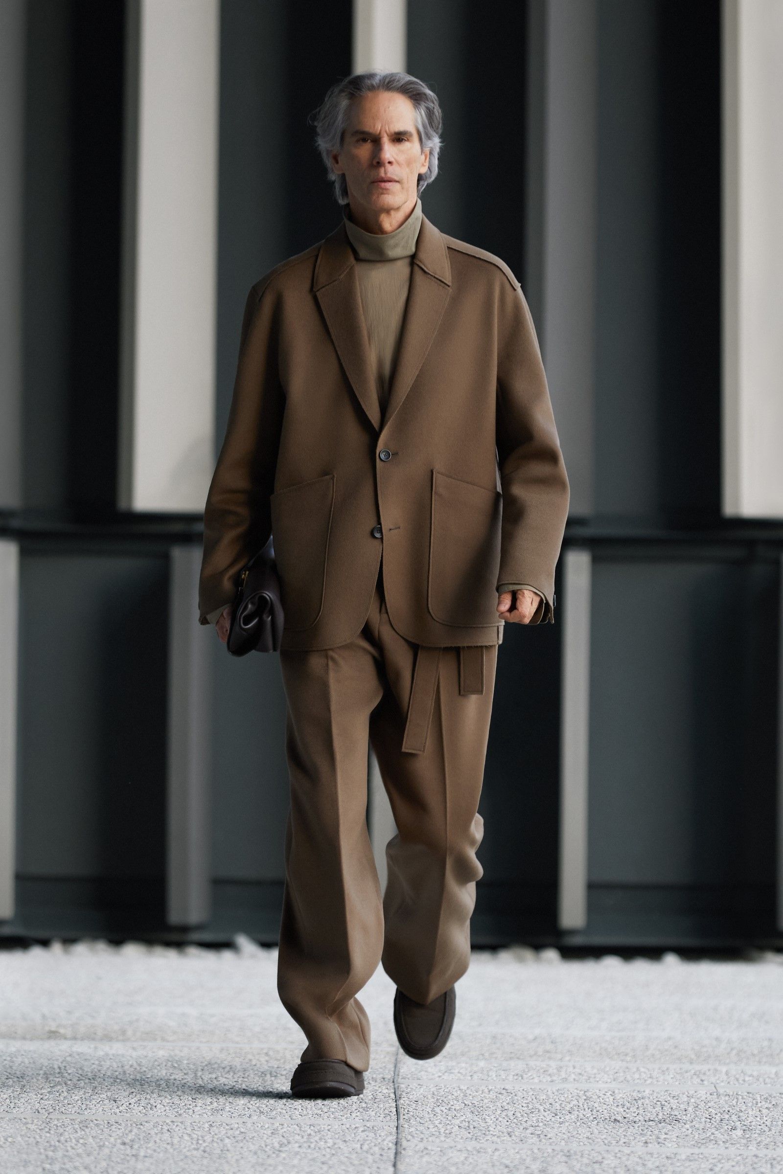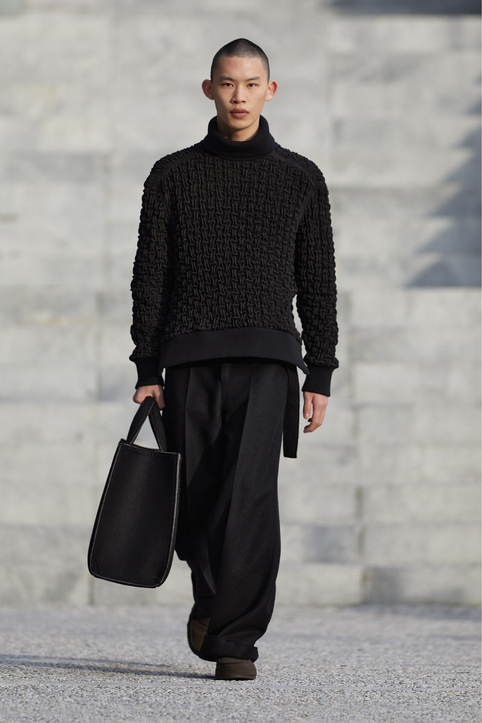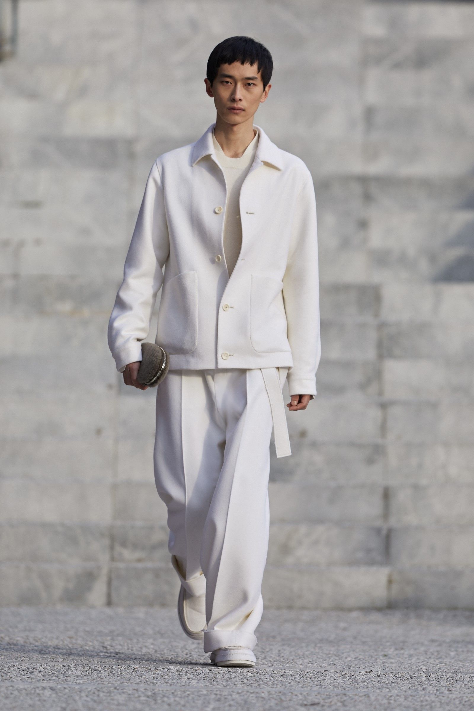 Per la collezione FW21 del brand, infatti, Sartori ha portato a compimento quello straordinario lavoro di ammodernamento dell’uniforme maschile coltivato fin dal suo arrivo alla guida della maison. Riflettendo sulla natura dell’evoluzione come adattamento sia esteriore che interiore, oltre che sulla moderna fusione di lavoro e leisure, Sartori ha reso fluidi i codici del sartoriale: esteriormente proponendo un nuovo paradigma che renda l’abito maschile assolutamente moderno; interiormente rendendo quella stessa sartorialità intimistica e confortevole.
