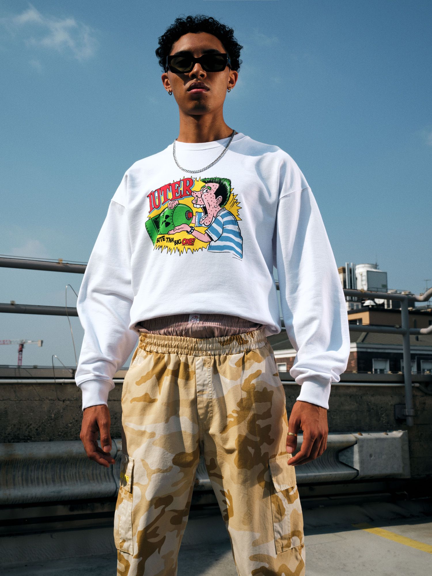 Tee, hoodie, giacche e altri item decorati dalle illustrazioni della rivista fondata da Vincenzo Sparagna o con quelle del cartoon di Mike Judge simbolo degli anni '90 insieme a Ilona Staller e al rap di Noyz Narcos. A fare da sfondo allo shooting c'è poi Milano, la città che ha visto la nascita e la crescita del brand, ora uno dei simboli dell'estetica e dell'evoluzione dello streetwear che ha interessato la città.