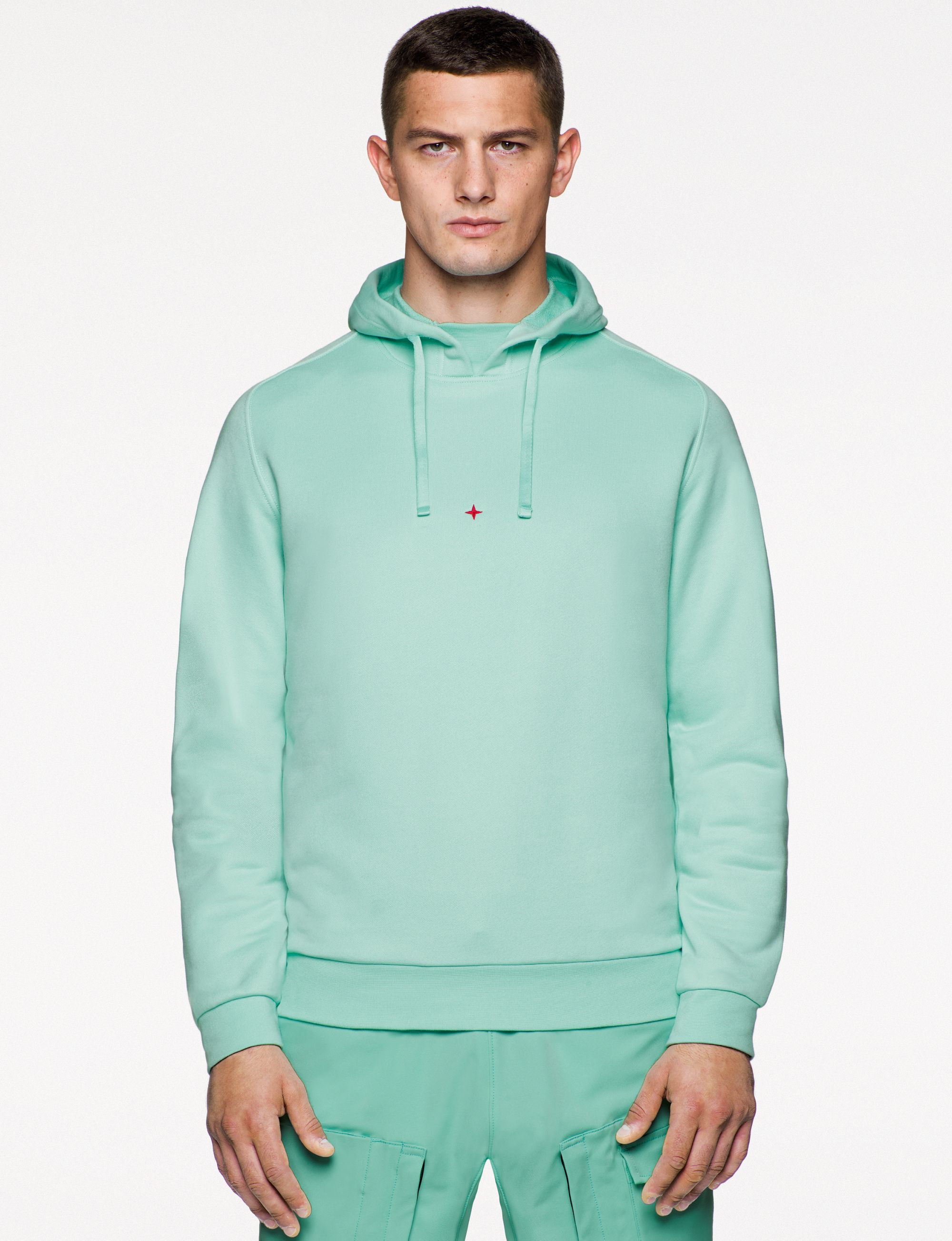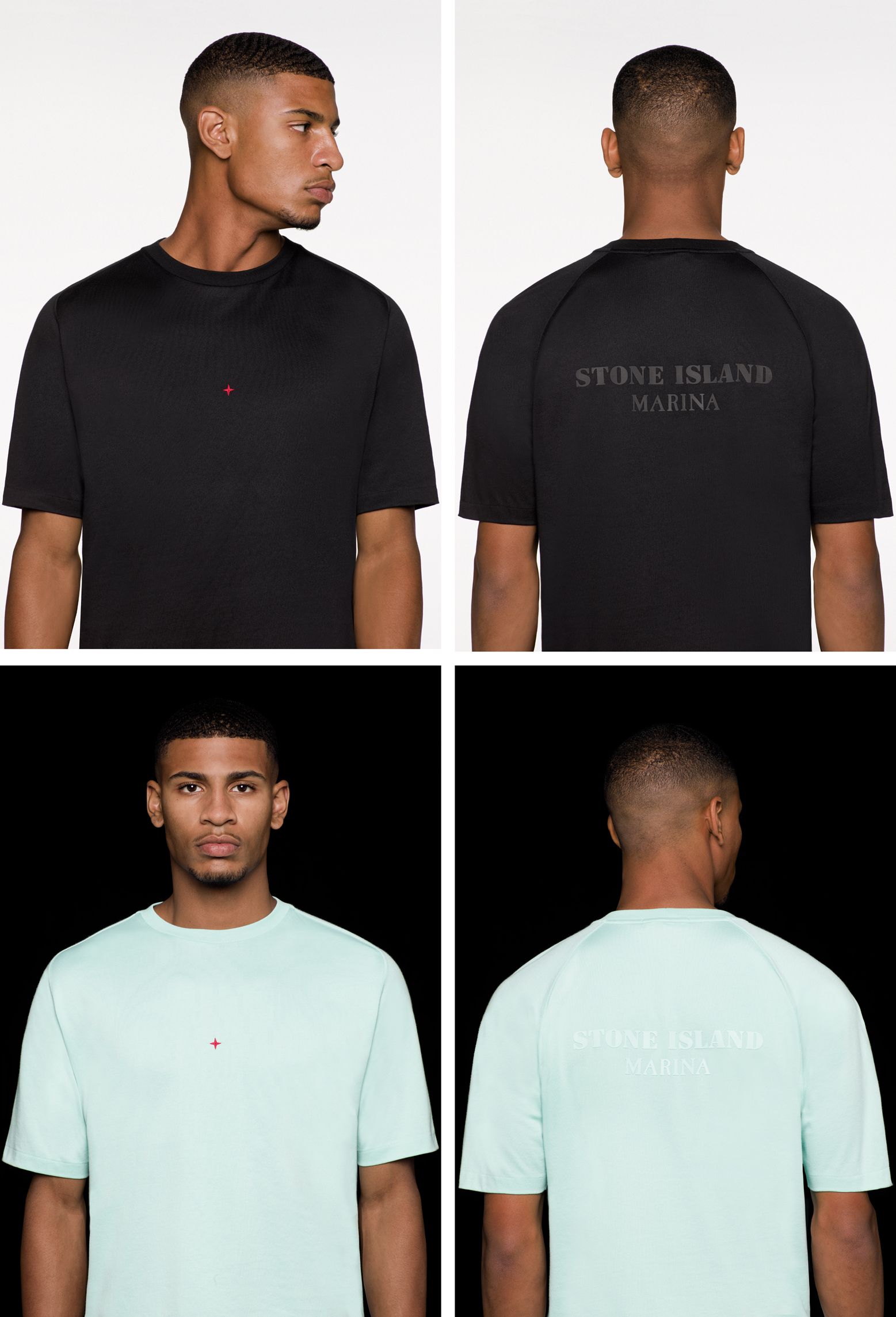 Stone Island Marina rappresenta, nel più ampio universo del brand, un punto di unione fra il lifestyle estivo e la ricerca tecnica che è il presupposto stesso di Stone Island. Per la stagione SS21 il marchio ha lavorato ad una linea di staple minimalistici, declinata in due soli colori, il verde acqua e il nero opaco, che copre tutte le categorie del menswear. Tutti i tessuti impiegati sono ad alta prestazione: con lettering realizzato con tecniche jacquard incorporate, cuciture sigillate dall’interno con un nastro brandizzato e una stella rossa ricamata che simboleggia l’appartenenza alla linea Marina.