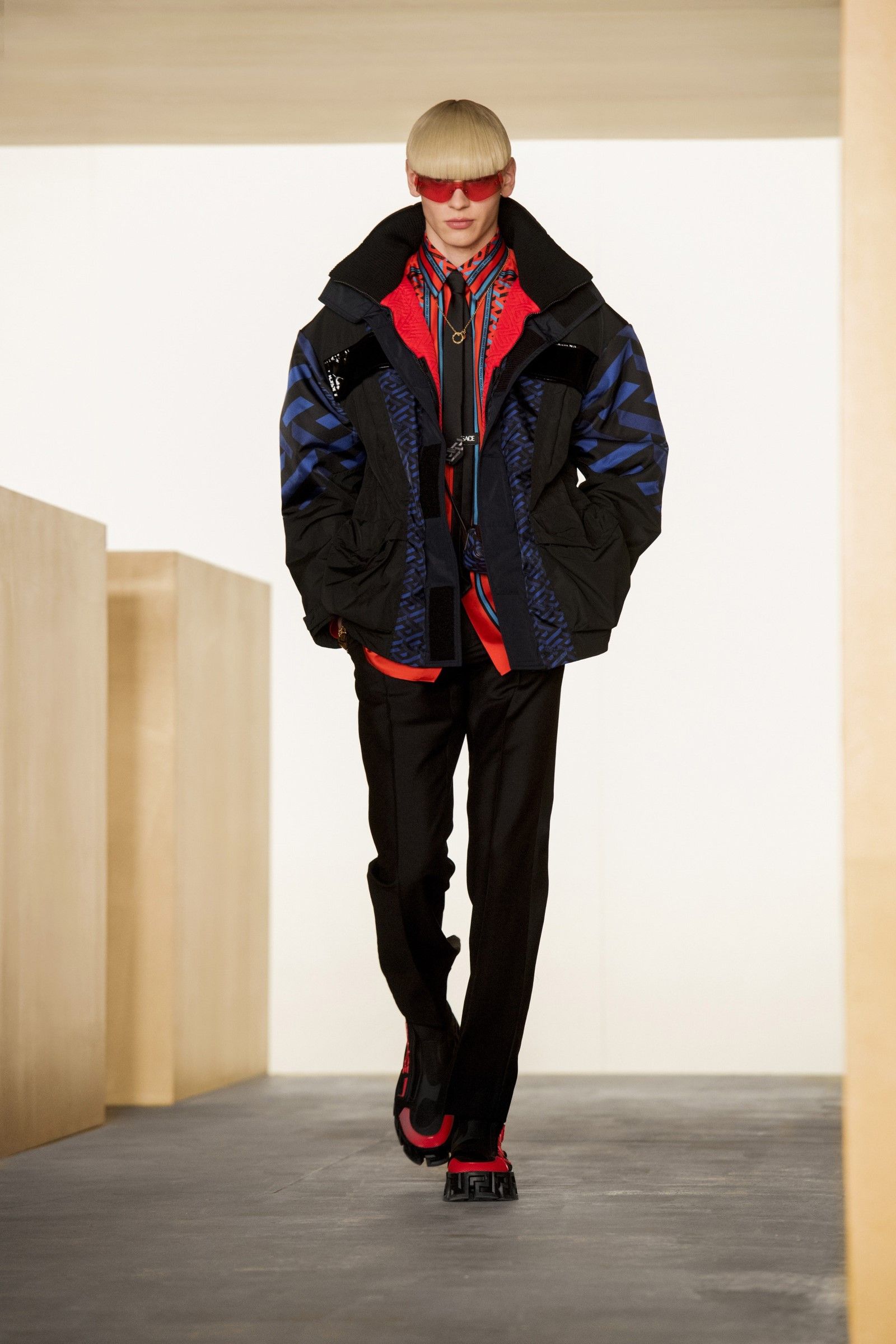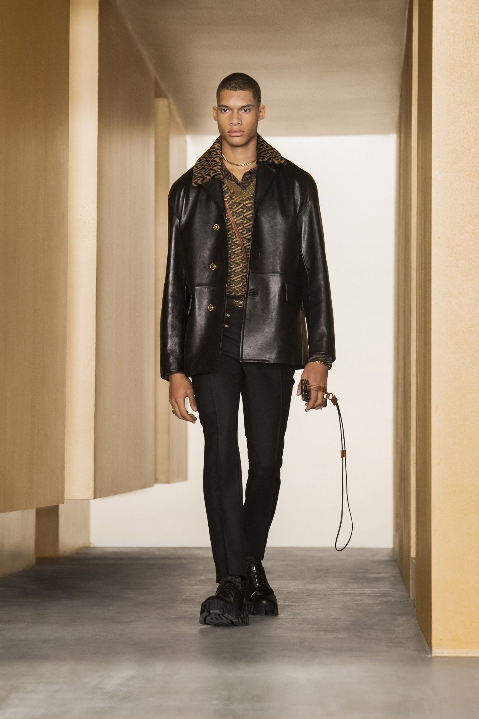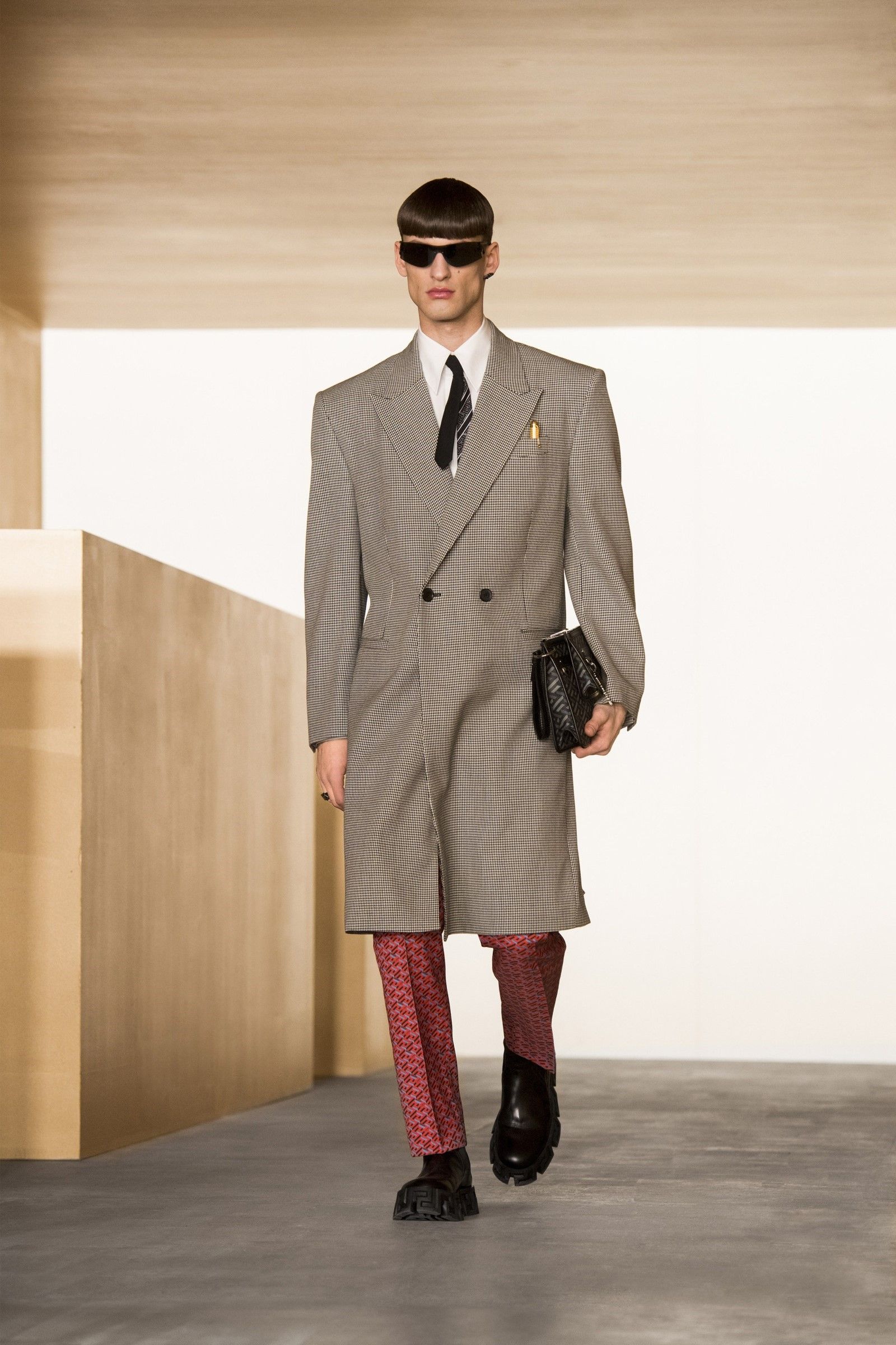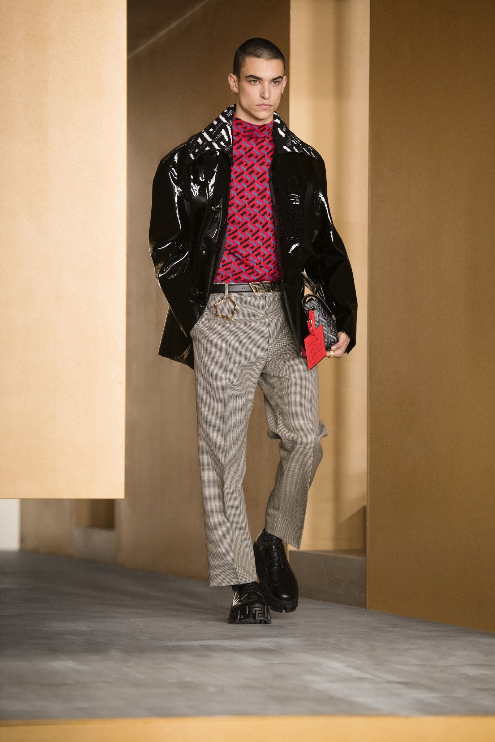 Insieme al nuovo pattern, è arrivato però anche un nuovo mood per Versace che ha abbandonato le oltranze di fantasie e di colori per realizzare una collezione dominata dal formal look, concentratissima su silhouette pulite e prodotti che suggeriscono l’idea di un lusso più discreto. In generale, la sensazione è quella che il team creativo si sia finalmente slegato dal vecchio immaginario del brand (le borchie d’oro, le sete stampate con fantasie barocche, il massimalismo iper-logato e senz’anima) e, ripartendo da zero con il nuovo pattern, abbia creato un look molto più moderno, molto più coerente e soprattutto che non cambia di una virgola l’identità del brand.