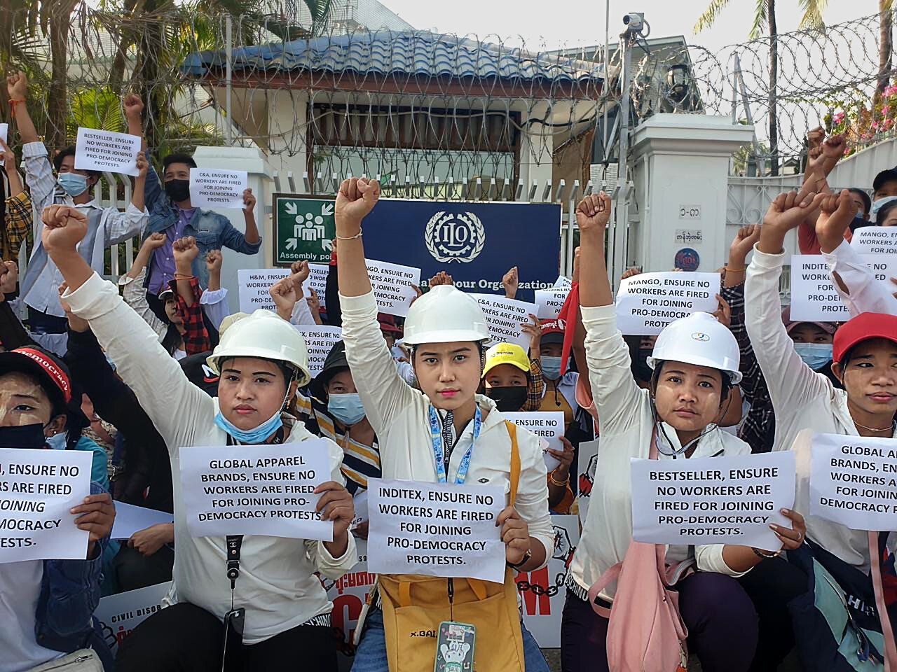 Lo scorso 19 febbraio, inoltre, i sindacati e le grandi aziende internazionali di moda che avevano sottoscritto l'ACT, l'accordo di Action, Collaboration, Transformation, inizialmente nato per contrattare stipendi adeguati, avevano dichiarato di stare seguendo con attenzione gli avvenimenti in Myanmar, dichiarando la propria adesione agli standard democratici. Tra i membri dell'accordo spiccano H&M, Inditex e Primark. La Federazione dei lavoratori dell’abbigliamento del Myanmar ha sottolineato che è fondamentale che i brand internazionali si facciano avanti per ribadire ai proprietari delle fabbriche di rispettare il diritto dei lavoratori di riunirsi e il diritto alla libertà d'espressione.