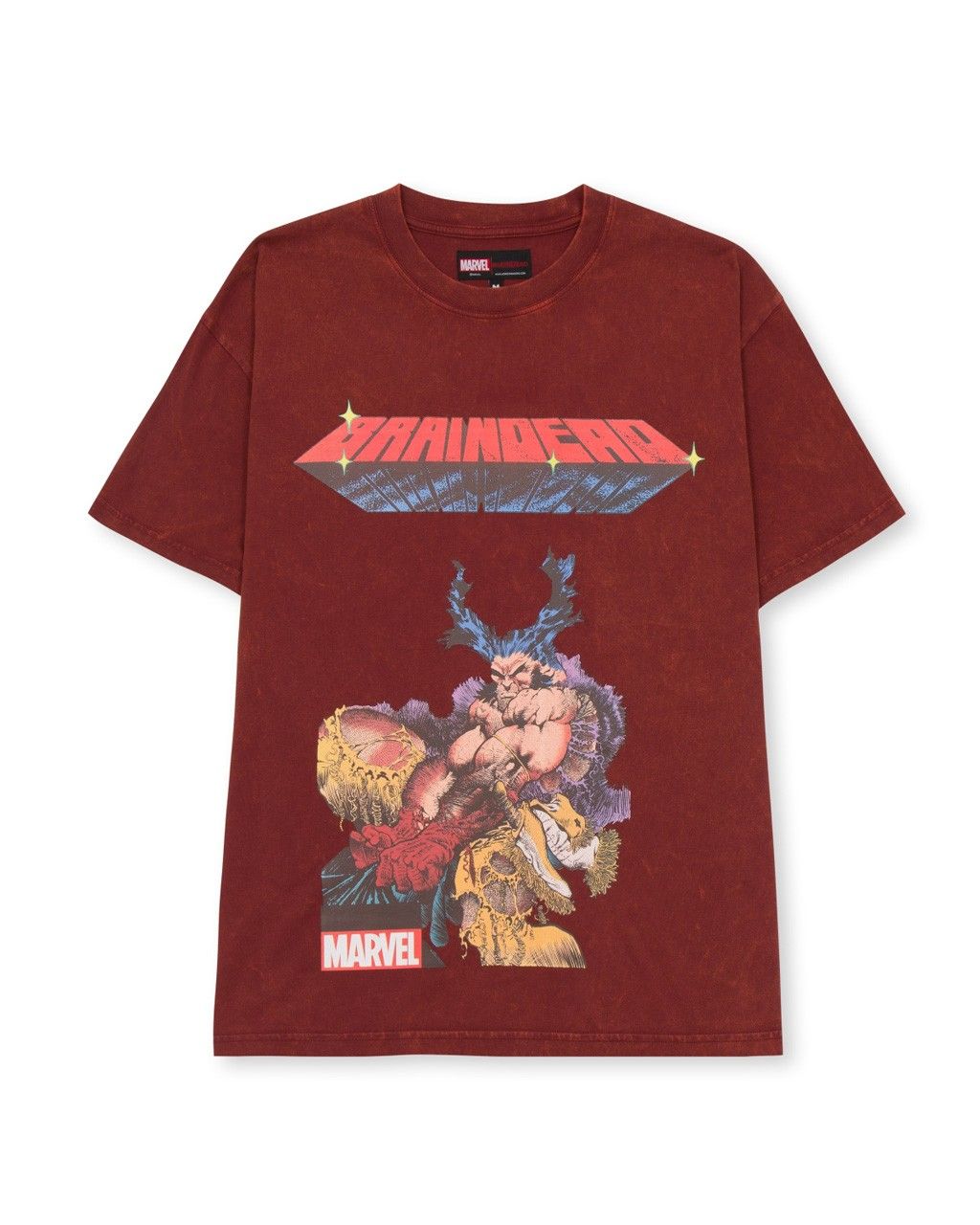 Per la sua prima incursione nel mondo dei fumetti Marvel, Brain Dead è voluto andare sul sicuro scomodando uno dei personaggi più famosi nel mondo dei supereroi, Wolverine. Il personaggio è infatti protagonista di una capsule composta da tre t-shirt, una long sleeve e una hoodie, oltre a una crewneck e una giacca, tutto decorato con alcune illustrazioni dei fumetti Marvel e dal logo Brain Dead.