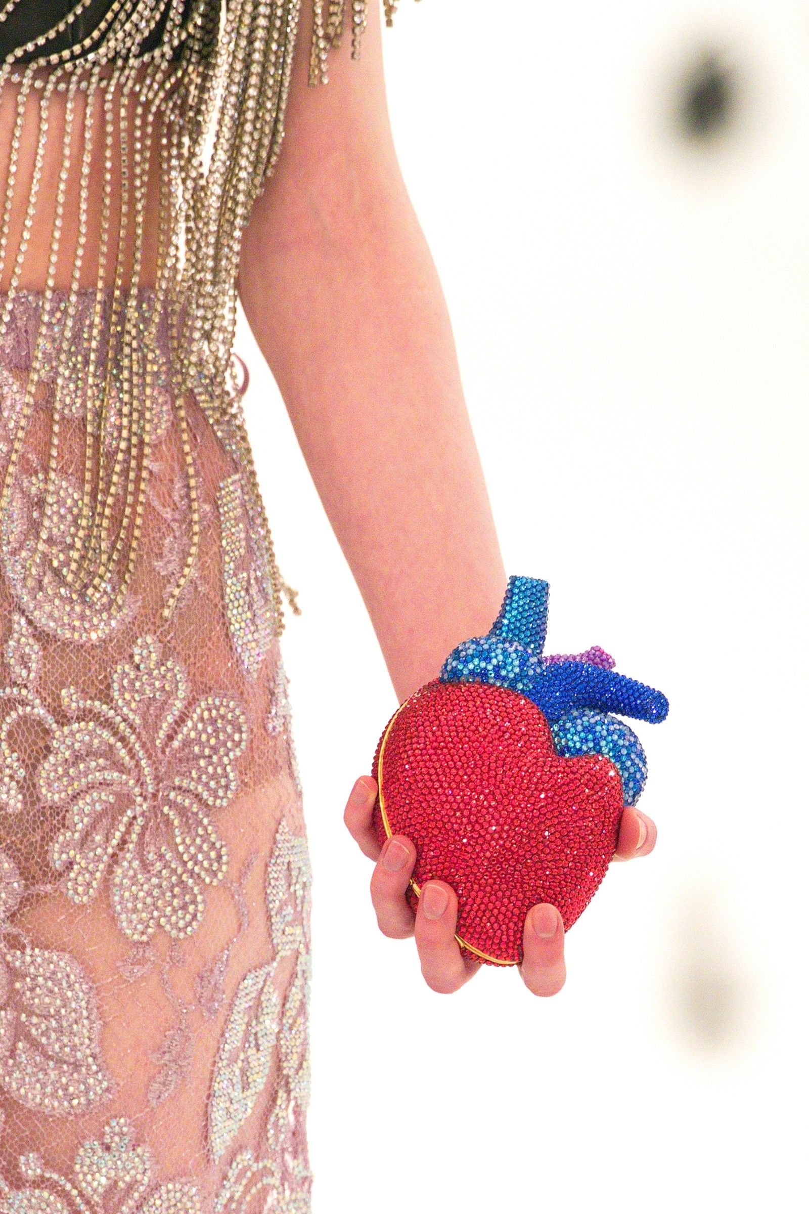 Sapevamo già che le borse sarebbero state fra le protagoniste della collezione, e senza alcun dubbio la più notevole è stata quella a forma di cuore anatomico e ricoperta di paillettes.