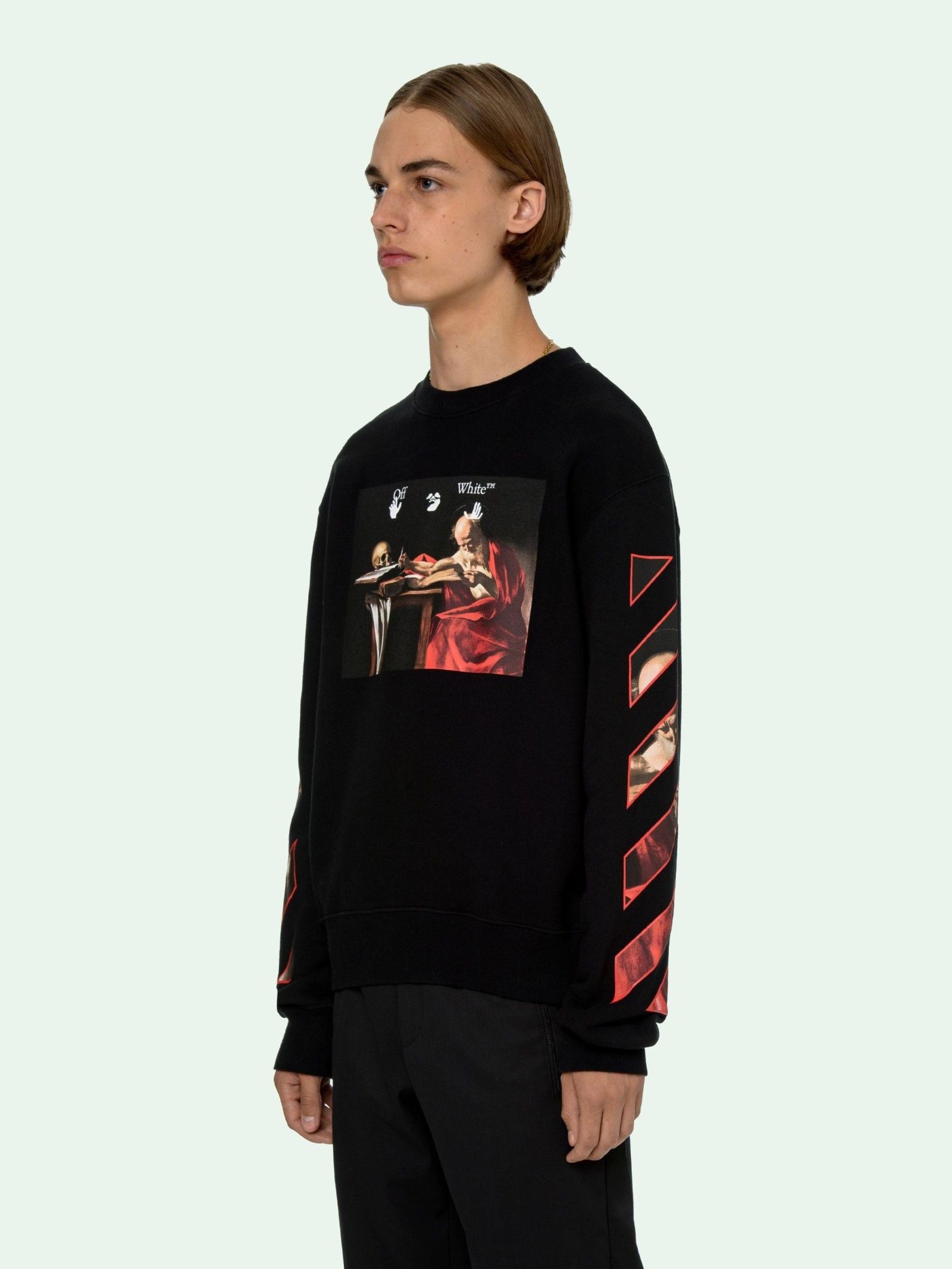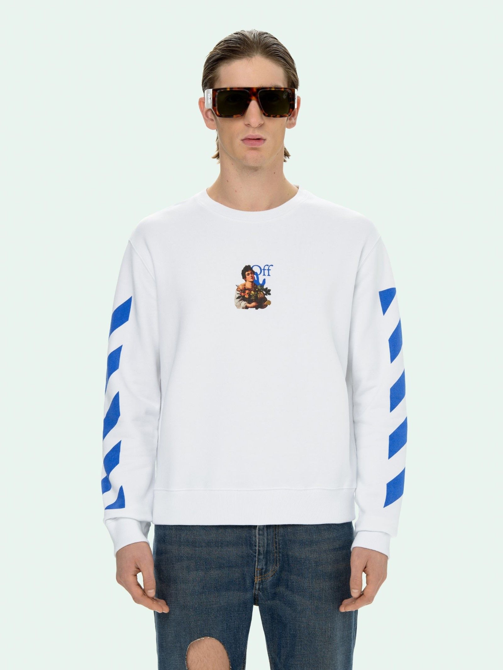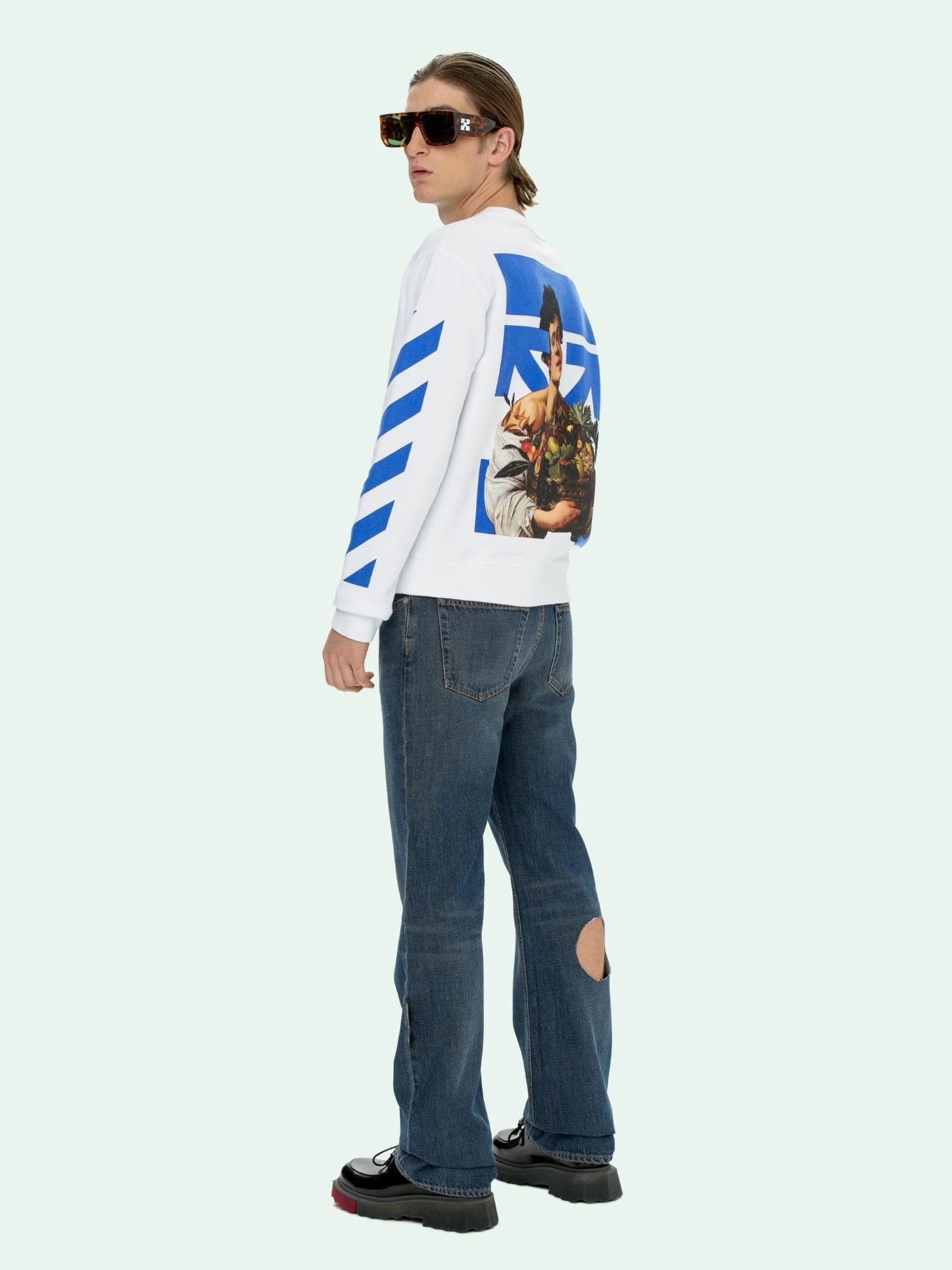 Per la sua collezione SS21, Off-White™ ha presentato una serie di nuove felpe decorate, secondo quella che è ormai una tradizione consolidata del brand, da alcuni dipinti di Caravaggio. La line-up è aperta da una grafica che mescola il Fanciullo con canestro di frutta (1593) con le frecce incrociate del brand ma, scorrendo il catalogo, si può vedere anche il quadro San Gerolamo Scrivente (1606) e anche un ritorno della Monna Lisa di Leonardo su altre felpe.