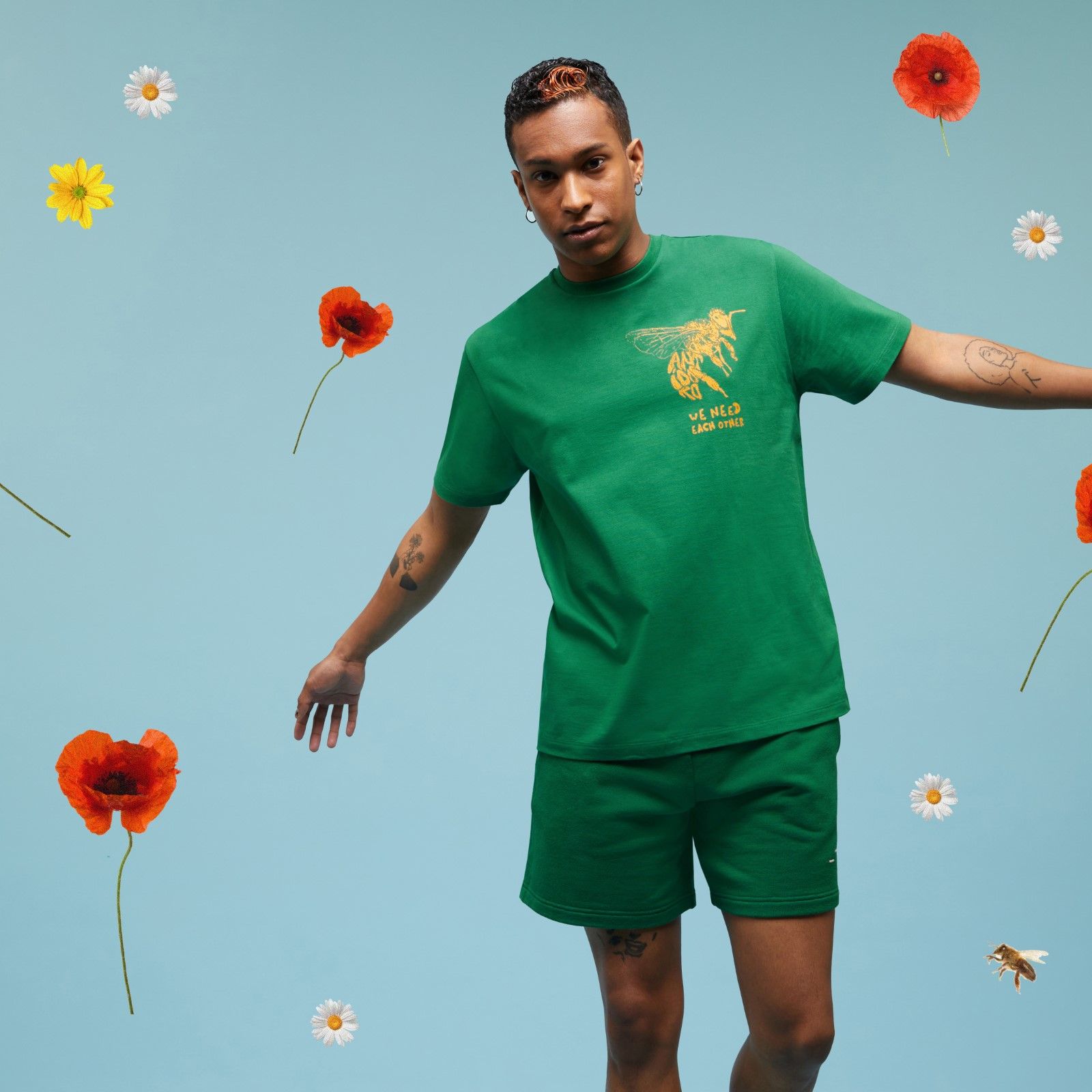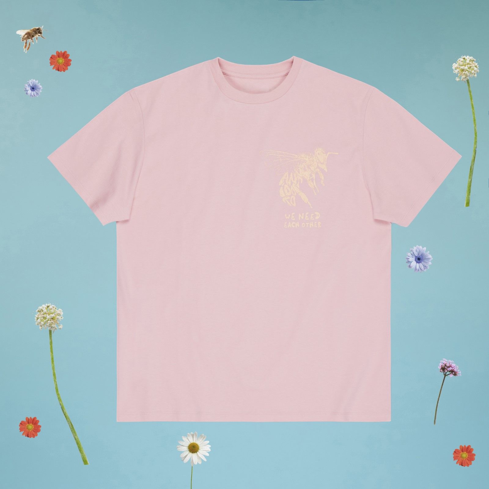 Disponibile esclusivamente sul sito del brand, la capsule sarà composta da cinque t-shirt realizzate in Italia in cotone organico certificato GOTS e con colori anch'essi certificati GOTS con grafiche che hanno per protagoniste proprio le api. Le t-shirt sono disponibili in colori ispirati anch'essi alla natura come Rosa Allium, Verde Pino, Grigio Nuvola, Nero e Bianco. Ispirandosi al ruolo che le api svolgono nella natura, con l'impollinazione e l'aiuto che danno alla crescita del mondo vegetale con cui vivono in sinergia, su ogni t-shirt campeggia la scritta “Abbiamo bisogno gli uni degli altri”.
