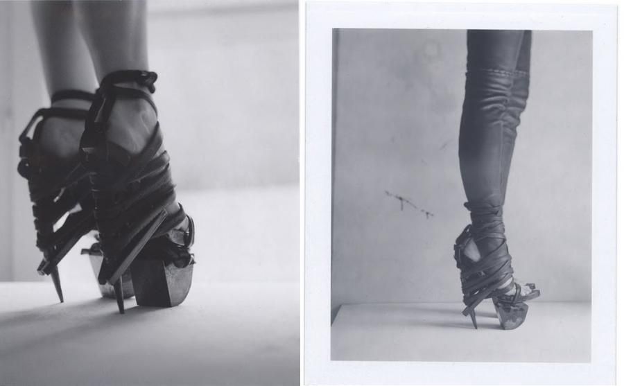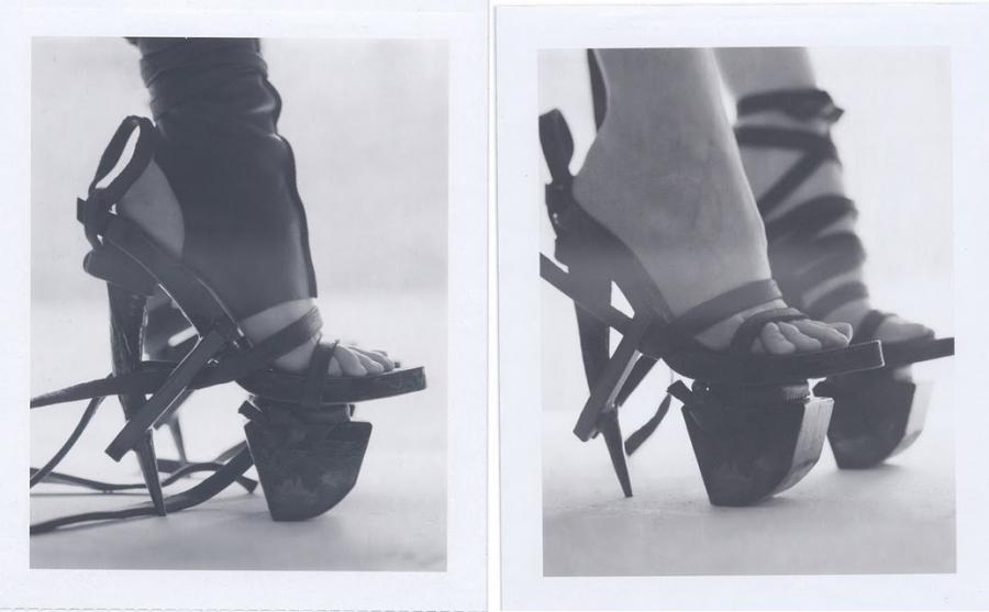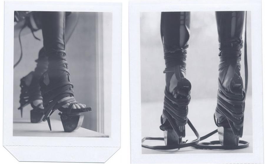 Aoi Kotsuhiroi attraverso le sue creazioni intrappola non soltanto l'immaginazione e l'attenzione di chi osserva, ma mediante listini sottili in pelle immobilizza le caviglie di una donna selvaggia, quasi preistorica, che cammina su innumerevoli centimetri di tacco con la disinvoltura e la scaltrezza di un animale scalzo.