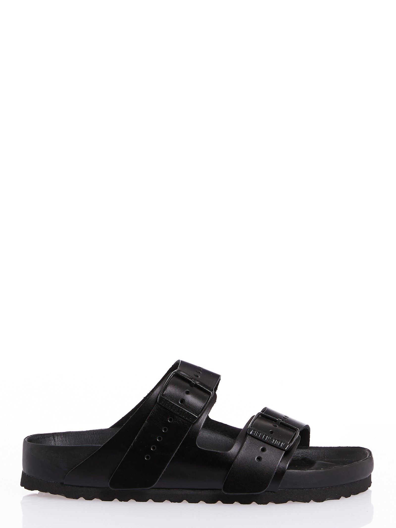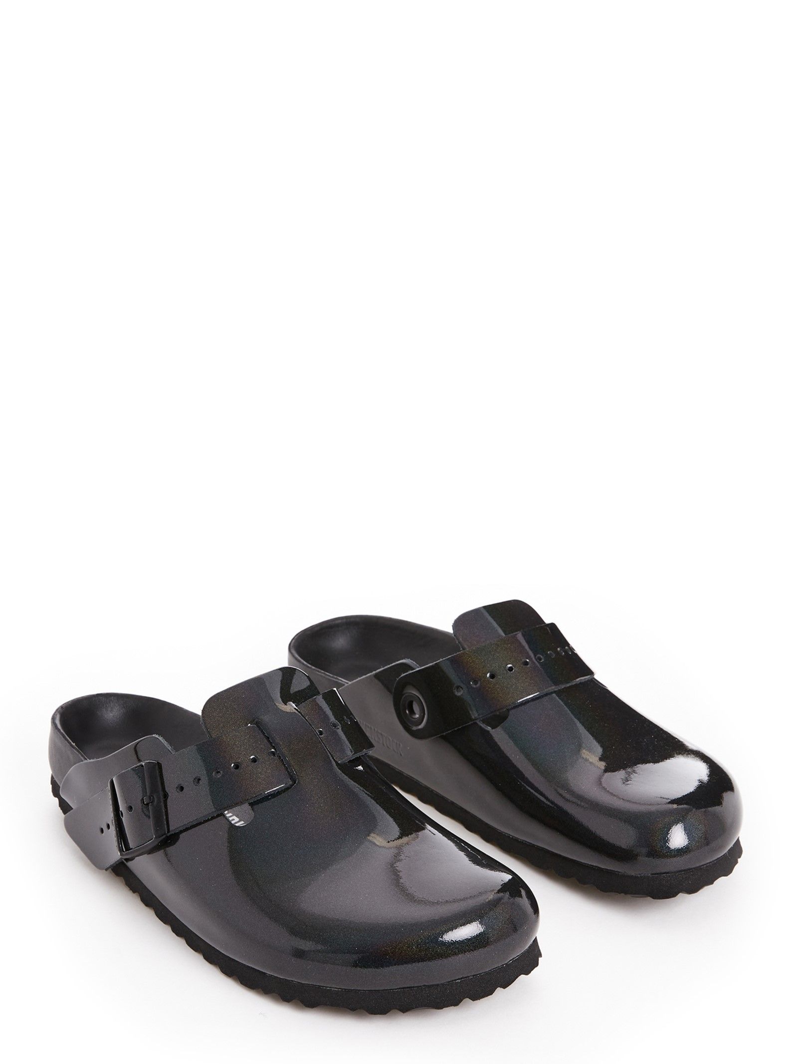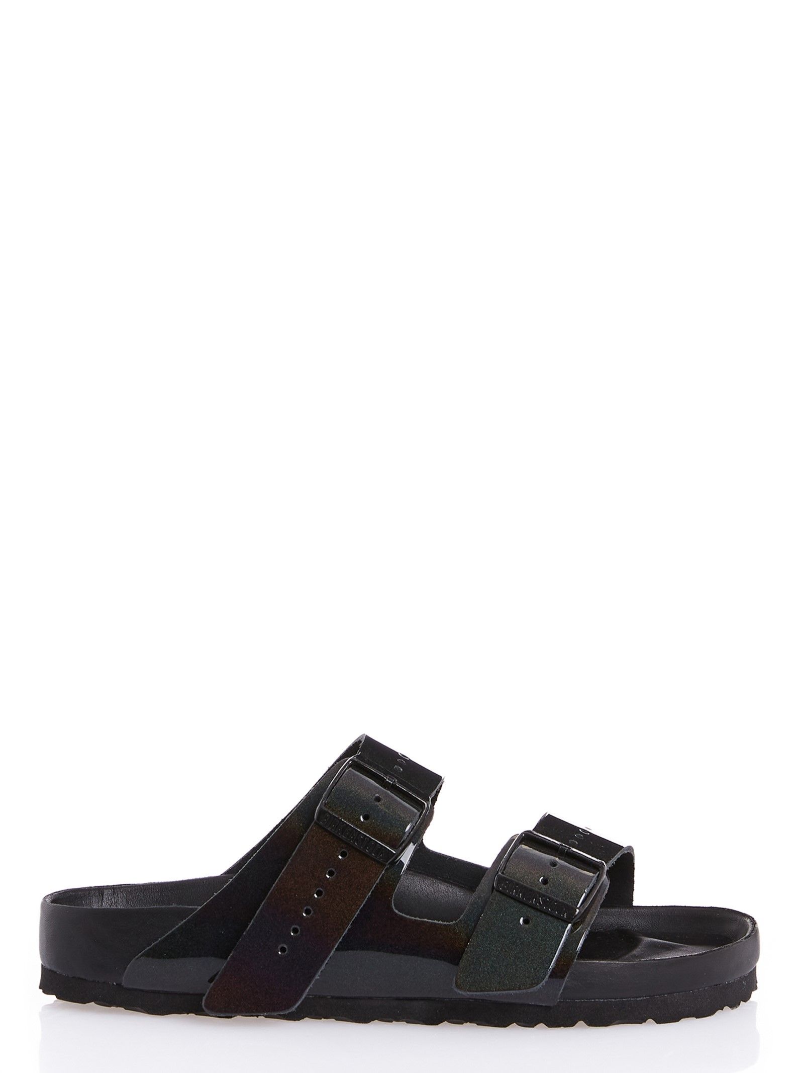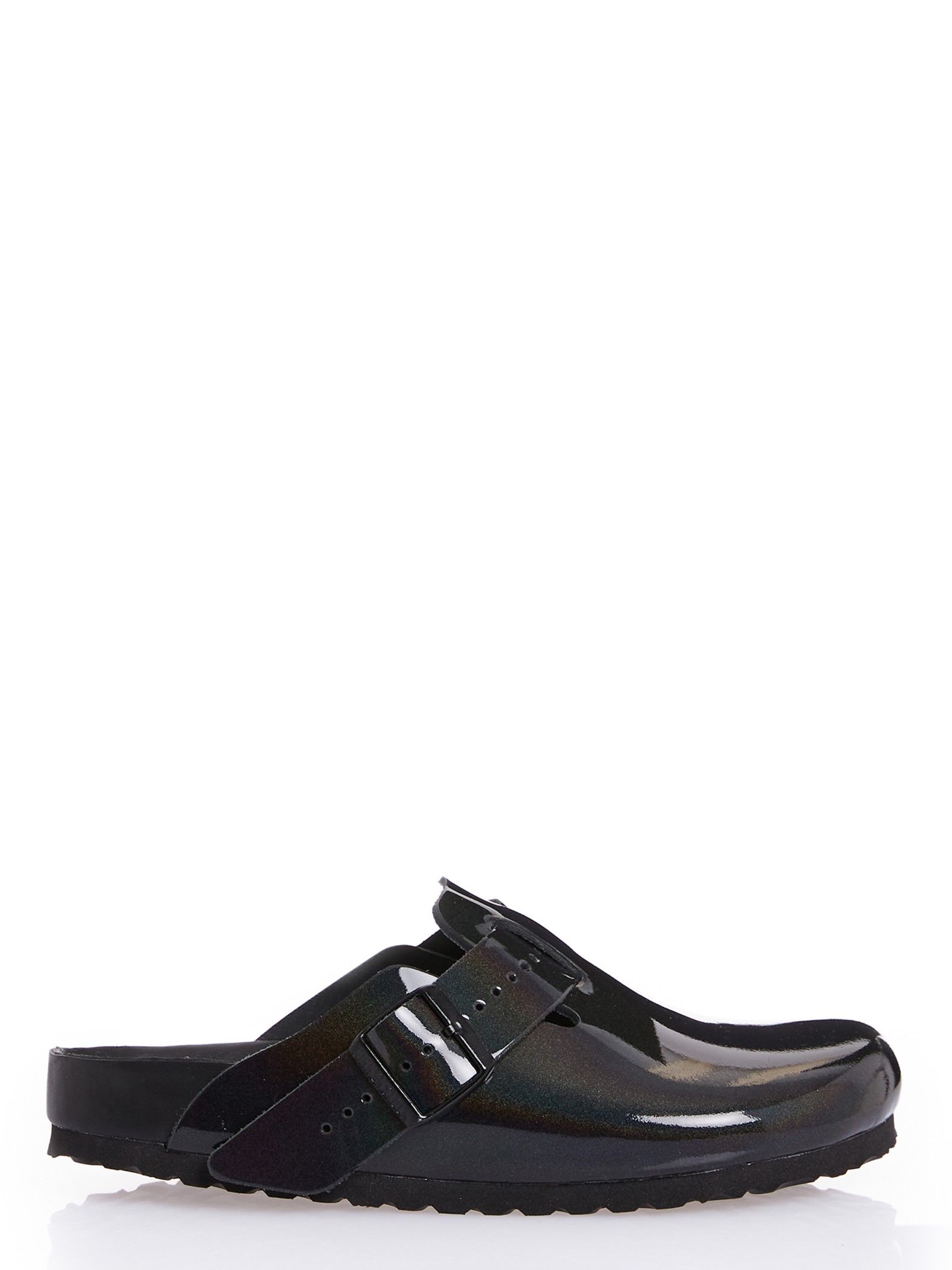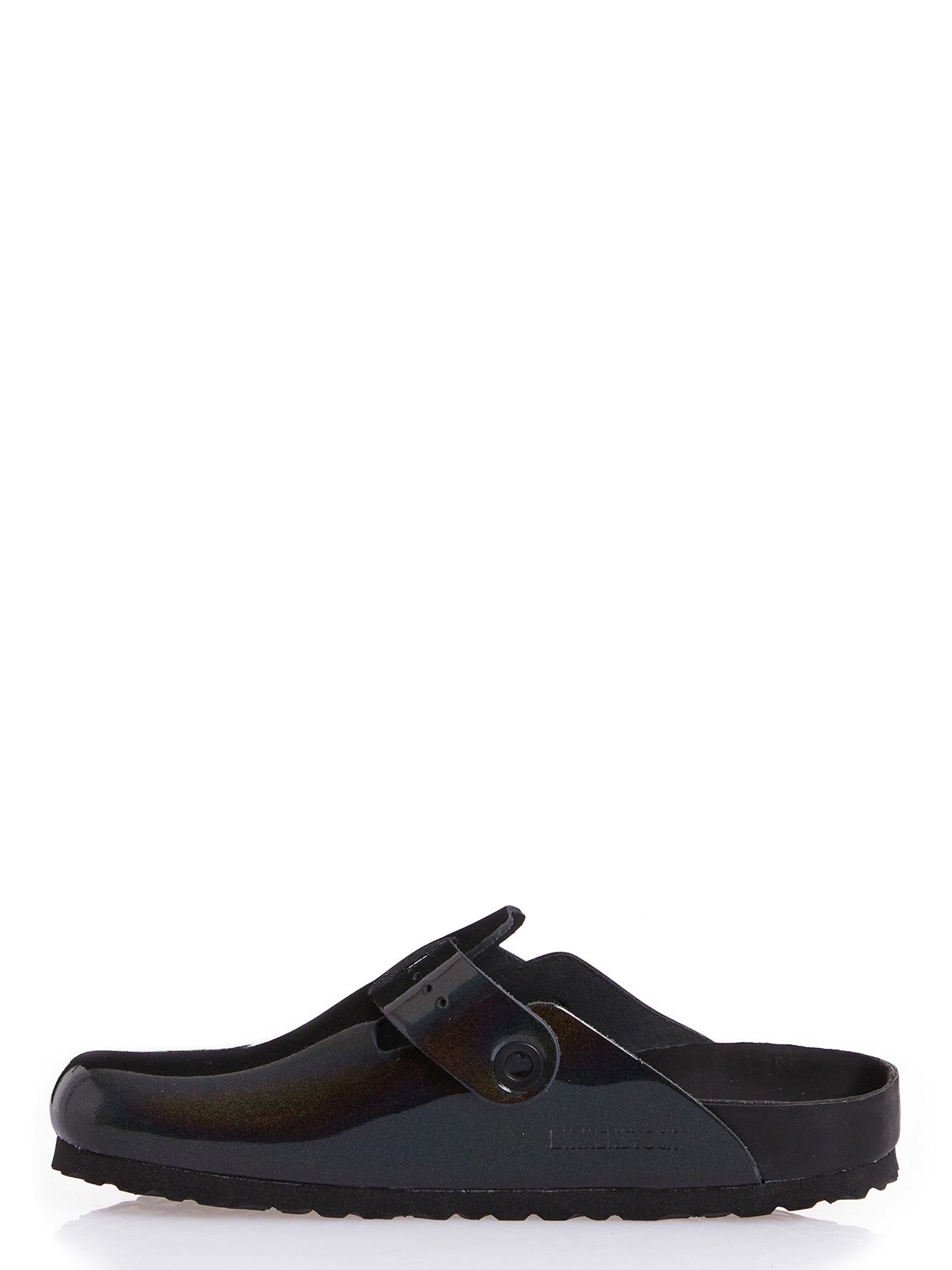 I modelli Arizona, Boston e Rotterdam di Birkenstock sono proposti infatti in una colorway completamente nera, e con costruzioni di pelle che coprono anche la suola. Oltre alle cinghie leggermente allungate riprese dalle precedenti collaborazioni, per questo nuovo capitolo sono stati anche aggiunti dei rivetti "che sembrano usciti da uno dei miei film preferiti di Fritz Lang", come ha detto lo stesso Owens. I modelli Arizona e Boston, poi, sono stati anche prodotti in una seconda versione in pelle metalizzata iridescente.