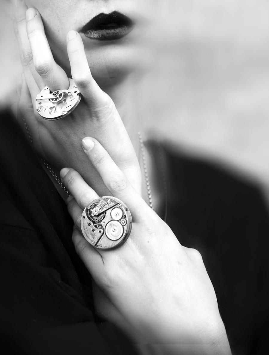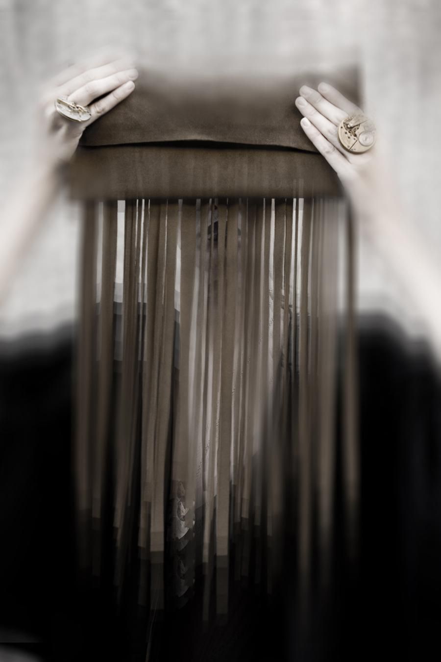 Lather that are disintegrated in fringe and mechanisms of destruturate old clocks. The collection, totally handmade from the designer, tells a story of the time and its inexorable one to disintegrate itself.