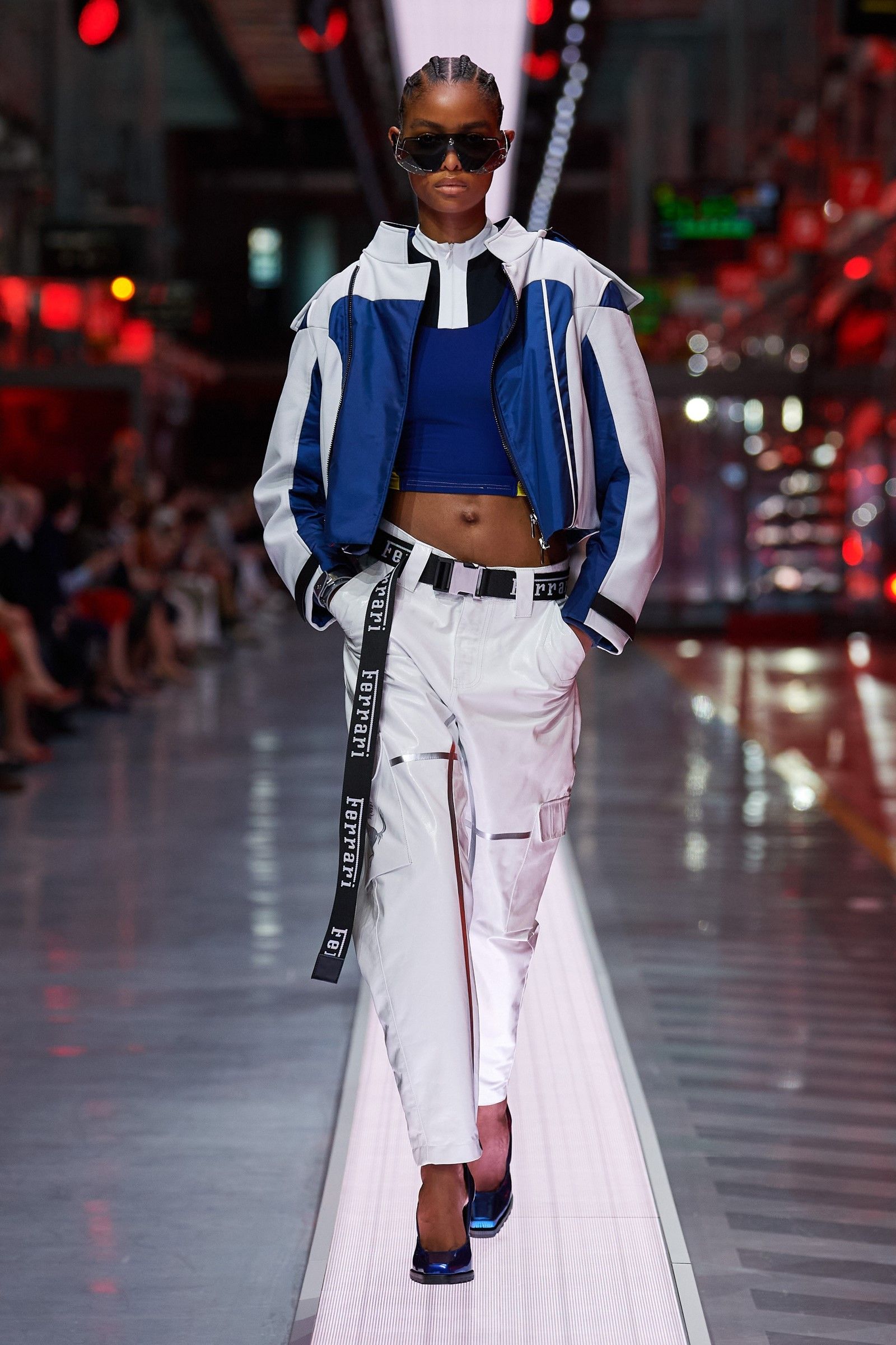 Sul piano del design, i look migliori della collezione avevano un sapore "Pradesco", con la mescolanza di futurismo performance-ready e una reinvenzione dei codici-base dell’uniforme borghese. A questo primo layer, che indirizza subito la collezione verso una precisa direzione di fashion luxury, si aggiunge una patina streetwear che riprende i design modernisti di Virgil Abloh da Off-White™ pur mantenendo netta e sicura l'identità di Ferrari ma provando a farla diventare appetibile tanto per i giovani fan del brand che per il pubblico femminile. Come esordio nella moda, quello di Ferrari ha stabilito con chiarezza i fondamentali dell'estetica del brand senza scadere in una commercialità troppo ovvia ma, anzi, traducendo in termini di fashion design la qualità del design e dell'artigianalità che ha reso leggendarie le officine di Maranello.