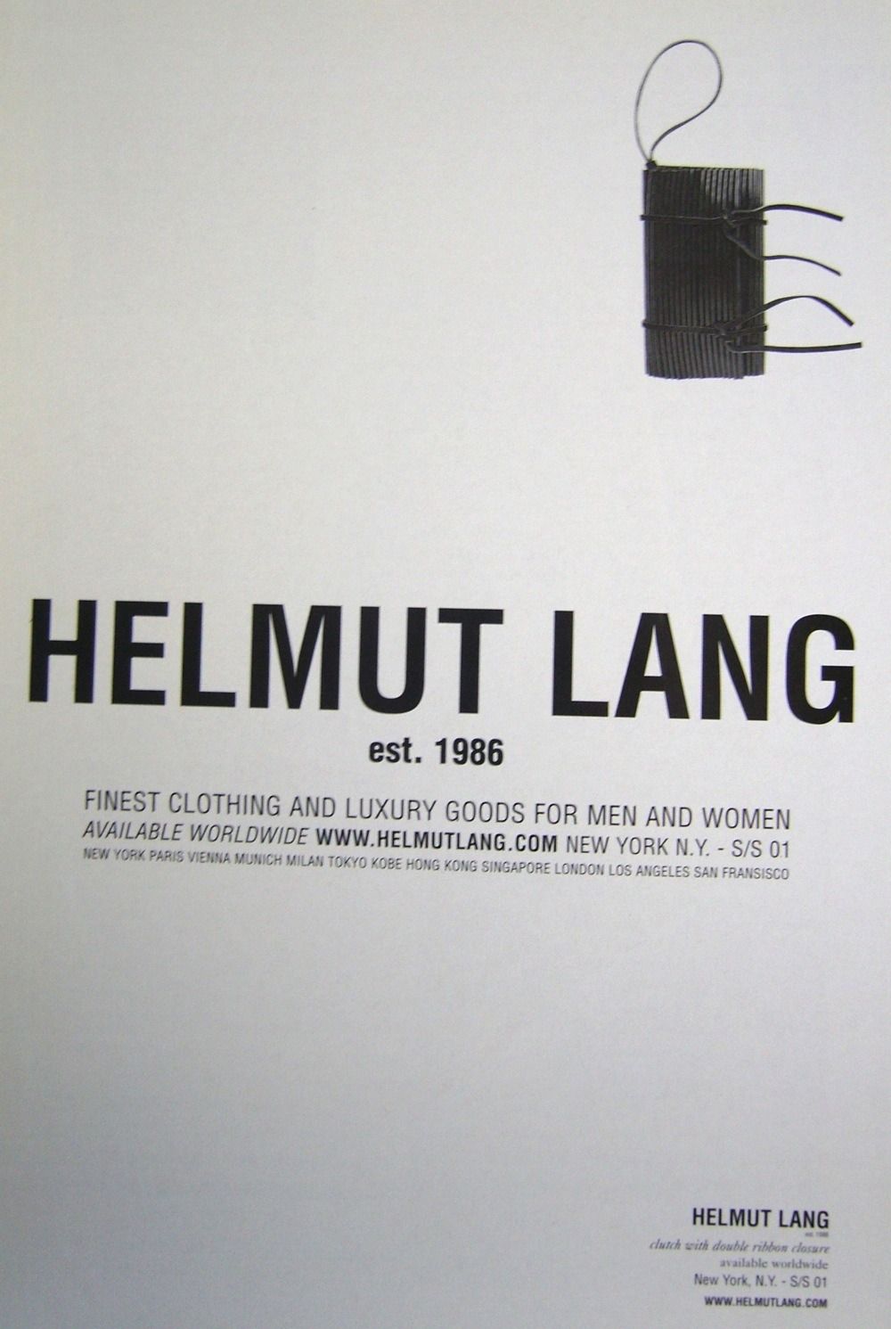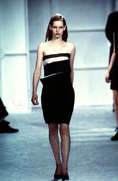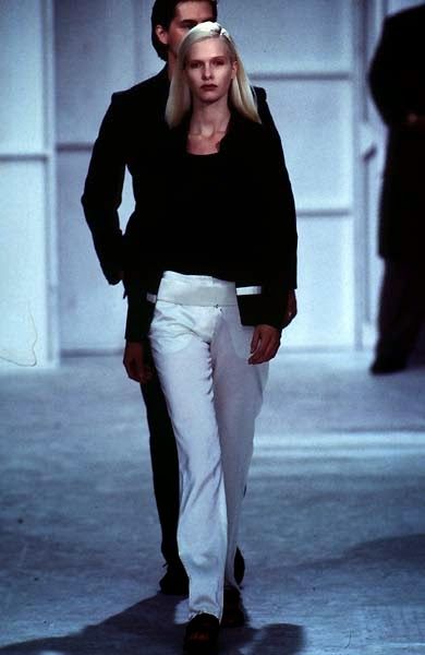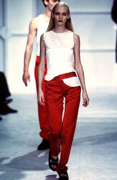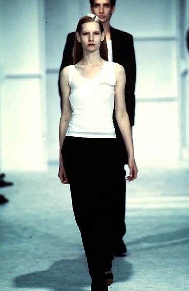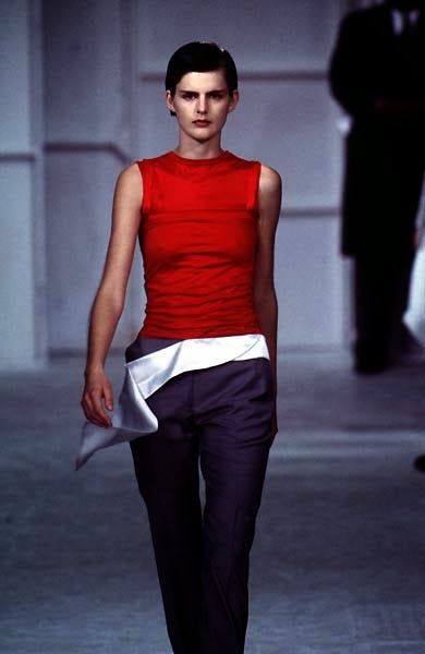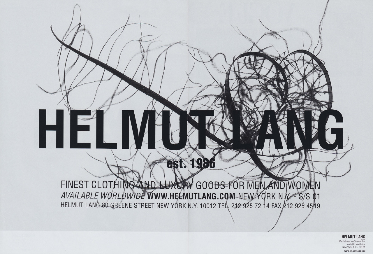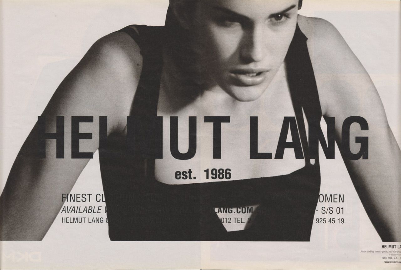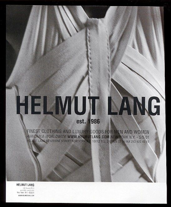 La prima parola che viene in mente quando si parla di Helmut Lang è "minimalismo". E in effetti nelle sue collezioni anni '90 si avverte ancora una semplicità che quasi stona con l'opulenza un po' chiassosa di molti dei suoi contemporanei. Ma, si potrebbe ribattere, negli anni '90 tutti facevano i minimalisti: per citare qualche nome, Jil Sander, Calvin Klein, Martin Margiela, Ann Demeulemeester. Perfino le collezioni di Gucci e Prada di quegli anni erano dominate dall'abito sensuale e semplificato – una risposta all'overdose di opulenza degli anni '80. Secondo Olivier Saillard, che cita il designer nel suo essay The Empire of Signs, Lang andrebbe definito più un essenzialista che un minimalista: cioè un artista non interessato a eliminare quantitativamente il superfluo ma a fare emergere qualitativamente la pura essenza delle cose, da Less is More a Less is Better.