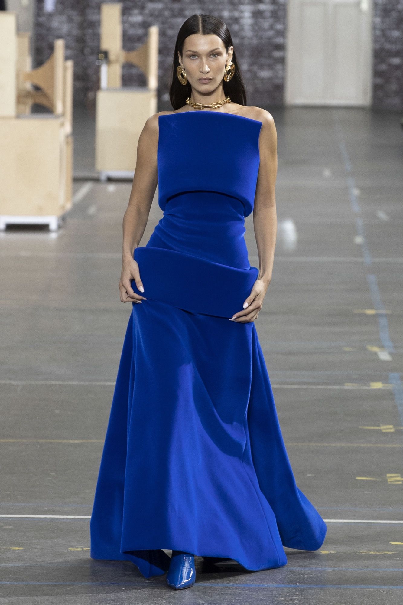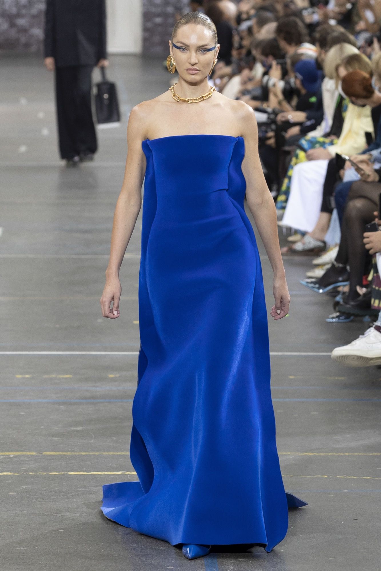 I look comprendevano abiti-cappotto, maglie a trecce oversize colorate con tintura indaco e blazer con spalle dal taglio netto e maniche con piega singola. Abiti sculturorei e realizzati secondo la tecnica cut-and-sewn, come il gilet imbottito, hanno offerto silhouette squadrate dando spicco a blazer monopetto, soprabiti over e una maglieria con accenti metallici.