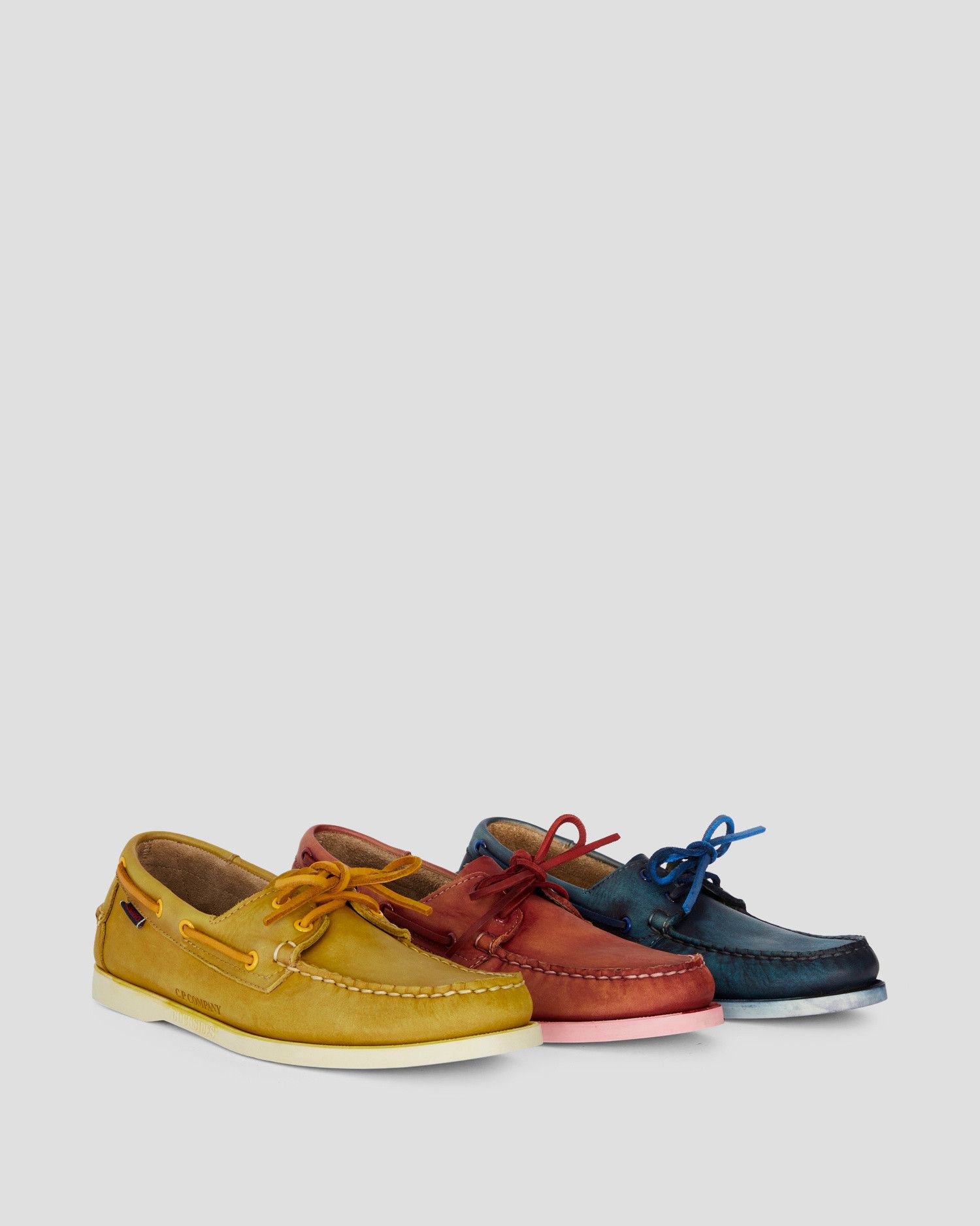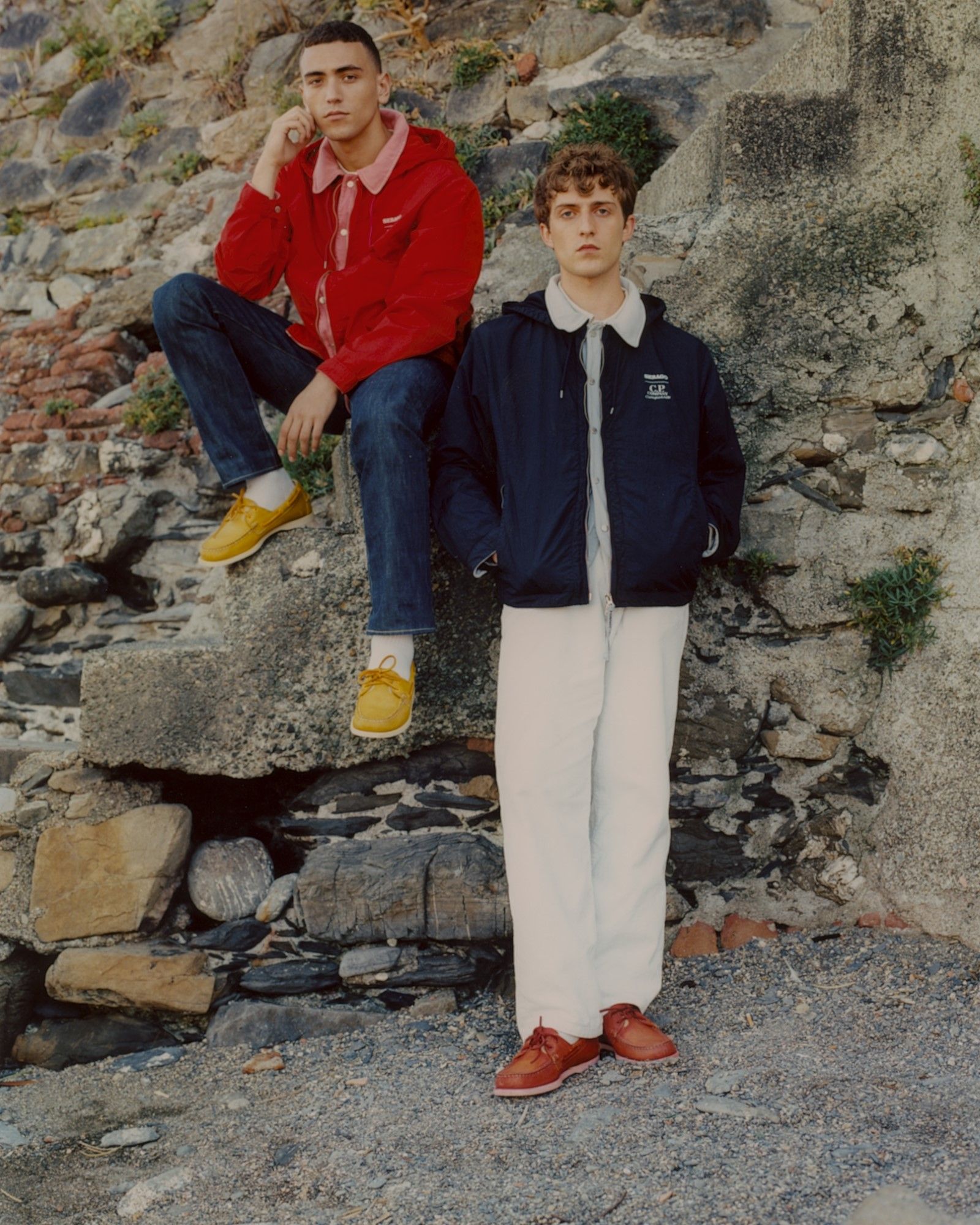 Pezzo forte del range di abbigliamento è la windbreaker jacket in M.t.T.N. di C.P. Company, disponibile nelle tre colorway gialla, rossa e blu, che fa ritornare in vita un design d'archivio della metà degli anni Ottanta, che è stato uno dei primi esperimenti di tintura di un capo in nylon e cotone del brand. Durante la tintura, il nylon è completamente tinto mentre il cotone all'interno è "sporcato" dal colore e assume un tono più chiaro. Le scarpe di Sebago, invece, sono le iconiche Docksides, nate nel 1970 e da sempre simbolo delle avventure estive. In occasione della capsule ne è stata creata una versione in edizione limitata, sovratinta manualmente negli stessi colori del windbreaker.