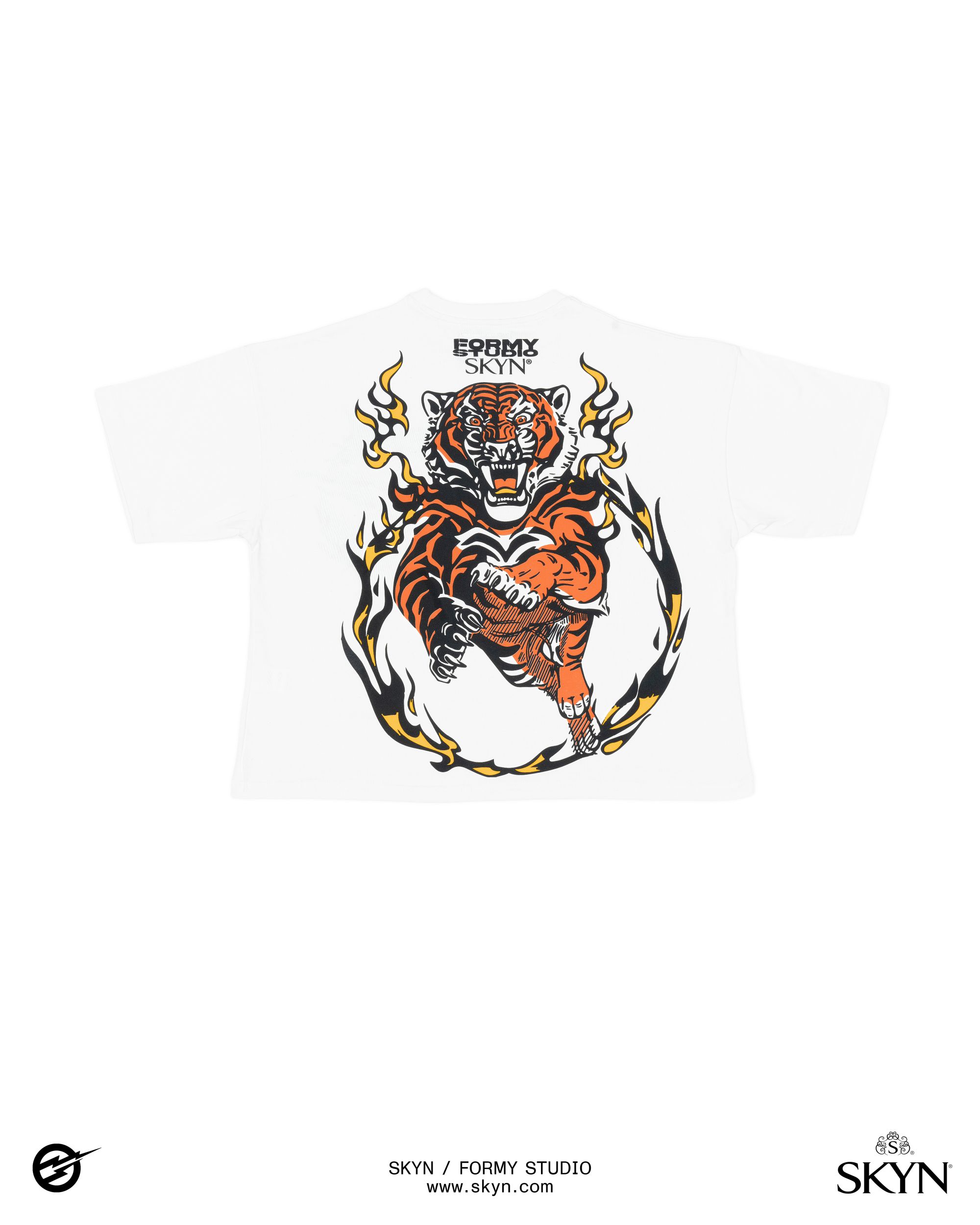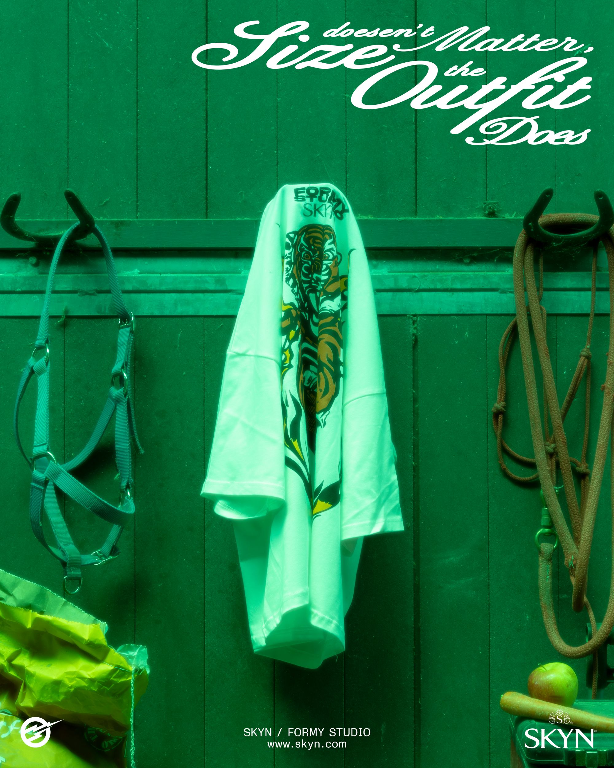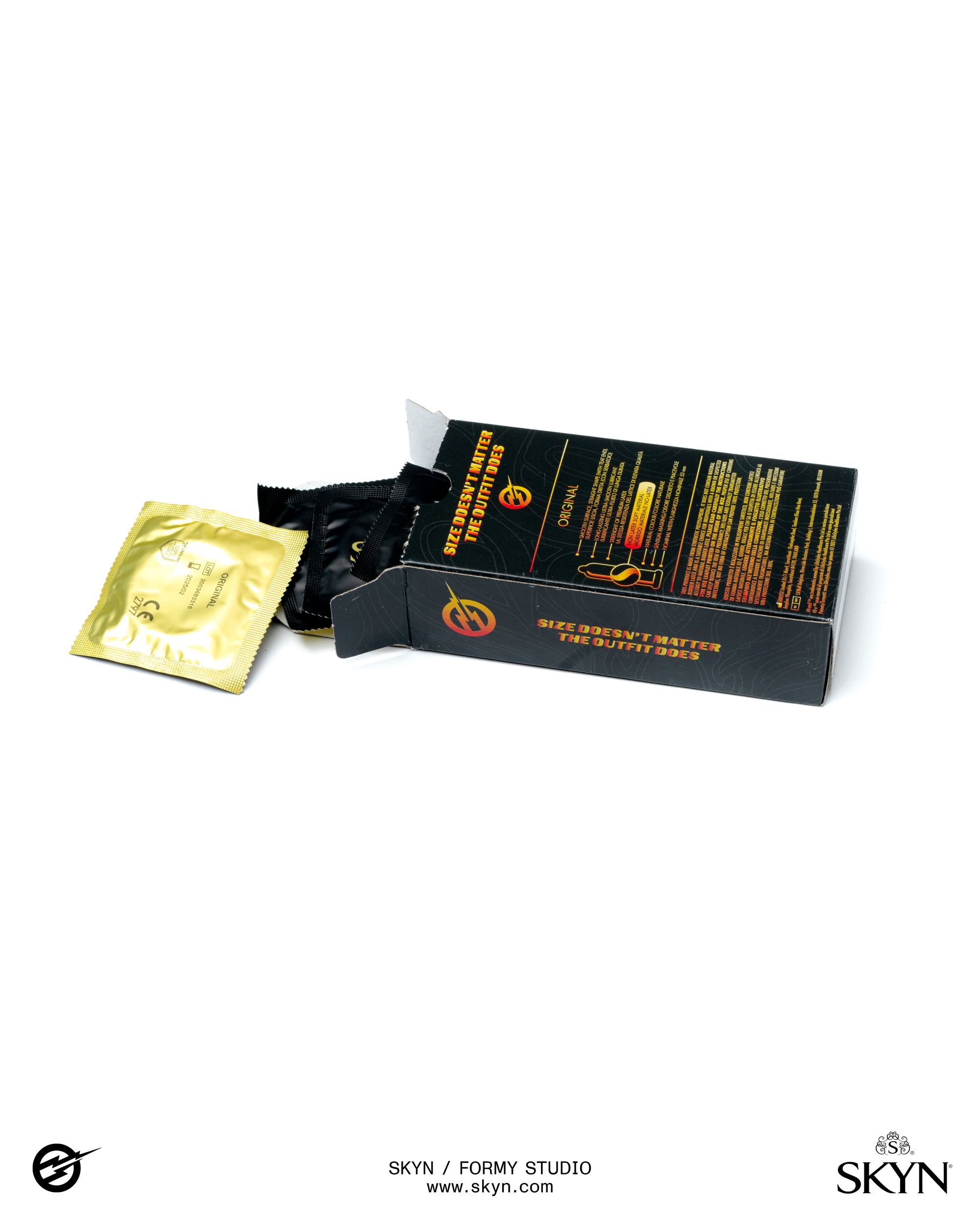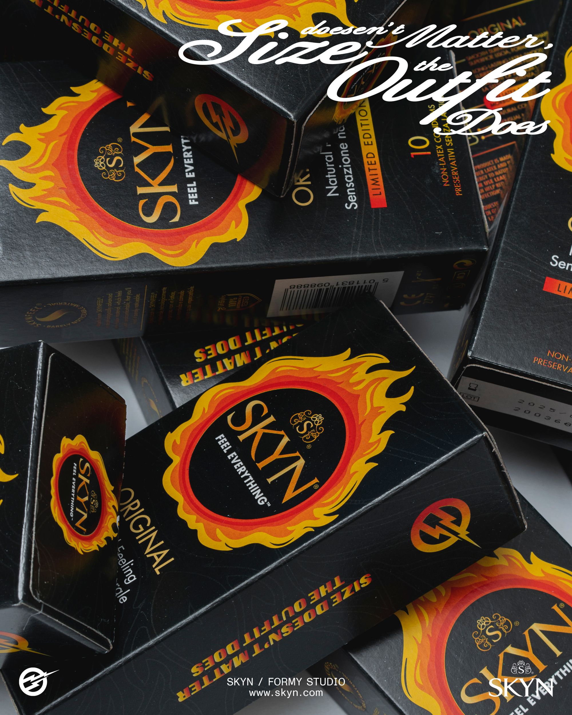 Che il mondo della moda non conosca confini lo sapevamo già, ma la collabo tra Formy Studio e SKYN® ne è forse un'ennesima dimostrazione. Il brand di Domenico Formichetti ha unito le forze con l'azienda di condom senza lattice più venduti al mondo per un pack esclusivo in edizione limitata e una t-shirt creata per l'occasione. Accompagnato dal pay off “Size doesn't matter, the outfit does” e da un artwork firmato Underwork Studio, oltre a delle fiamme sul pack trovano spazio il logo di SKYN® affiancato a quello di Formy Studio, in una grafica presenta anche sulla t-shirt caratterizzata però anche da una tigre.