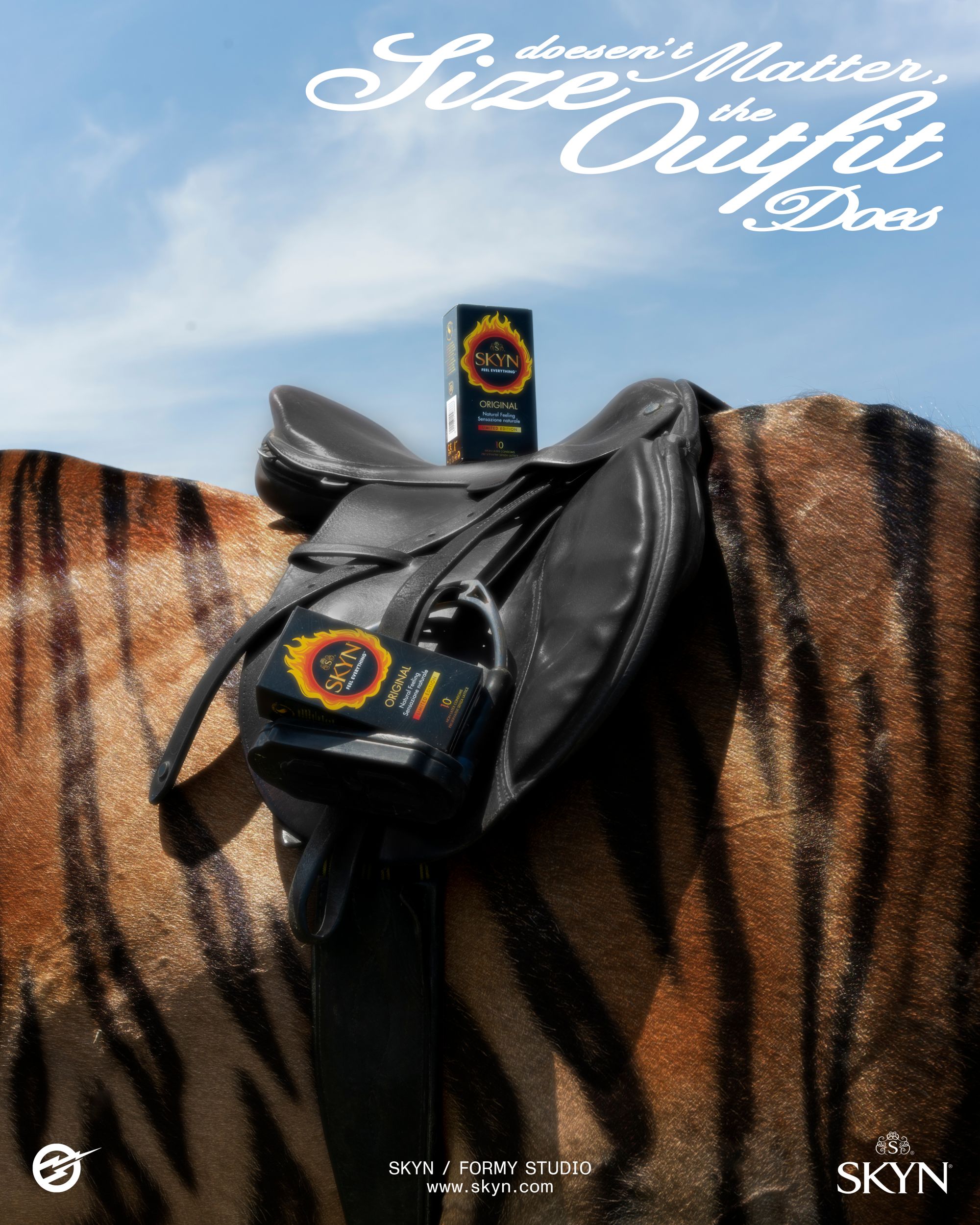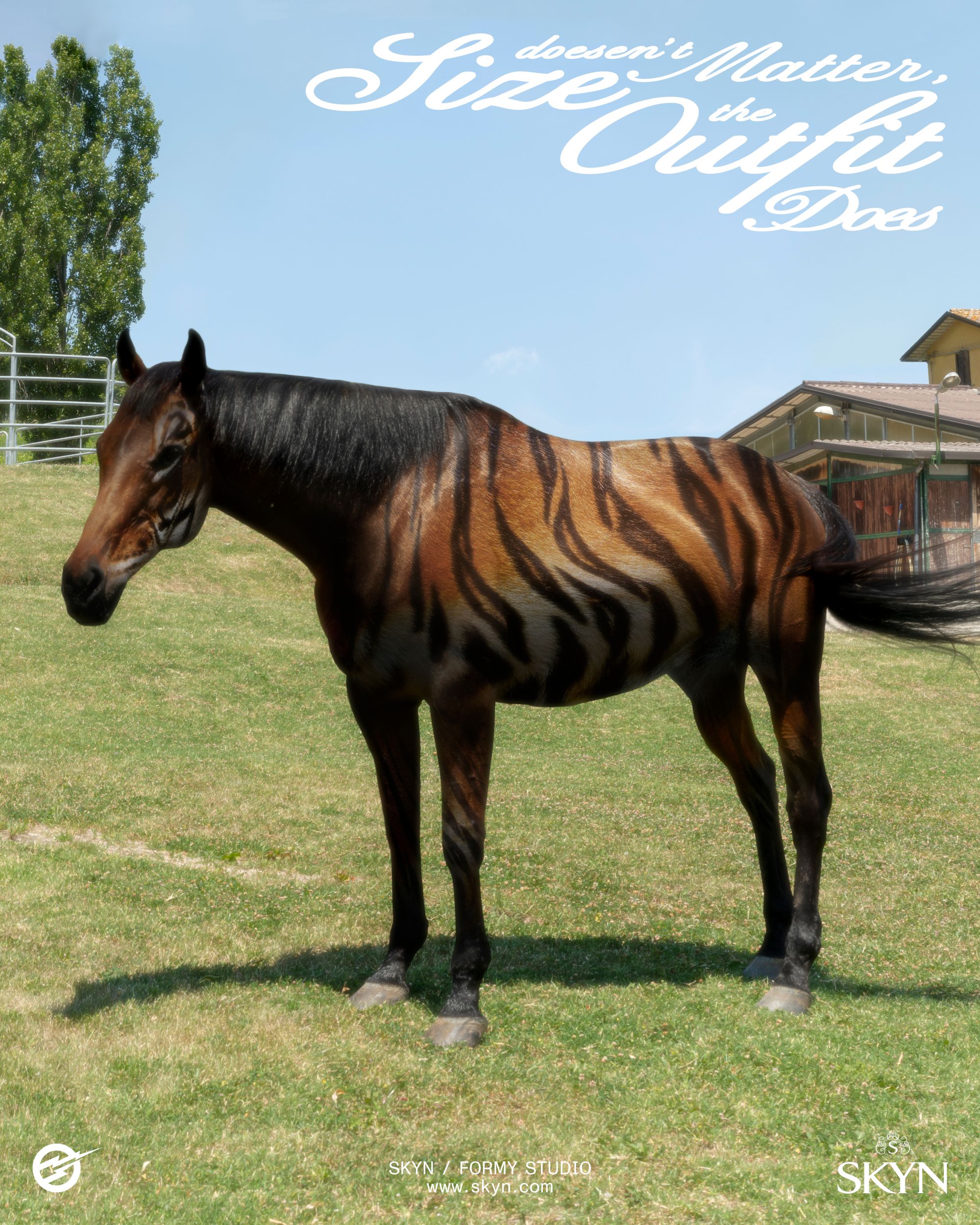 Uno stallone tigrato protagonista della collabo tra Formy Studio e SKYN “Size doesn't matter, the outfit does”
