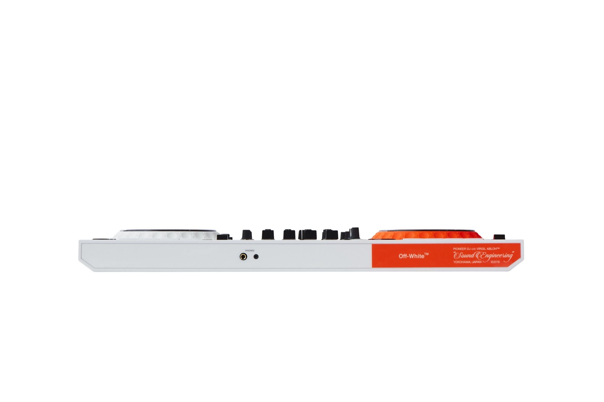Il primo risultato di questa collabo è un DJ controller disponibile in quantità limitate. Partendo dall'idea di "SOUND ENGINEERING", Pioneer DJ e Off-White™ hanno completato il DDJ-1000-OW grazie ad un intenso processo artistico, che si esprime attraverso un design corale, in cui i colori asimmetrici arancio fluorescente e bianco opaco fanno da contrasto alle scritte sul pannello, dando al controller un look mai visto prima.