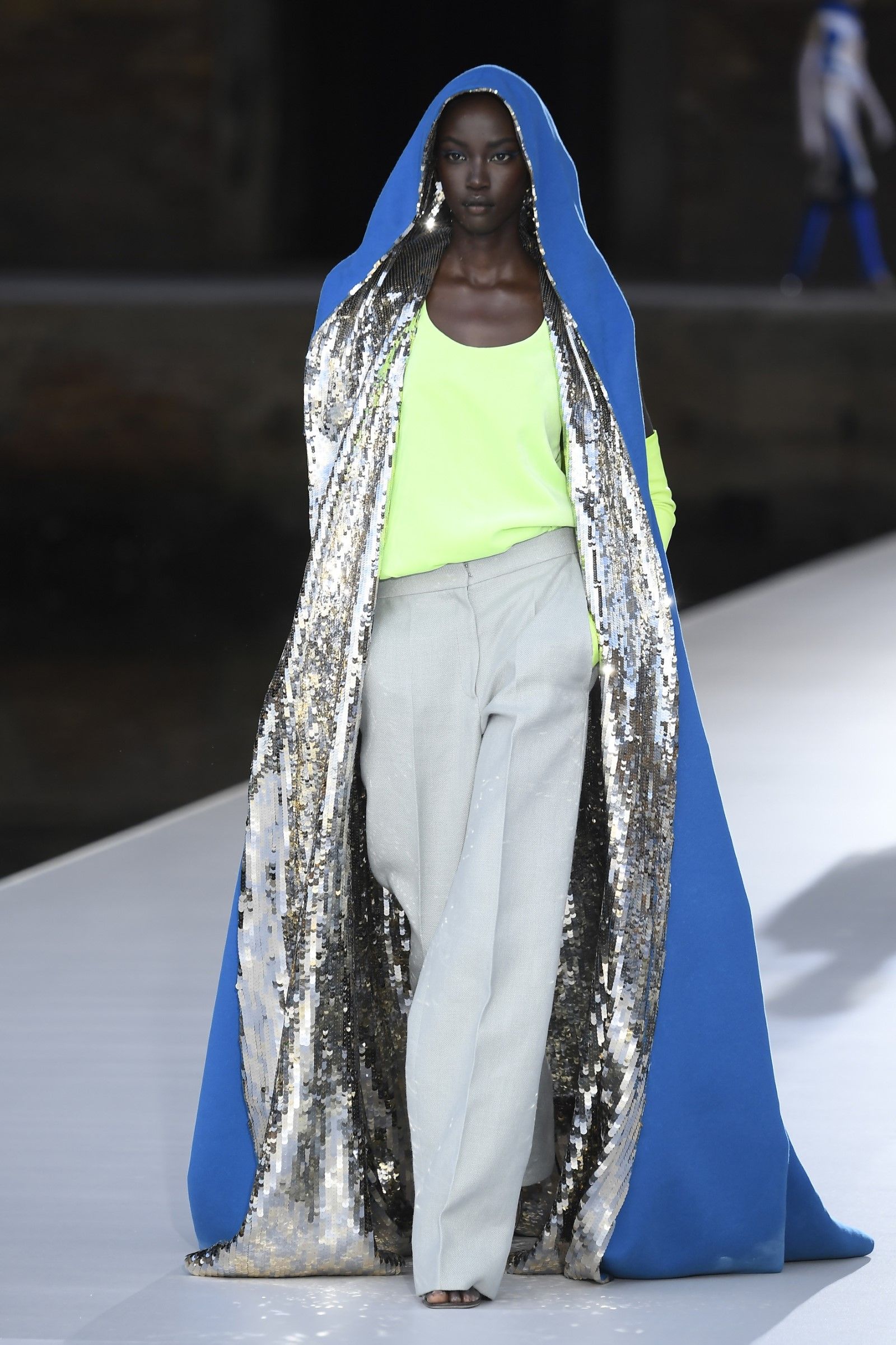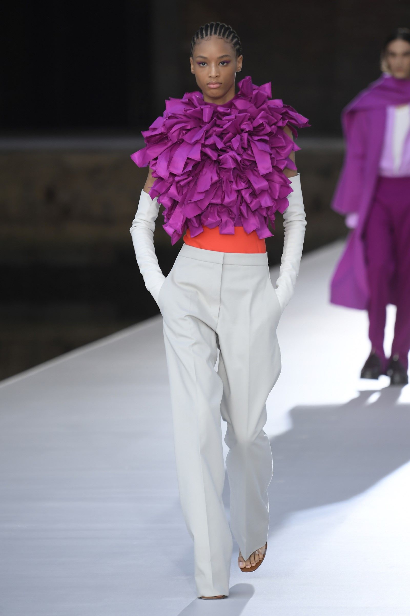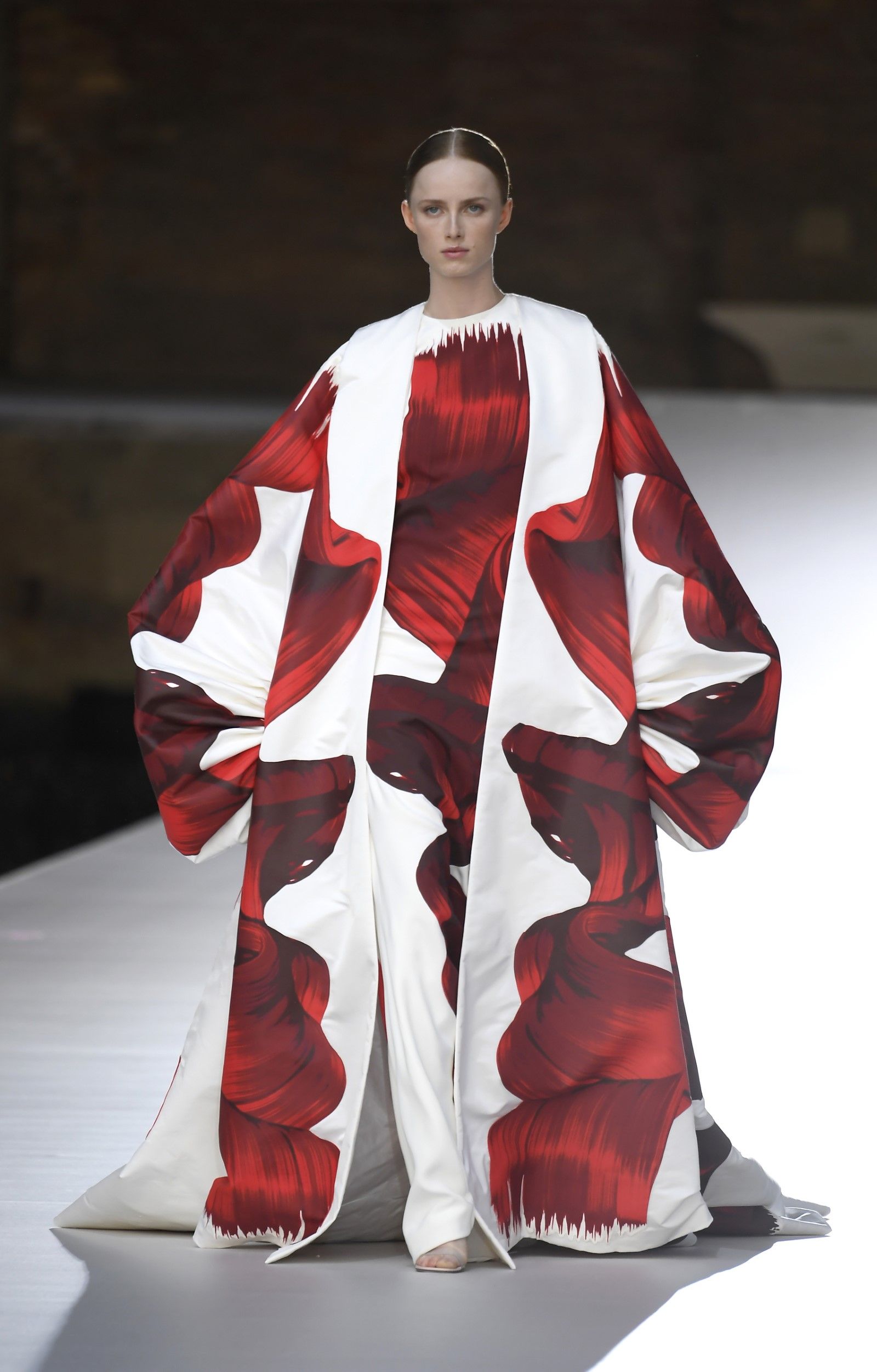 Dunque l'atelier di Haute Couture di Valentino e quello dei diciassette artisti che con esso hanno collaborato hanno trovato un territorio comune nei concetti di unicità, ricerca e sperimentazione che contraddistinguono le due diverse discipline creative. Il risultato è stato una collezione stupefacente, che ha sfilato con l'accompagnamento musicale di Cosima, ma che soprattutto ha parlato con una voce moderna di una tradizione antica come la Haute Couture: il look finale, ad esempio, che ha richiesto 700 ore di lavoro, come ha spiegato ai suoi follower @ideservecouture, ha impiegato oltre cento metri di satin e con una stampa fatta a mano che riproduce le dense pennellate usate da Jamie Nares per il suo quadro Blues in Red; un altro look, ispirato a I Beati Verdi di Andrea Respino, ha richiesto 150 diversi tasselli di stoffa assemblati e lavorati manualmente in un mosaico che riproduceva l'opera originale.