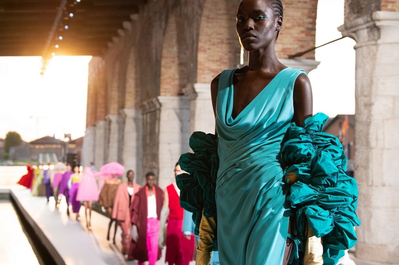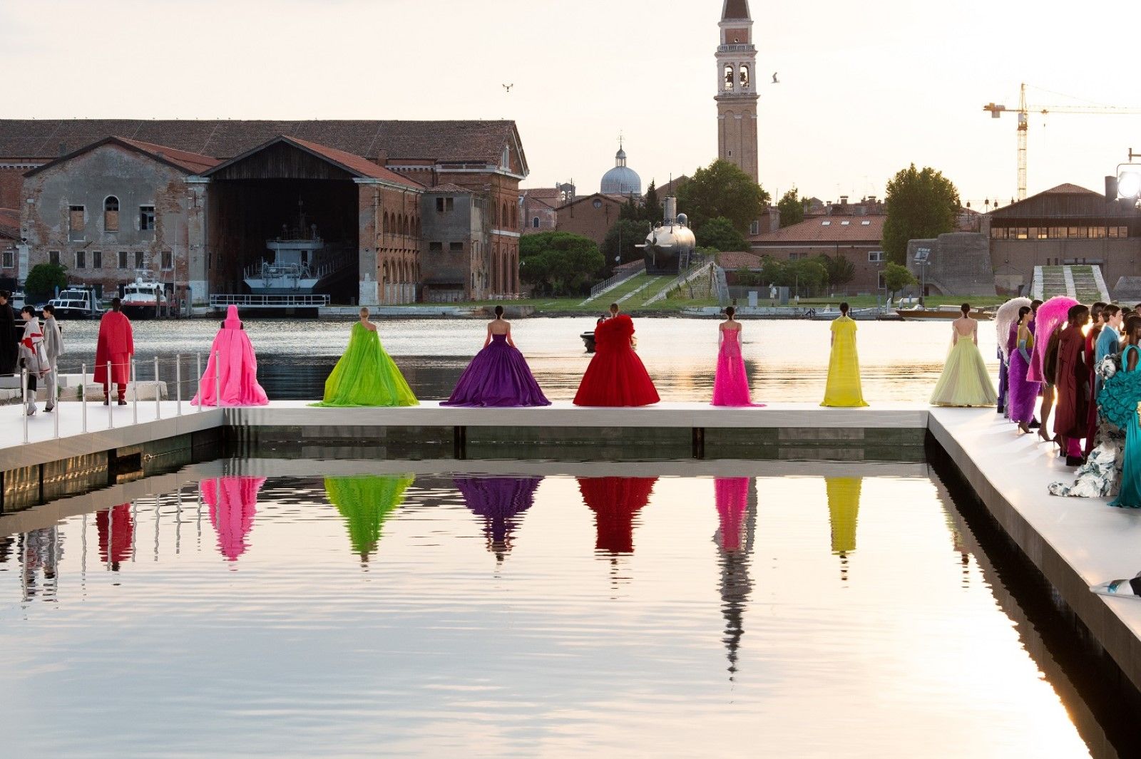 È andata in scena ieri la collezione Haute Couture FW22 di Valentino, intitolata Valentino Des Ateliers. Lo show si è tenuto a Venezia sulle Gaggiandre dell'Arsenale di Venezia, due imponenti tettoie acquatiche, con all'interno un ampio molo, realizzate nel '500. L'Arsenale era il più vasto centro produttivo di Venezia nell'era preindustriale e oggi è diventato la location delle Esposizioni Internazionali di Arte e Architettura oltre che dei Festival Internazionali di Danza, Musica e Teatro della Biennale di Venezia. Proprio nel contesto di quest'ultima Pierpaolo Piccioli ha voluto presentare una collezione Couture che si è chiesta la domanda non scontata di come arte e Haute Couture possano dialogare. Diciassette pittori sono infatti intervenuti nella creazione della collezione, ciascuno portando il proprio bagaglio estetico-iconografico a uno dei look. Ecco cosa ha detto Piccioli: