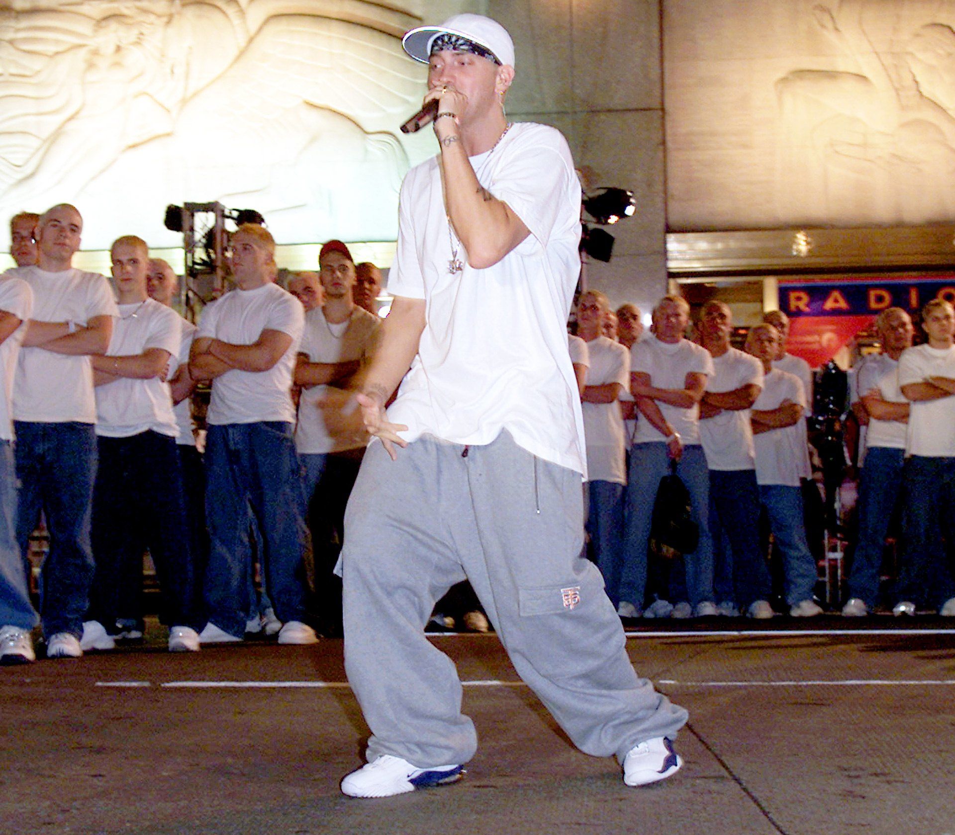 L’oversize è un must per la moda di oggi, ma quella dei primi 2000 aveva trascinato il concetto oltre ogni limite di guardia trasformando molti rapper, wannabe rapper e punk rockers in tendoni ambulanti. Se oggi gli artisti hip-hop sono noti per il loro legame con la moda e il proprio stile personale, in quegli anni c’era una divisa molta precisa per chi frequentava la scena: jeans così larghi e bassi che le loro gambe sembravano cortissime e le tasche posteriori arrivavano all’altezza delle ginocchia e maglie così lunghe che cancellavano qualsivoglia proporzione e forma fisica. Altra grande hit erano i bermuda oversize che diventano spioventi, riducendo la lunghezza dei polpacci a una decina di centimetri sopra la caviglia. Oggi l’idea del baggy clothing è rimasta ma in una versione decisamente più equilibrata anche se di recente Balenciaga ha reintrodotto i pantaloni extra-large nella sua proposta Couture.