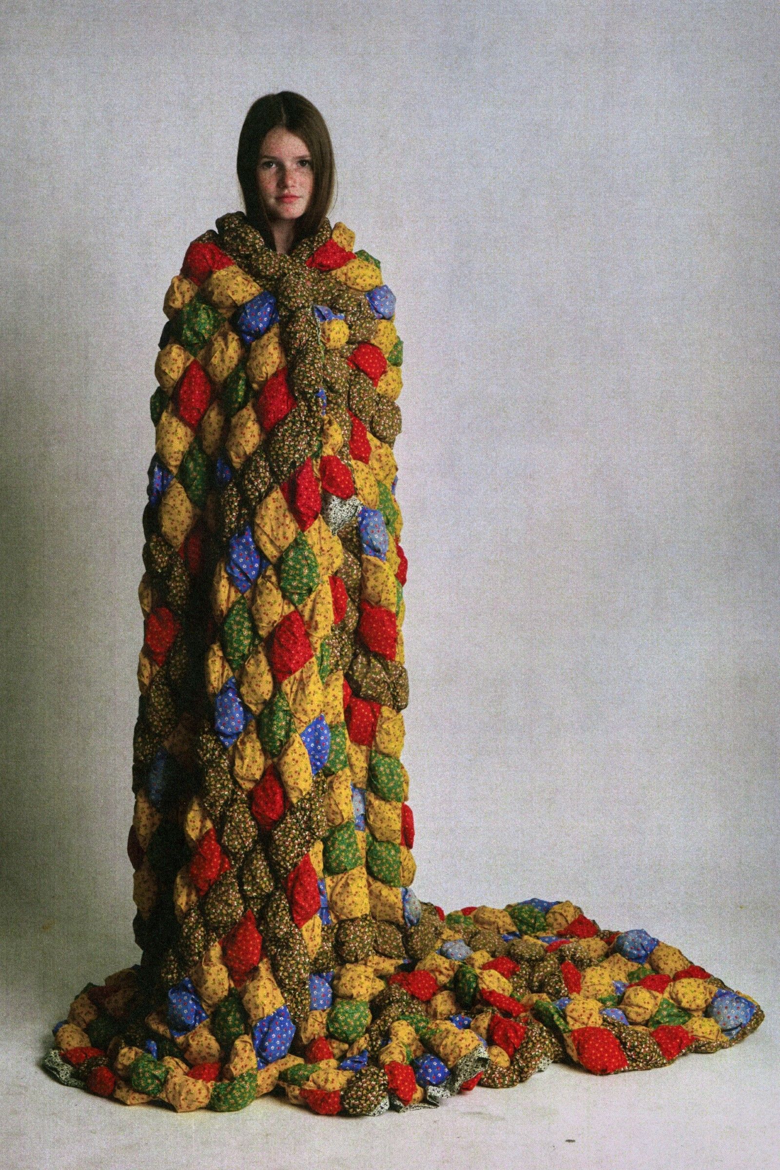 Per creare la trapunta indossata da A$AP Rocky, che è molto simile a quella del lookbook SS22 di ERL ma non la stessa, Linnetz ha cucito insieme scarti di tessuto, resti di trapunte d’epoca e persino l’accappatoio di suo padre – un’antica tecnica americana definita memory quilting che veniva utilizzata per commemorare eventi incorporando resti di tessuti e vecchi abiti cuciti insieme per creare una coperta che sarebbe stata usata per molti anni a venire. Gli abiti di parenti scomparsi, le vecchie t-shirt dell’adolescenza, le copertine usate nella culla: tutti questi oggetti che né si buttano né si utilizzano potevano diventare parte di una trapunta – e con l’avanzare del tempo le trapunte hanno cominciato a evolversi incorporando i colori e le fantasie degli abiti dell’epoca in cui erano state create. Uno dei principali progetti in questo senso è il The AIDS Memorial Quilt, un mosaico di arazzi, ciascuno dei quali commemora un morto di AIDS, iniziato nel 1987 e che oggi è la più grande opera di folk art del mondo, con oltre 48.000 pannelli e un peso complessivo di 54 tonnellate. Come Suzanne Paquette scrive nella sua ricostruzione della storia del memory quilting pubblicata sul sito di Modern Quilt Guild: