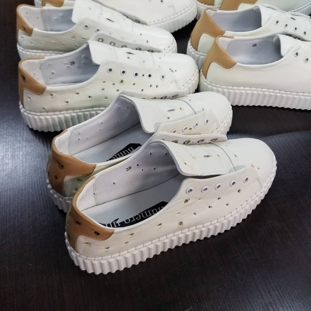 Anche HARUTA, storico brand nato a Nara con quasi un secolo di vita, produce i propri celebri mocassini in Ecopet, un materiale ricavato dal poliestere riciclato che rende le scarpe più leggere, ma anche impermeabili e facilmente pulibili mentre Numero Uno utilizza un cuoio ricavato dal pesce palla, materiale che di solito viene scartato e per cui invece il founder, Ittestu Ohyama, ha trovato una nuova vita.