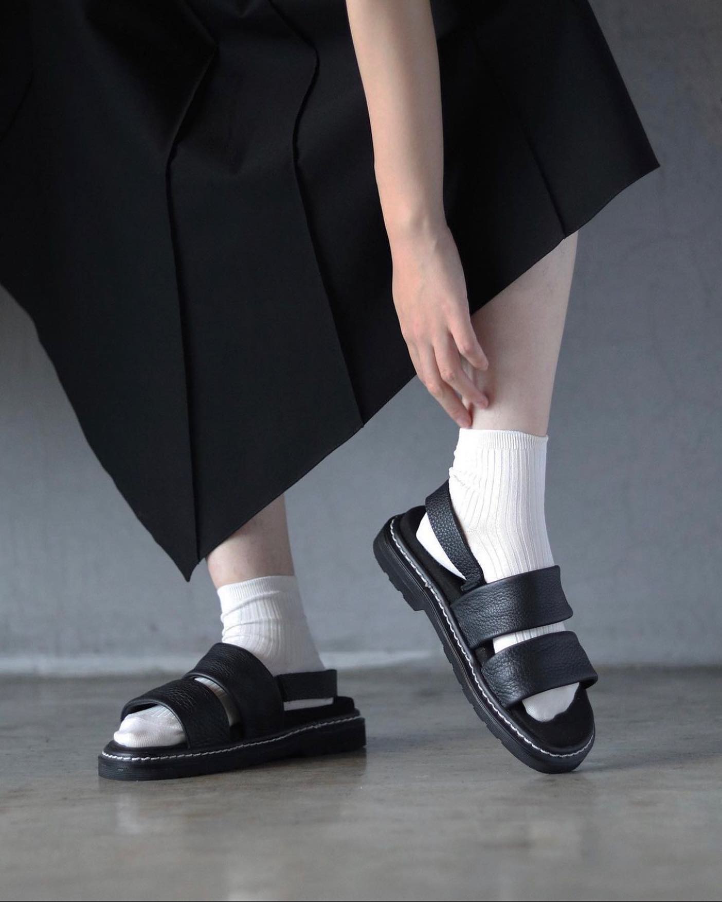 Un esempio incredibile di unione fra artigianato e funzionalità è Tokyo Sandal, brand che disegna le sue calzature su modelli tridimensionali per ottimizzare la loro ergonomia e poi crea la suola con due strati di cuoio che è capace di stabilizzare naturalmente il piede e si ispira alla sua tecnica di piegatura del legno di solito utilizzata nella fabbricazione degli skateboard. Il designer Takumi Inomata, invece, con il suo brand U. No. 5 ha interpretato l’idea di funzionalità come quella di un design universale, composto da un pezzo di cuoio che si avvolge intorno al piede accompagnandone i passi e replicando modelli di design universali – l’utility diventa dunque quella dei clienti stessi, che possono scegliere di customizzare i colori e le vestibilità di modelli classici decorati da un tocco artigianale unico e pensati per la vita di ogni giorno. Il marchio Shisei, invece, fondato da Mariko Yamane ha sviluppato un modello esclusivo di suola a metà fra l’utility e il fashion con Vibram che utilizza gomma naturale per le sue scarpe plastic-free e, soprattutto, utilizza solo cuoio proveniente dall’industria della carne, il 40% del quale è certificato dal Leather Working Group per standard di lavorazione sostenibile.