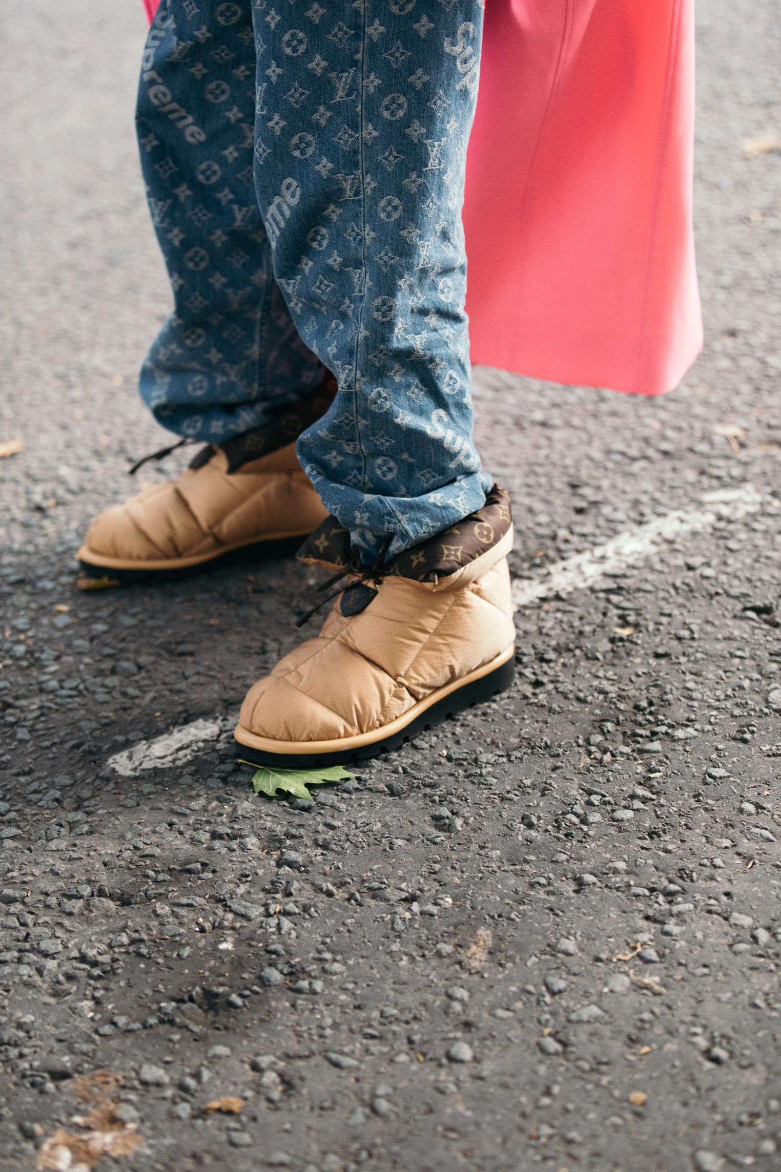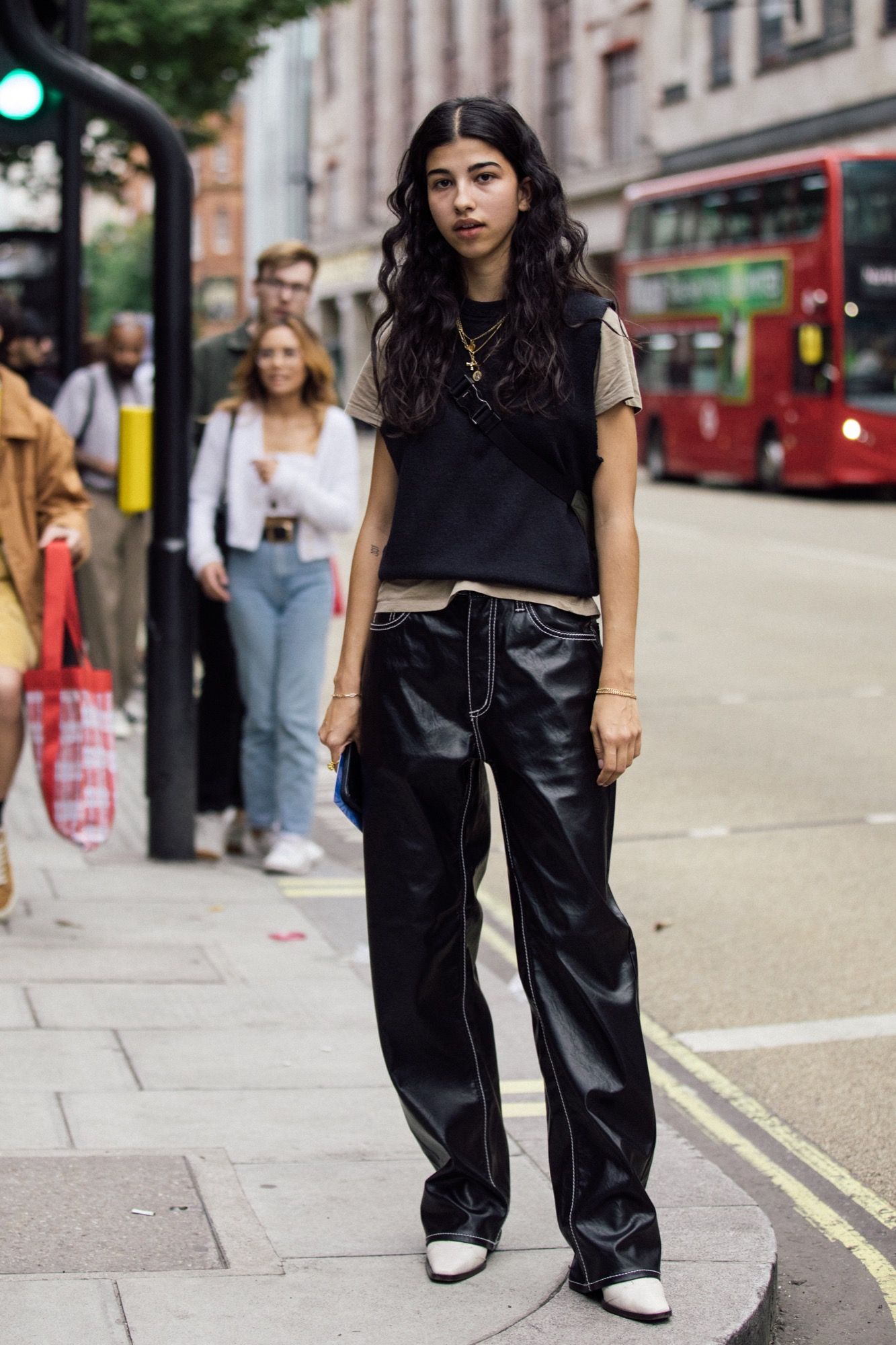 Tra tutti gli item pensabili che potevano essere recuperati dal passato, i pantaloni di pelle erano davvero i più imprevisti. Vuoi per la loro texture alternativa ai tessuti più classici, reputati banali; vuoi per la loro implicita espressione di eccesso e sensualità; vuoi per il loro scintillio che si fa notare da lontano anche con un look total black – i pantaloni di pelle sono tornati alla grande sulle strade di Londra. In Italia se ne sono visti alcuni ma si sa che la moda del Regno Unito è la più progressista. E se di pelle non si tratta allora è latex – un’altra conferma del grande ritorno dei primi 2000, Matrix e Ricky Martin inclusi.
