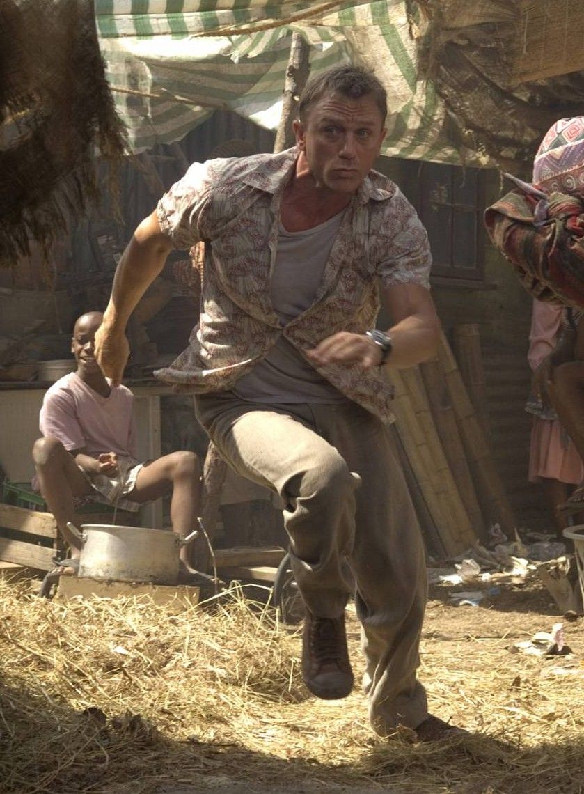 Se i completi di Bond sono italiani e americani, le sue scarpe sono rigorosamente inglesi. Moltissimi degli stivali e delle stringate in pelle che 007 abbina i suoi completi sono stati prodotti da Crockett & Jones, brand inglese nato nel 1879 – scelta molto sensata in quanto storicamente il brand ha firmato gli stivali dell’esercito inglese negli stessi anni in cui Ian Fleming faceva parte della Marina, raccogliendo ispirazioni per inventare il personaggio. Altro storico brand inglese visto in Casino Royale è John Lobb. In vacanza, però, Bond si concede anche qualche comodità: se nell’inseguimento iniziale di Casino Royale in Madagascar appaiono delle Converse Jack Purcell OTR color cioccolato; in Skyfall fanno una brevissima apparizione le adidas Gazelle 2. Altro brand su cui Bond è tornato di recente per i suo stivali invernali è Danner che ha fra l’altro firmato una collaborazione con il franchise.