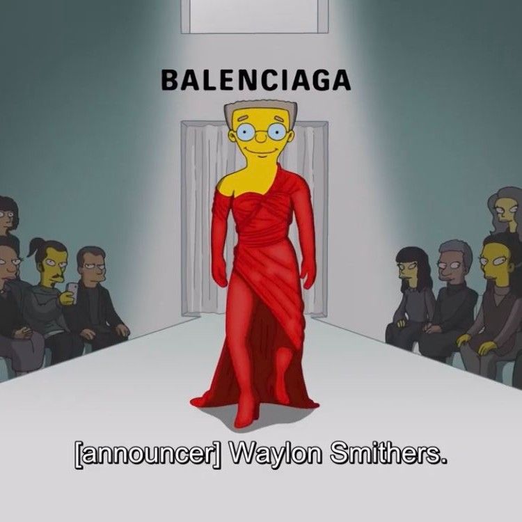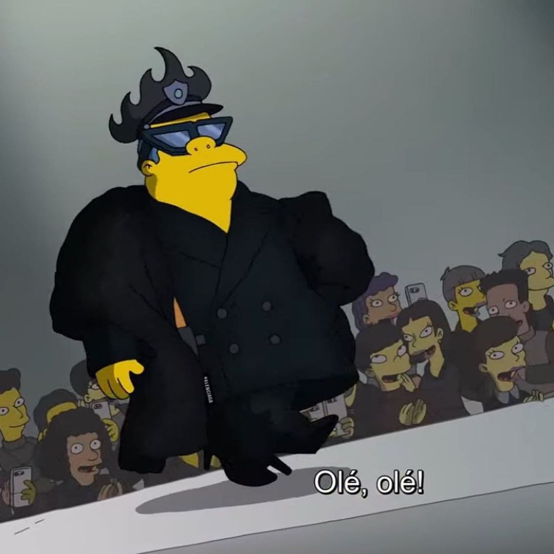 Nonostante oggi I Simpson appaiano come un riferimento culturale ed estetico un po’ datati, lo show rappresenta ancora una generazione e un’ideologia che oggi è quasi completamente tramontata ma non è stata ancora del tutto elaborata dalla società. Il fatto che oggi persone cresciute in parti diverse del mondo e diventate un’élite culturale si ritrovino a guardare un episodio dei Simpson durante uno show di Balenciaga, ha un che di tenero e nostalgico. Ma soprattutto ha mostrato la visione di Demna, che ha voluto offrire un momento confort e unità ha una generazione che oggi si affaccia al potere ma che si ritrova in un momento storico e culturale completamente ribaltato rispetto a quando I Simpson era ancora considerato lo show più irriverente della TV.