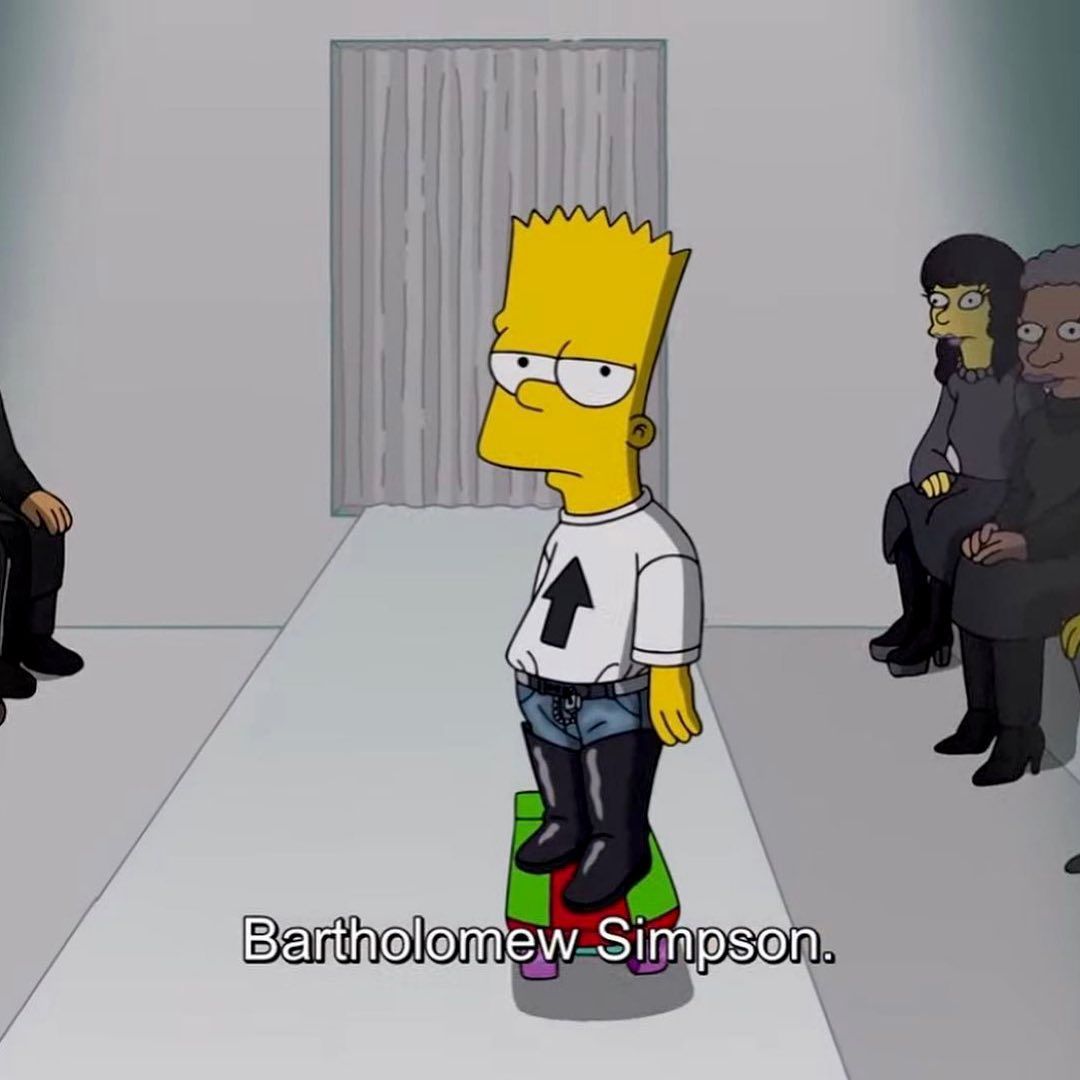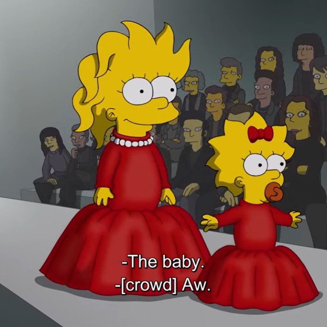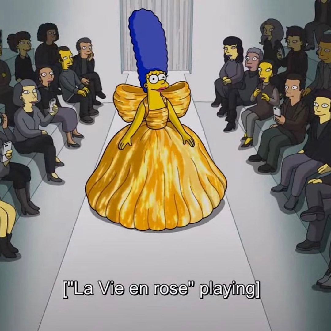 I Simpson sono stati un prodotto culturale condiviso da ragazzo di Tbilisi e uno che viveva a Parigi, creando uno strato culturale comune per una generazione che ha vissuto e visto finire il libero mercato, la libertà di movimento e l’illusione di una cultura globalizzata. Lo show ha avuto tra l’altro il proprio momento di apice quando la moda ancora non era entrata nel mainstream culturale, e infatti i riferimenti all’interno dello show sono pochi: l’episodio in cui Marge rielabora l’unico vestito di Chanel che poteva permettersi per ingannare le signore del circolo del golf o quando la famiglia si trova davanti a Prada Marfa o ancora quando Lisa sviluppa un’ossessione per la moda anni 90.