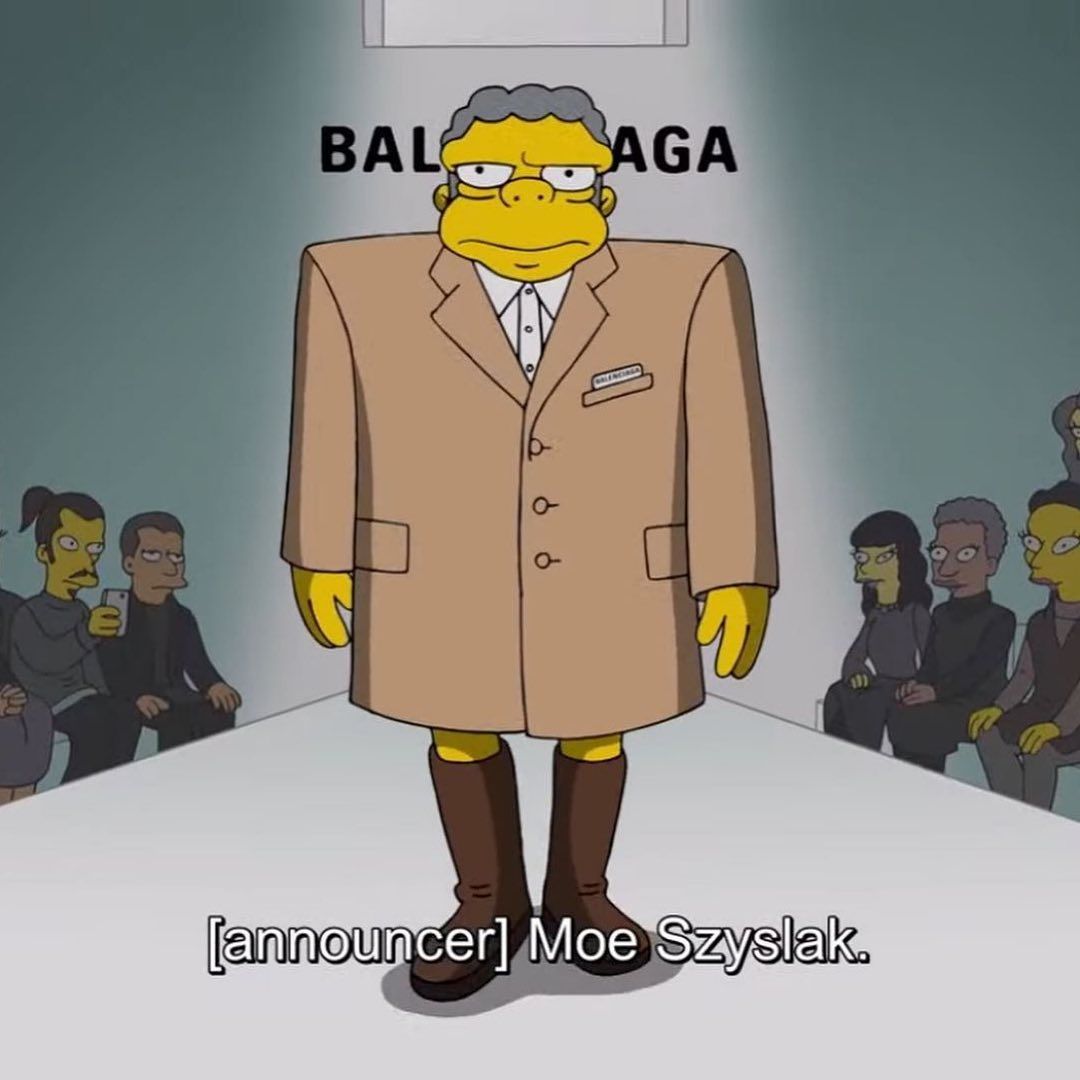 I Simpson si trovano ancora in un momento di passaggio - troppo giovani per essere considerati cult, troppo vecchi per riuscire a rilanciarsi - relativamente inoffensivi ma tuttavia ancora rilevanti per i Millennial. Per questo Demna li ha usati per la sua grande operazione di mindfuck culturale portata con Vetements prima e Balenciaga adesso a suon di meme, prodotti e un’ideologia che sta assumendo forme sempre più culturalmente pervasive. La complessità di Balenciaga sta proprio nel nella sua capacità di restare plausibile sia facendo una collaborazione con I Simpson, sia facendo sfilare Kim Kardashian con la faccia coperta al Met Gala o sia giocando con le release digitali nel metaverso. Un’interpretazione del mondo immersiva e profonda che parla contemporaneamente e pubblici diversi e ribalta la prospettiva di osservazione: It’s a Balenciaga world, we just live in it.