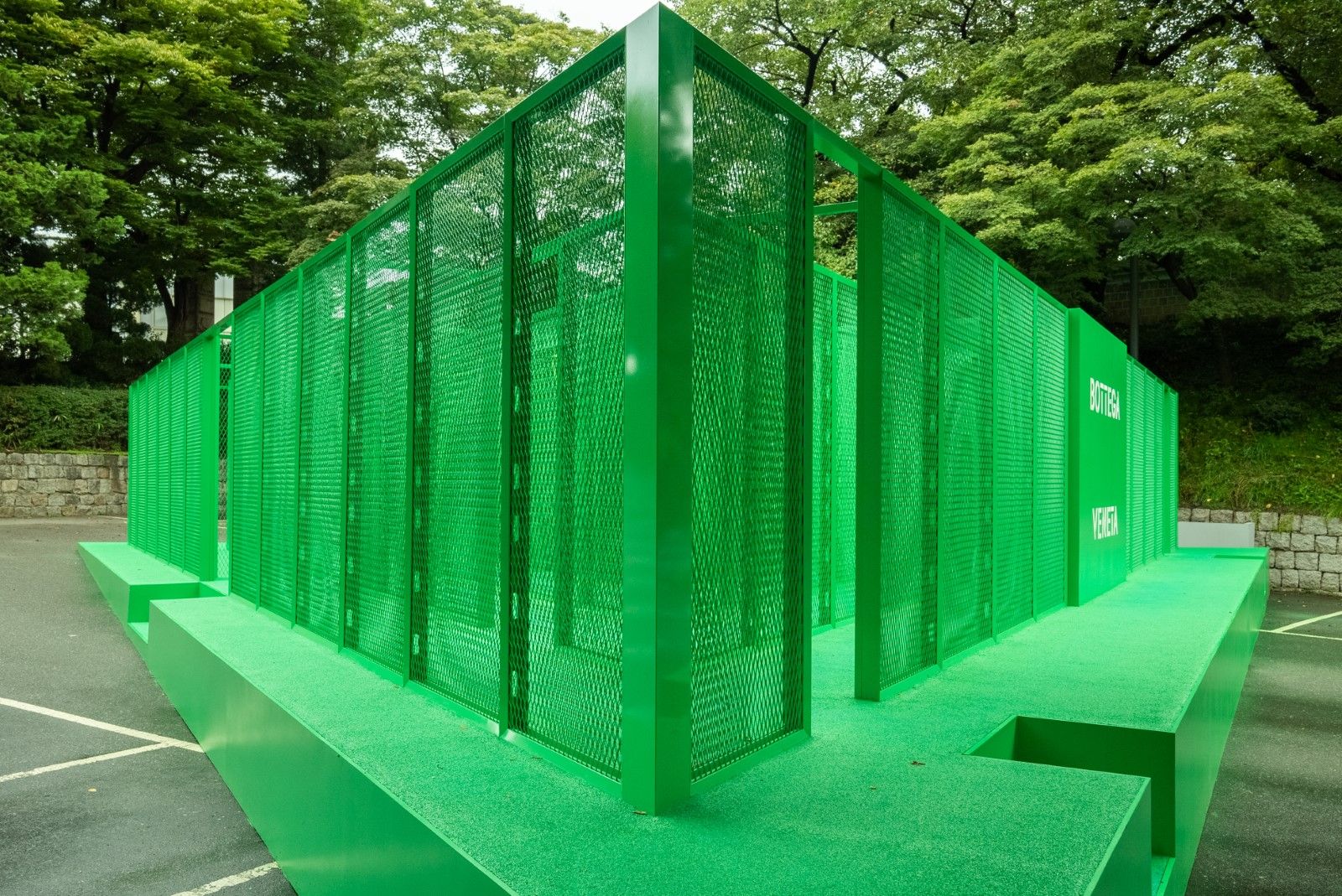 La scorsa settimana, Bottega Veneta ha presentato a Seoul la sua nuova e misteriosa installazione chiamata The Maze. L’installazione si trova davanti al Grand Hyatt Seoul e non contiene alcun prodotto: in pieno stile Daniel Lee, infatti, il labirinto si dipana per sedici metri con una struttura metallica interamente dipinta del Parakeet Green diventato da qualche anno una delle signature del brand, e una stanza centrale interna ricoperta da code di volpe sintetiche dello stesso colore che riecheggiano alcuni dei look visti durante Salon 02, ovvero la collezione FW21 del brand presentata a Berlino lo scorso aprile.