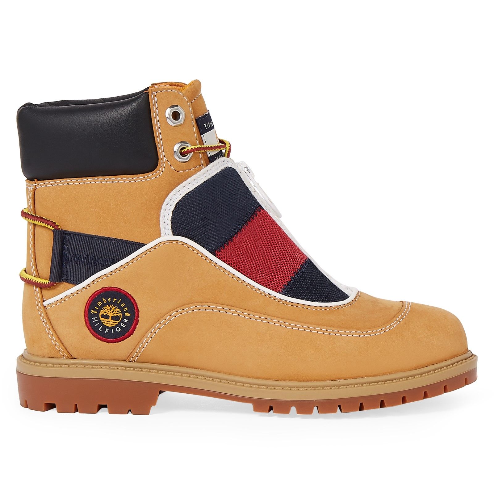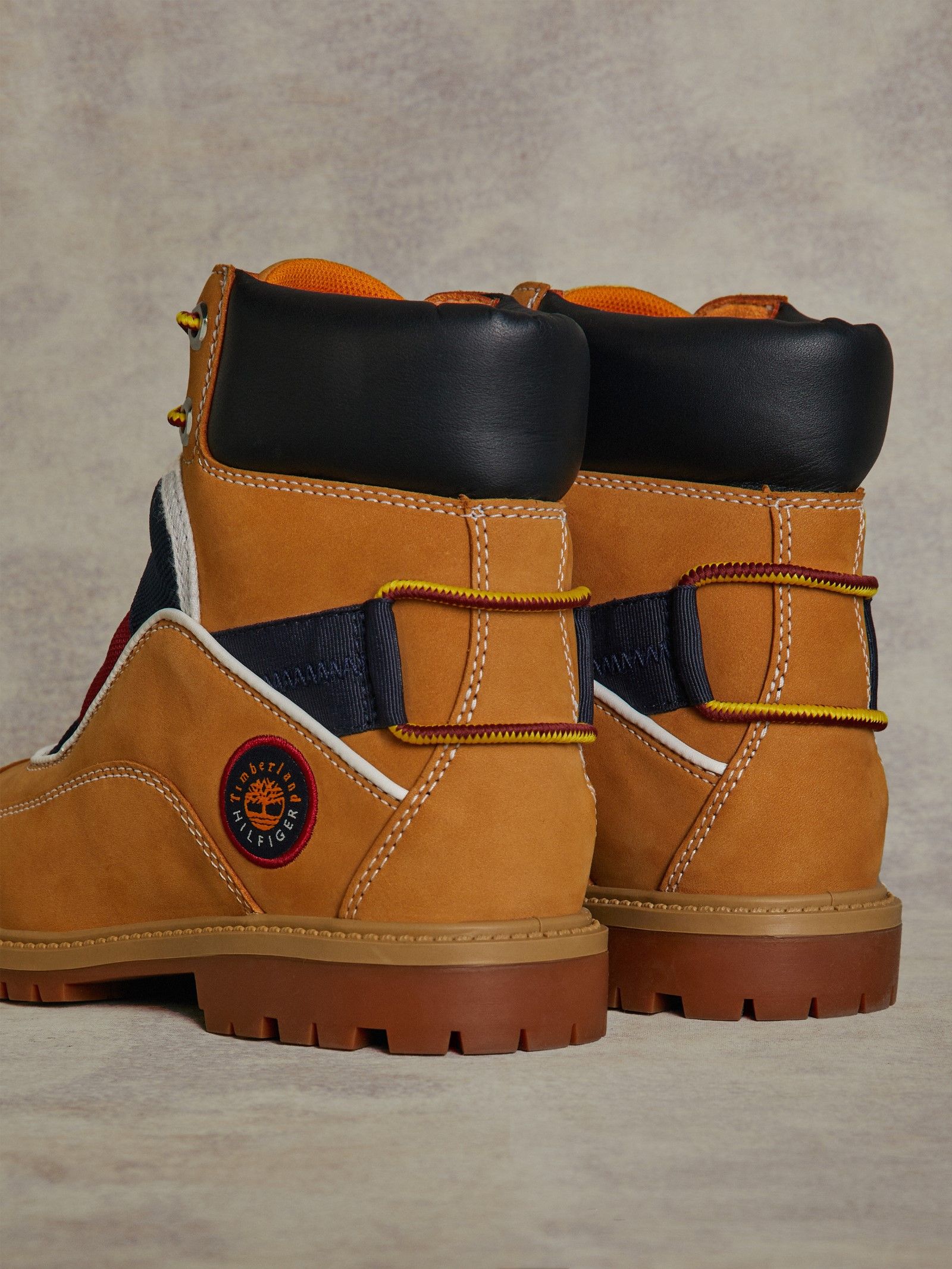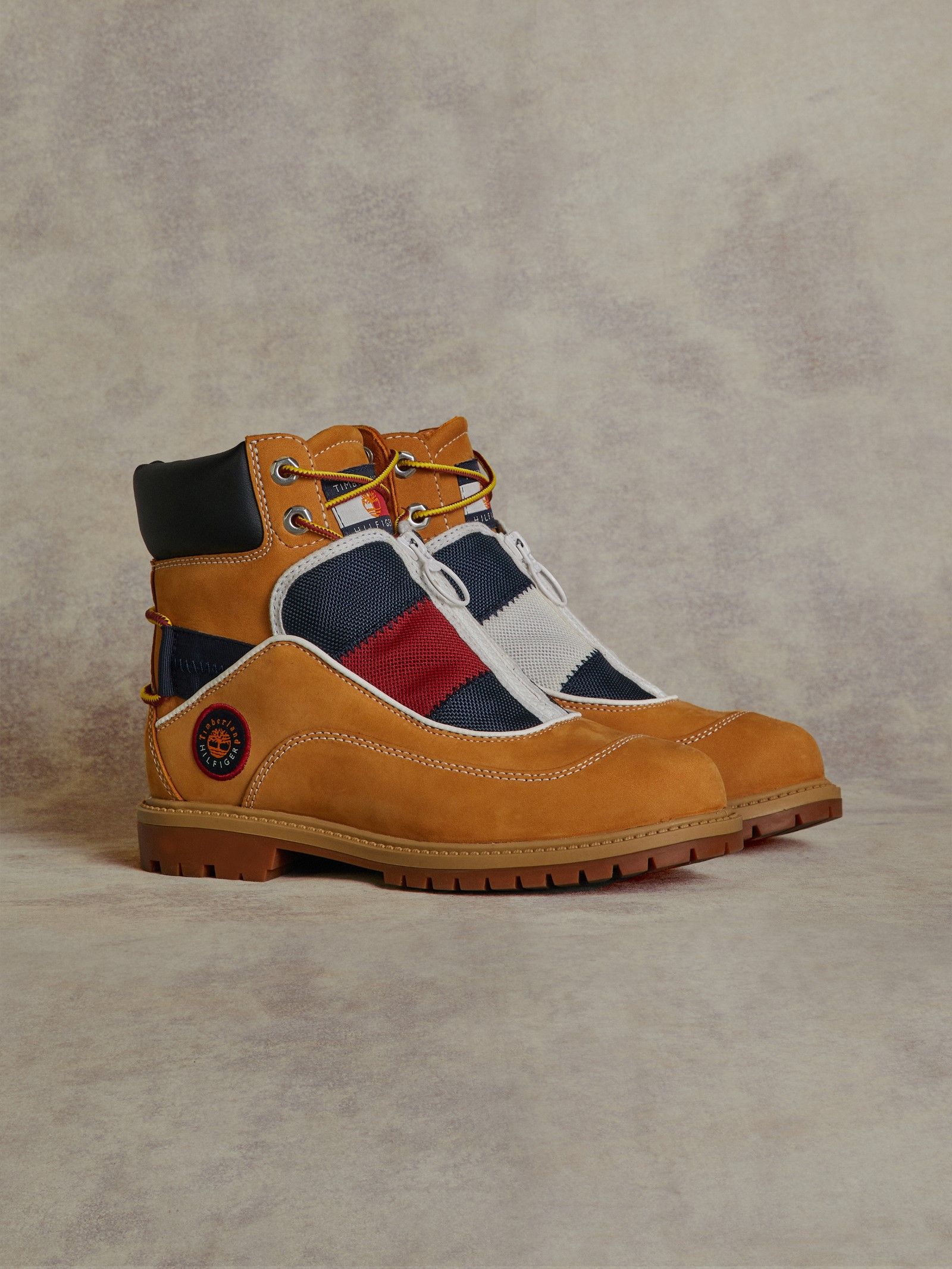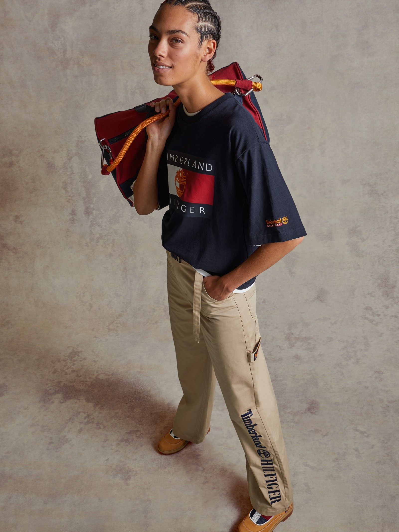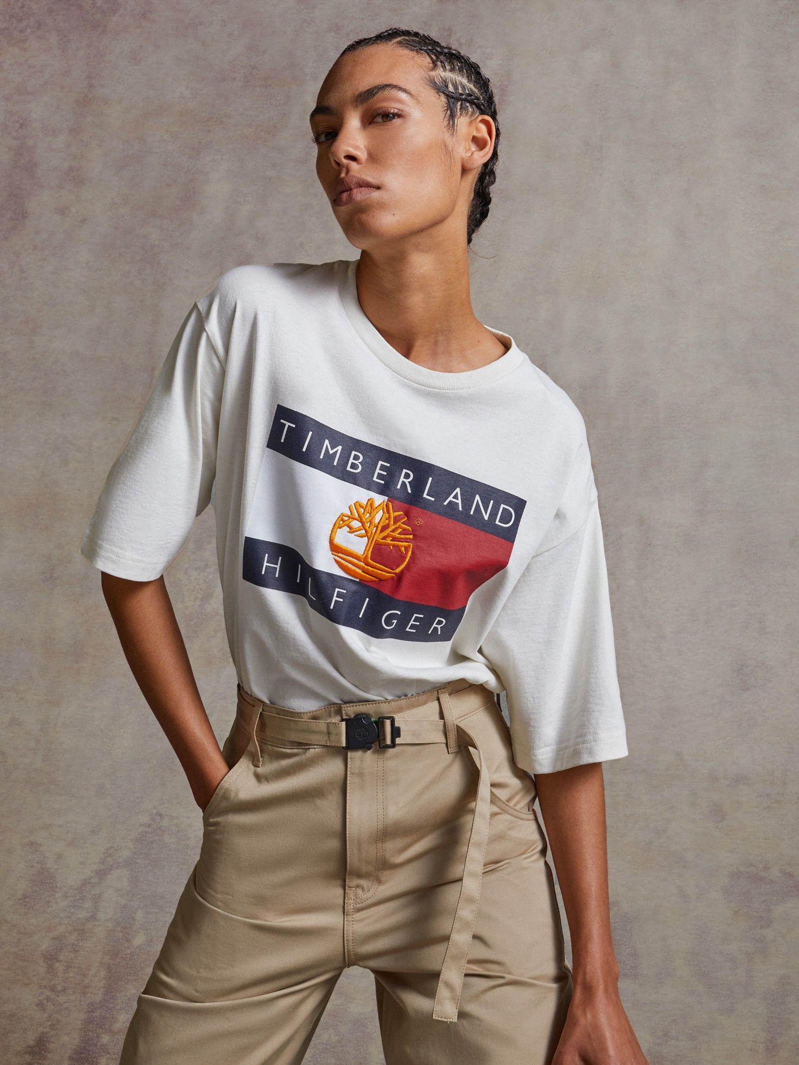 Una doppia storia parallela che può essere sintetizzata nei due item più iconici del repertorio americano ridisegnati nella capsule: per Lee Holman si tratta della varsity jacket «che recupera il nostro heritage collegiale unendolo alla comodità dell’amatissima fleece di Timberland»; per Raeburn si tratta invece del classico stivale Timberland «remixato con il DNA di Tommy Hilfiger» che «anche senza logo urla Timberland e Tommy». Ma, come lo stesso Hilfiger spiega, «il potere di una collaborazione è unire il meglio che ciascun brand ha da offrire», e dunque la collaborazione si comporrà di due capitoli: il primo, in arrivo domani, che si concentra sulla celebrazione dell’heritage dei due brand, rievocando dunque il passato; e un secondo all’inizio del mese prossimo che invece proverà a immaginare un futuro fatto di eco-innovation e tecnologie sostenibili.