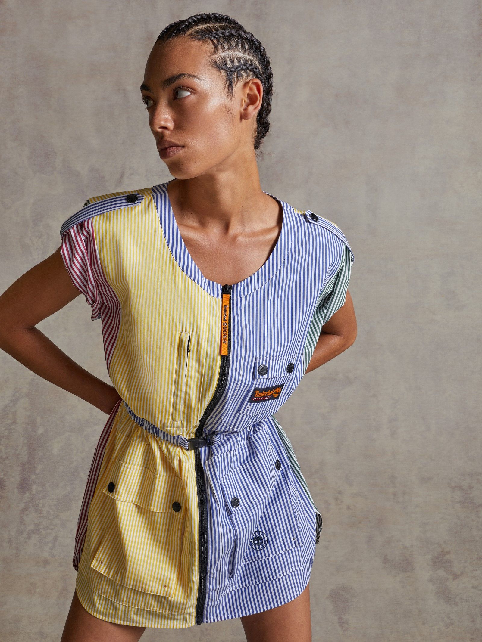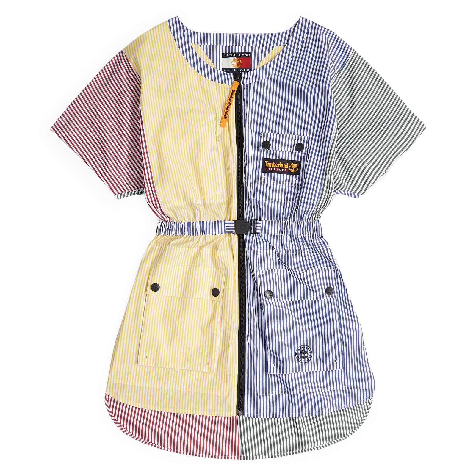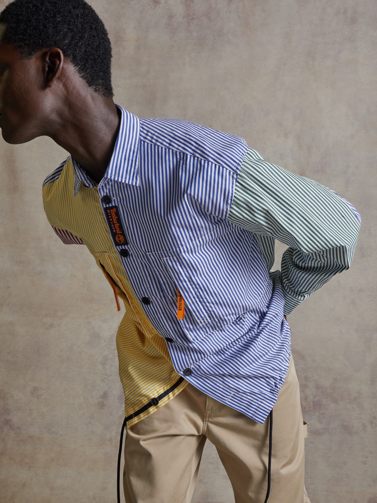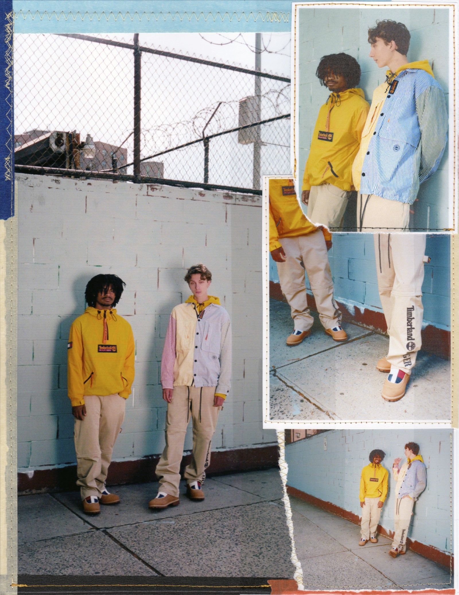 La parola «scontro» usata dal designer del brand riguarda forse più il dinamismo visivo della collezione, dell’ «energia e dello stile dello streetwear anni ‘90» – in quanto, come lui stesso ha sottolineato sono stati proprio i consumatori a portare insieme i due brand in quegli anni. La nuova capsule serve dunque da un lato a ufficializzare questa unione e dall’altro a «celebrare e rifunzionalizzare il nostro heritage condiviso», come ha invece raccontato Christopher Raeburn, direttore creativo di Timberland. Proprio per quest’ultimo, la creazione della capsule a partire dagli archivi dei due storici brand è stata come un lavoro archeologico: «andare a ritrovare pezzi storici e fare in modo di farli evolvere, aggiornarli e migliorarli per i consumatori di oggi».