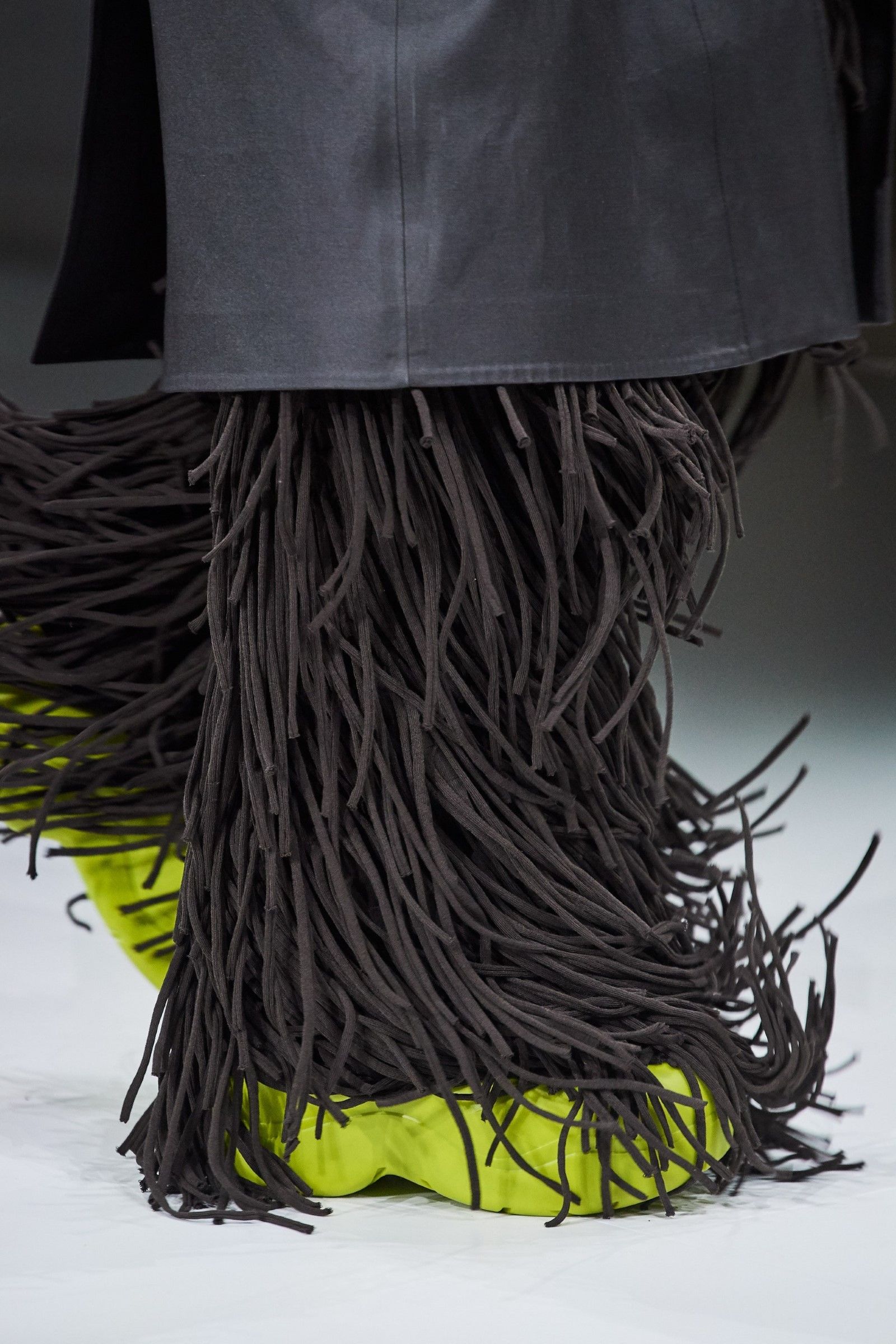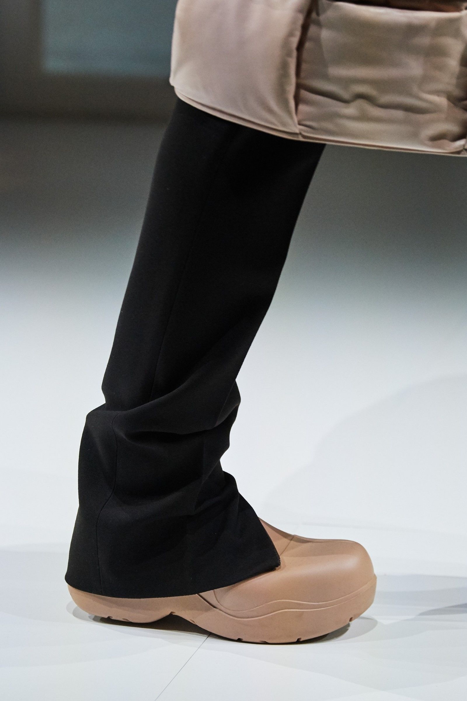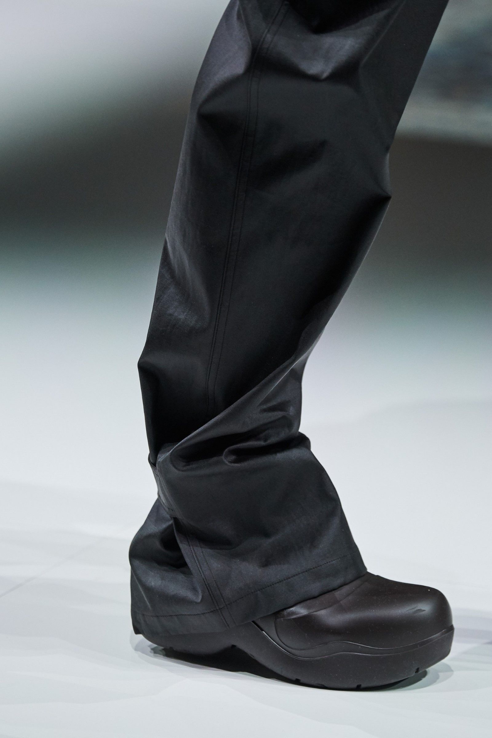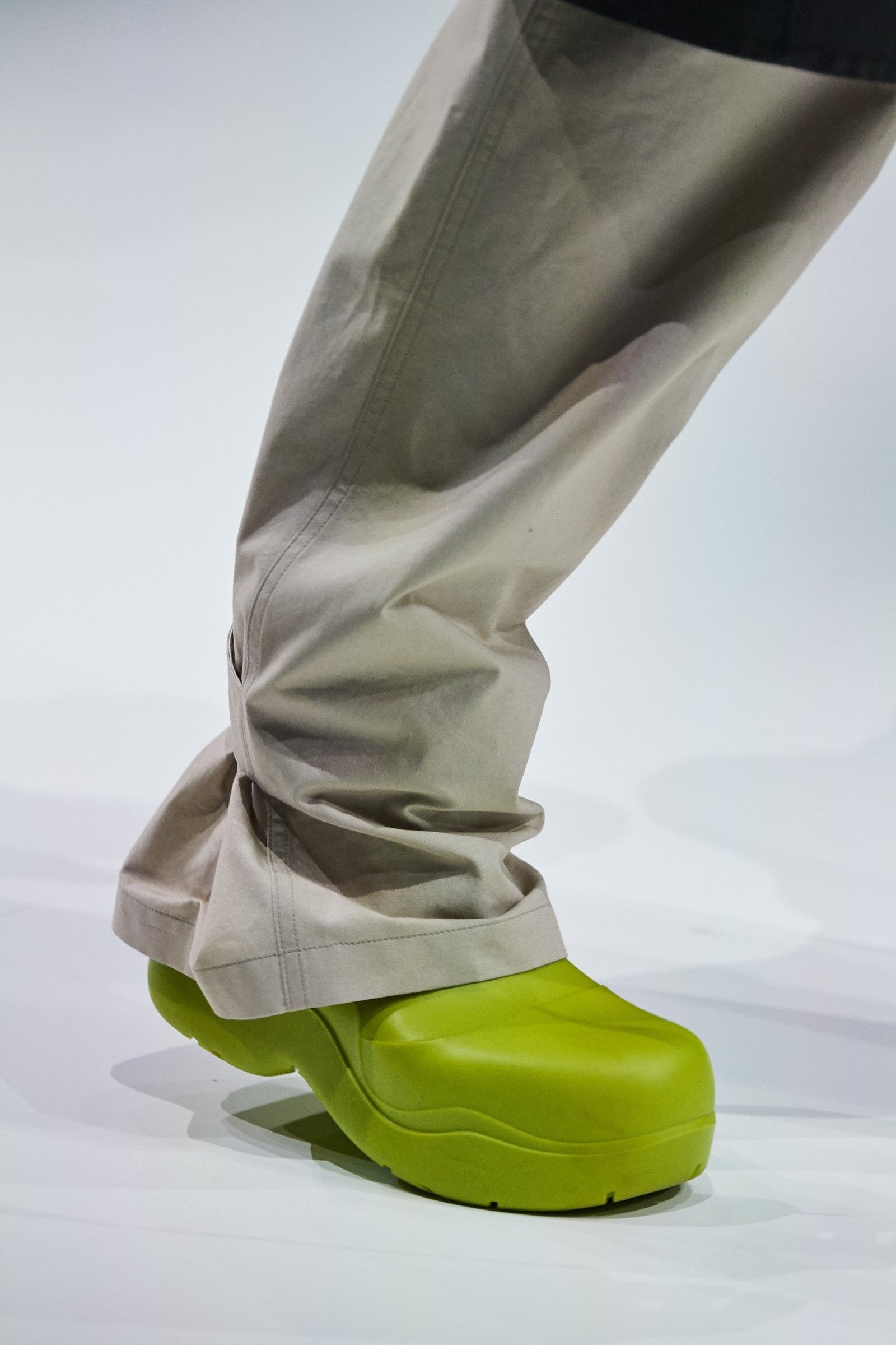 La FW20 di Lee è forse una delle sue sfilate migliori. Le installazioni luminose che riproducono arcate neoclassiche, gli ipnotici e cupi violini che paiono usciti da Intervista col Vampiro, i tagli quasi chirurgici delle silhouette, le cascate di frange, le proporzioni. La breakout star dello show però passa inosservata all’inizio: è il Puddle Boot. Uno stivale di gomma monocolore e tondeggiante, che ha fatto il giro dei social media ed è diventato forse la scarpa più desiderabile del mondo dopo la Triple S di Balenciaga. Retrospettivamente, in effetti, il successo del Puddle Boot ha superato quello della collezione stessa – ma soprattutto ha influenzato la produzione di stivali di gomma dalle forme tondeggianti da parte di qualunque brand di moda e lanciato definitivamente il trend delle luxury rubber shoes.