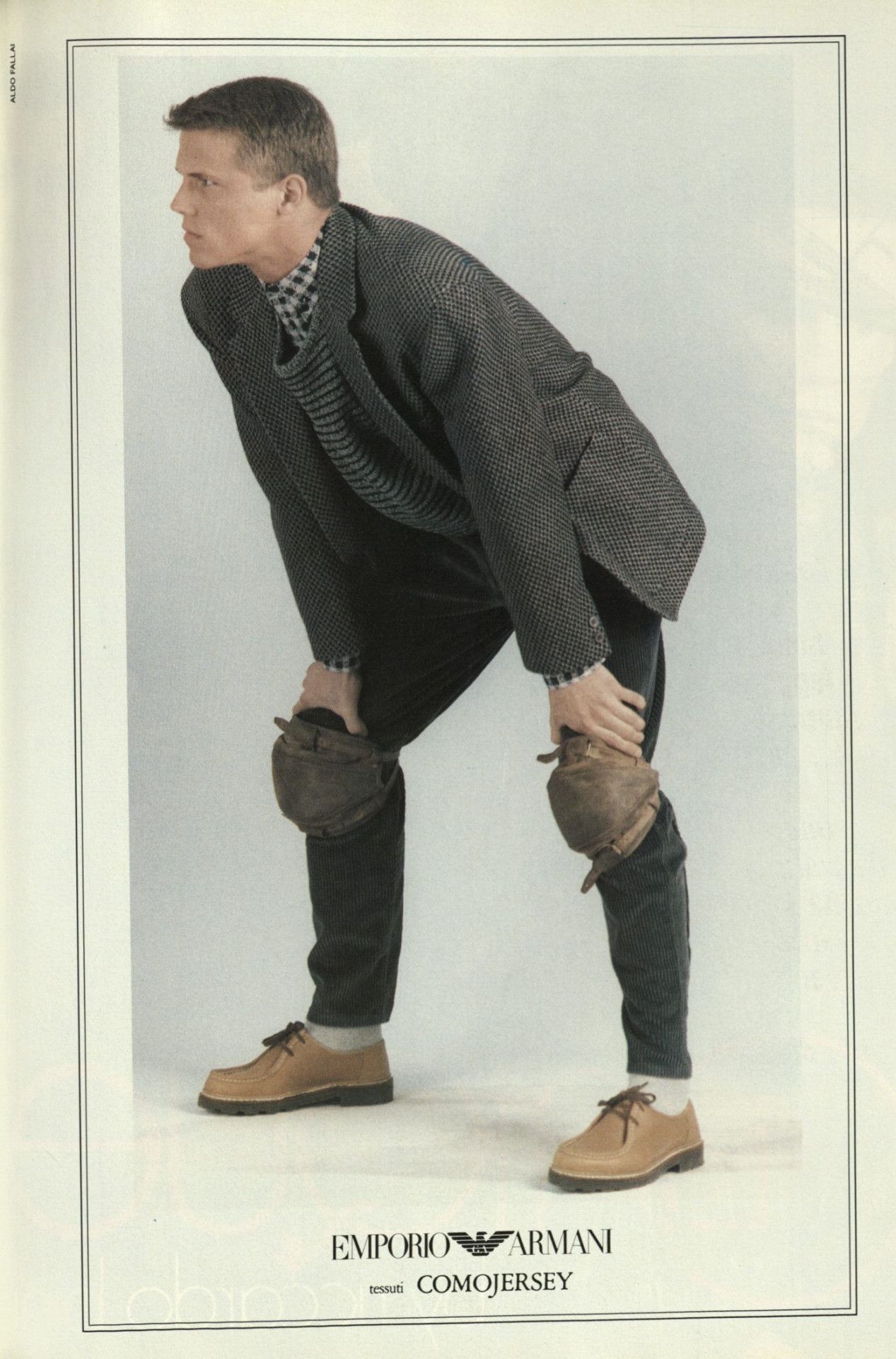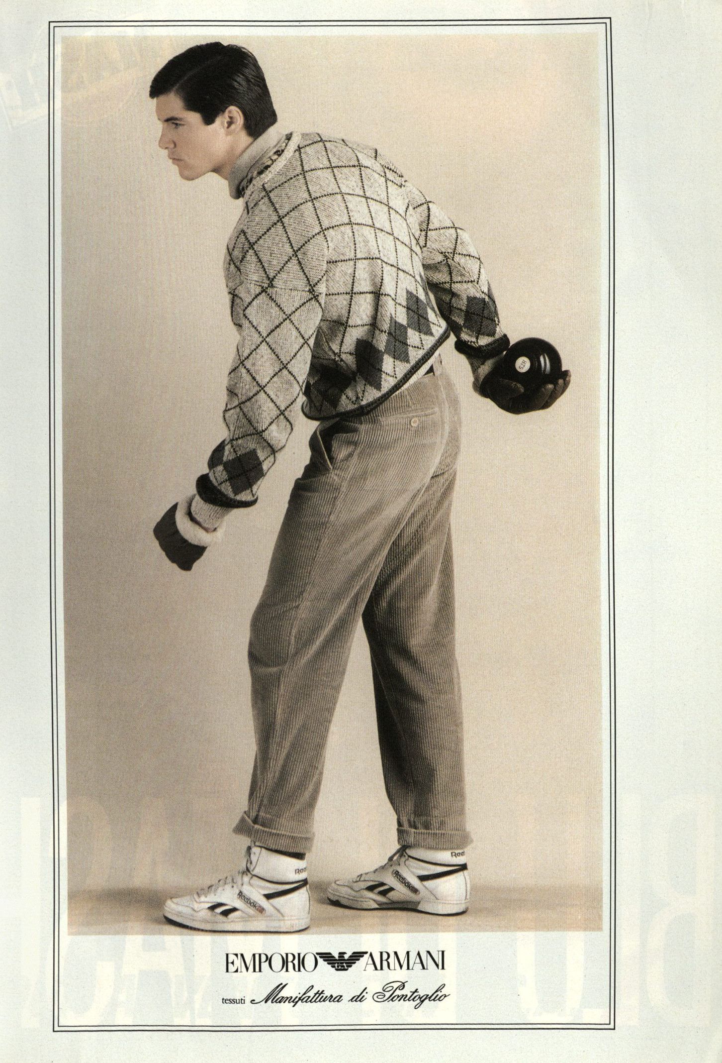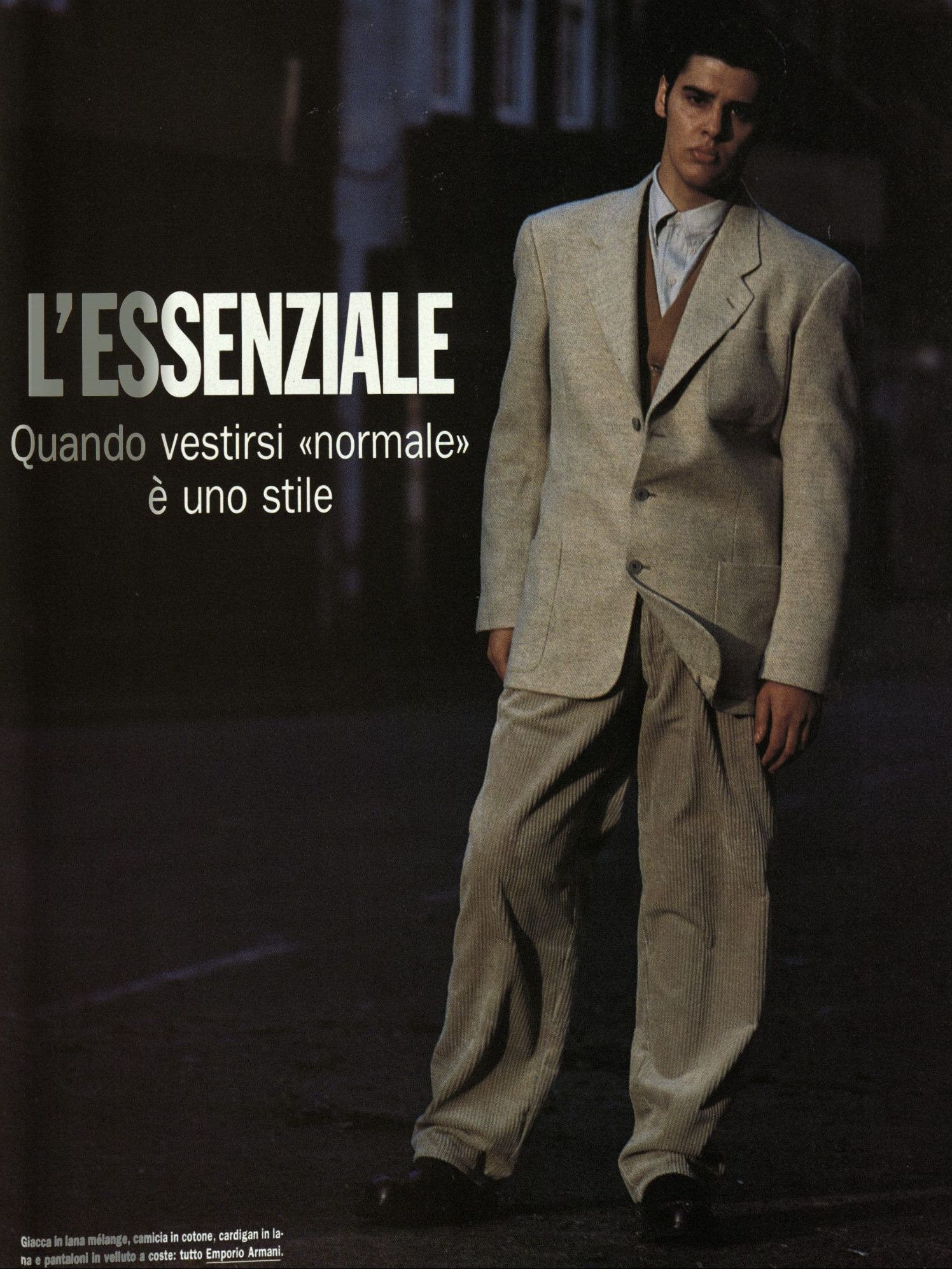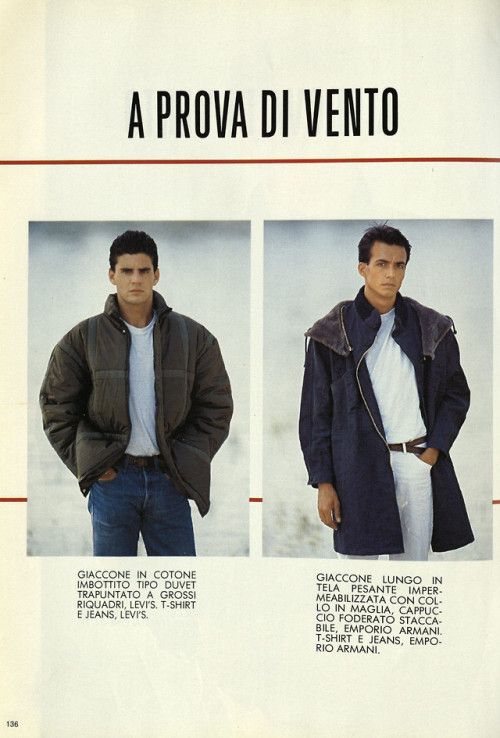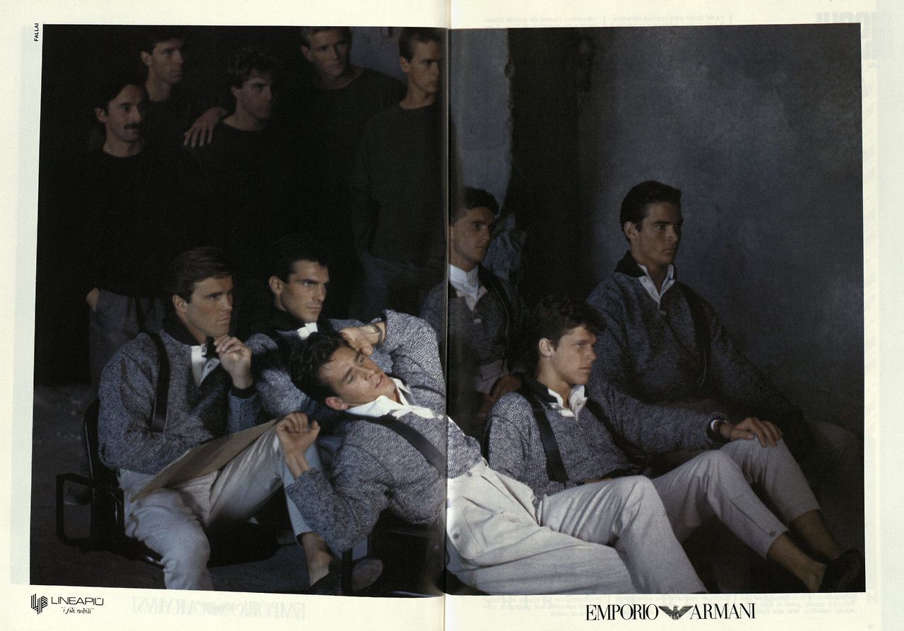 Parlando con System Magazine nell’aprile del 2014, Armani raccontò di Emporio e delle foto di Aldo Fallai: «I modelli dovevano essere naturali, puliti ed espressivi. Volevo volti che dimostrassero sveltezza di pensiero e caratteri solidi. Per molti anni gli abiti erano stati costruiti con stoffe rigide che inscatolavano il corpo. Io preferivo naturalezza, nonchalanche, piccoli difetti - ed è per questo che ho scelto stoffe e materiali soffici che potessero carezzare il corpo come niente era riuscito a carezzarlo dai tempi della rivoluzione industriale. Era una nuova sensibilità che andava oltre lo stereotipo dell’uomo tutto muscoli perché rivelava un senso di rigore e precisione che non intaccava la sensualità maschile». Tutte parole verissime che però non riescono a spiegare in pieno la ricchezza visiva di quei look, il cui range era vastissimo e includeva tanto i completi di sartoria che i jeans, il workwear ma soprattutto lo sportswear – e tutto questo in un’epoca in cui la Zar-ificazione dei brand di moda non era ancora avvenuta e l’idea di un full look dedicato ai giovani non esisteva davvero. Andando ad analizzare le molte campagne di Emporio dell’epoca, ad esempio, si notano molti risvolti ai pantaloni – scanzonata e rilassatissima risposta agli orli sartoriali dei completi anni ’60 e ’70 e simbolo di una generazione che stava iniziando a reinterpretare il guardaroba dei propri padri.