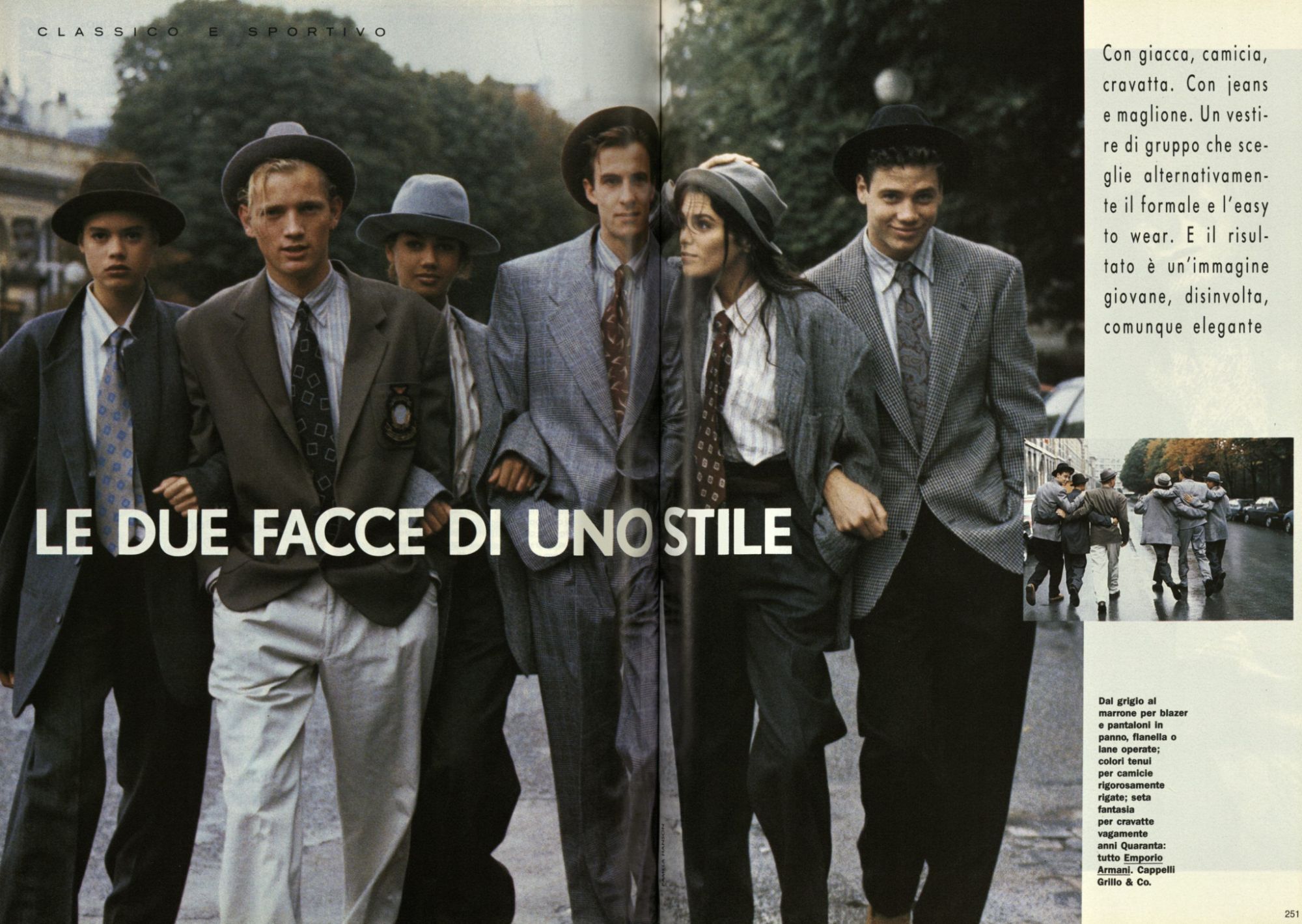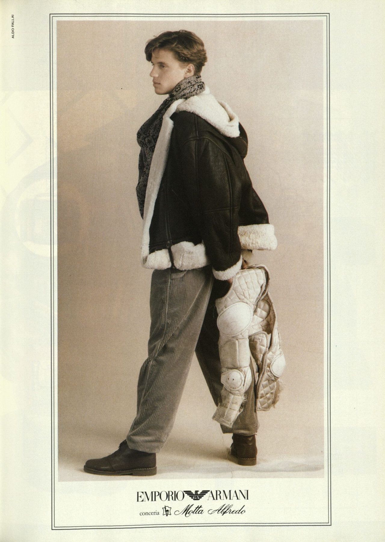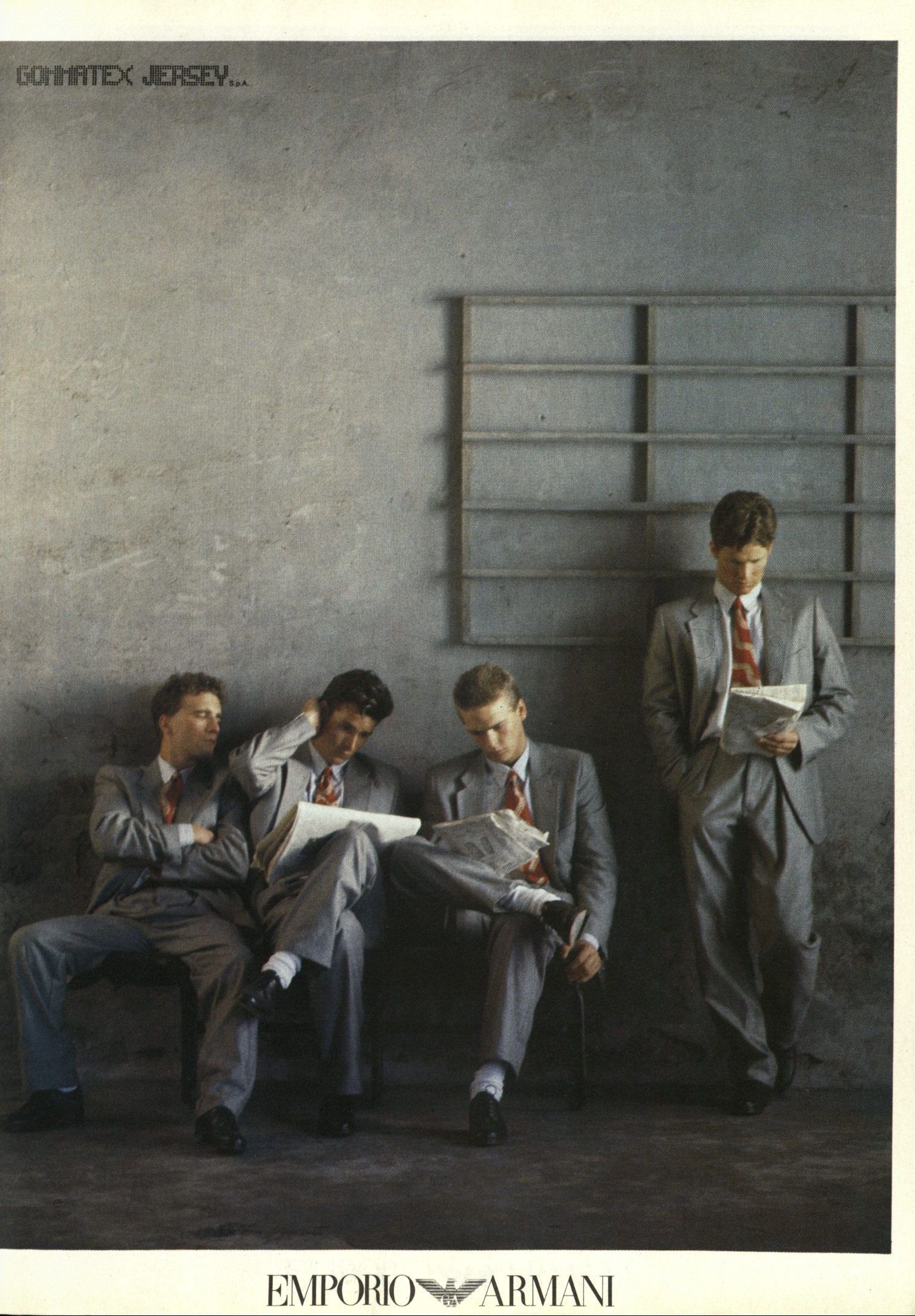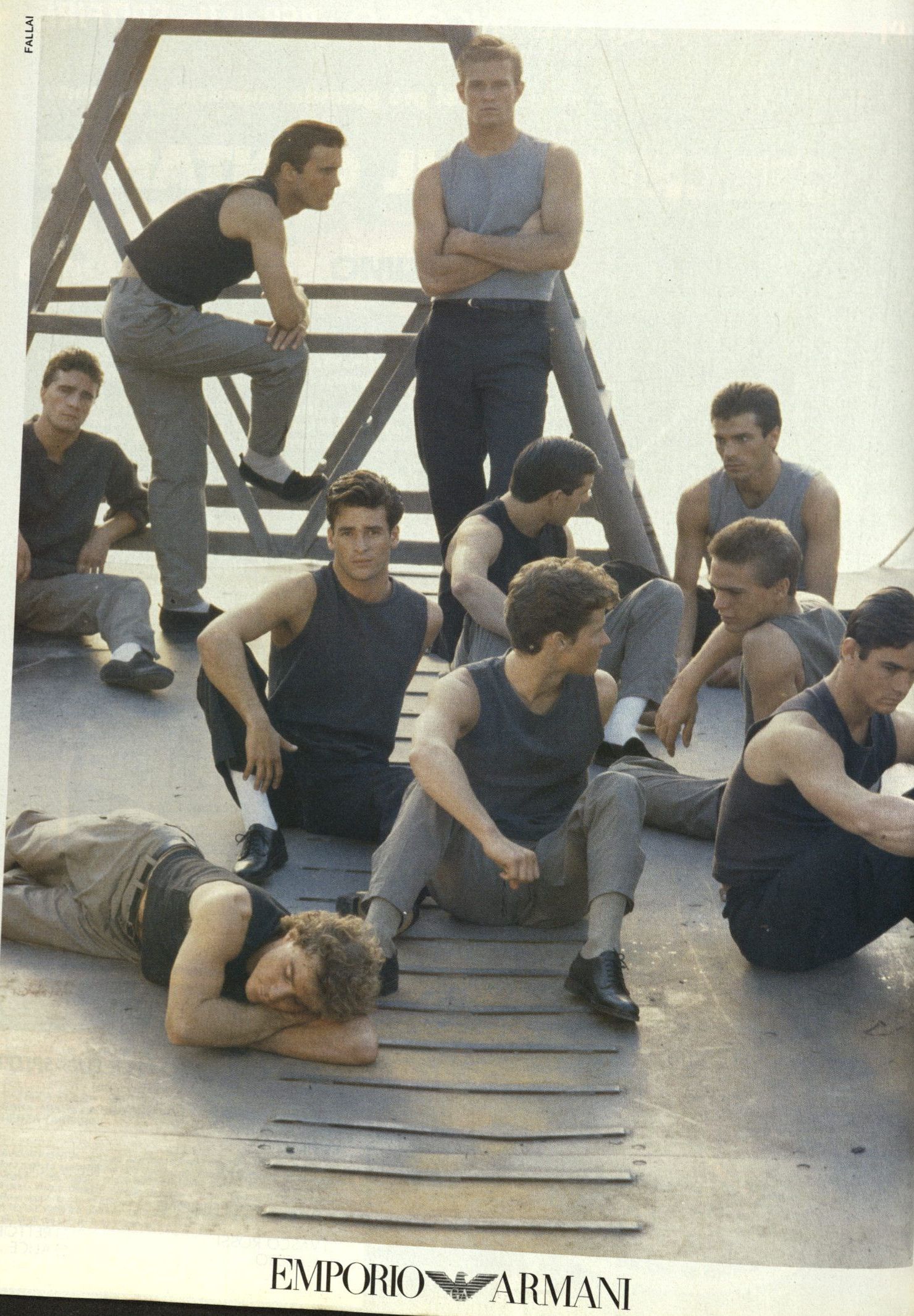 Parlando con System Magazine nell’aprile del 2014, Armani raccontò di Emporio e delle foto di Aldo Fallai: «I modelli dovevano essere naturali, puliti ed espressivi. Volevo volti che dimostrassero sveltezza di pensiero e caratteri solidi. Per molti anni gli abiti erano stati costruiti con stoffe rigide che inscatolavano il corpo. Io preferivo naturalezza, nonchalanche, piccoli difetti - ed è per questo che ho scelto stoffe e materiali soffici che potessero carezzare il corpo come niente era riuscito a carezzarlo dai tempi della rivoluzione industriale. Era una nuova sensibilità che andava oltre lo stereotipo dell’uomo tutto muscoli perché rivelava un senso di rigore e precisione che non intaccava la sensualità maschile». Tutte parole verissime che però non riescono a spiegare in pieno la ricchezza visiva di quei look, il cui range era vastissimo e includeva tanto i completi di sartoria che i jeans, il workwear ma soprattutto lo sportswear – e tutto questo in un’epoca in cui la Zar-ificazione dei brand di moda non era ancora avvenuta e l’idea di un full look dedicato ai giovani non esisteva davvero. Andando ad analizzare le molte campagne di Emporio dell’epoca, ad esempio, si notano molti risvolti ai pantaloni – scanzonata e rilassatissima risposta agli orli sartoriali dei completi anni ’60 e ’70 e simbolo di una generazione che stava iniziando a reinterpretare il guardaroba dei propri padri.