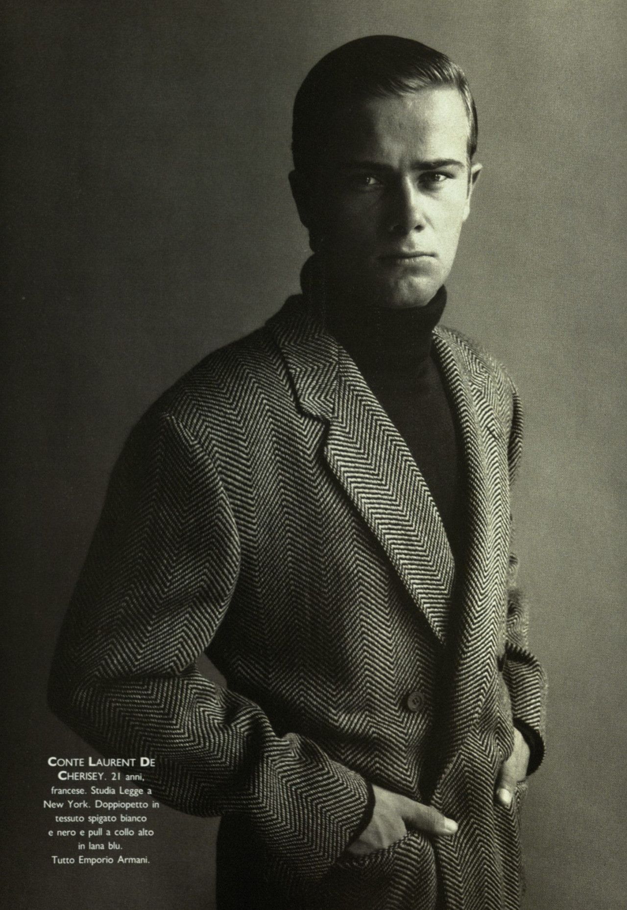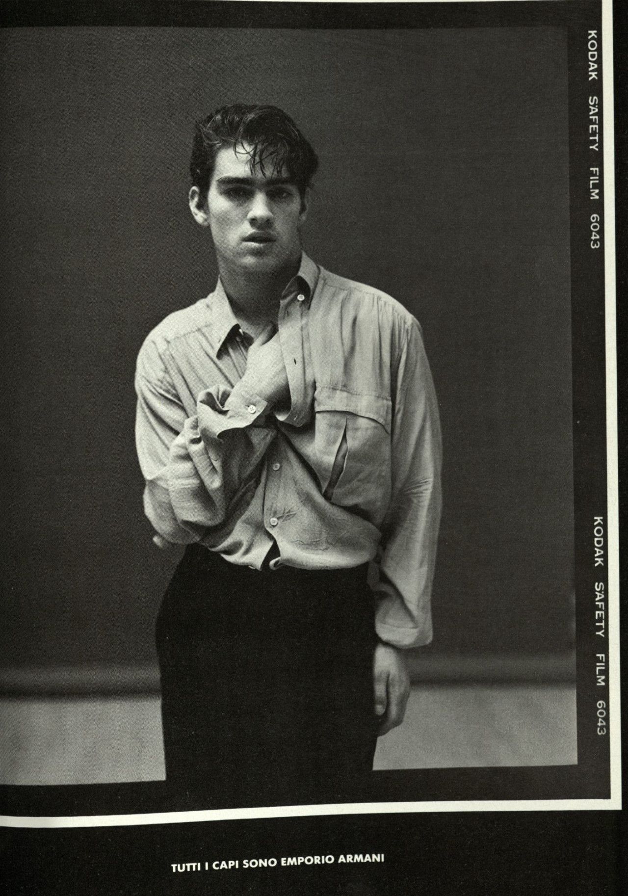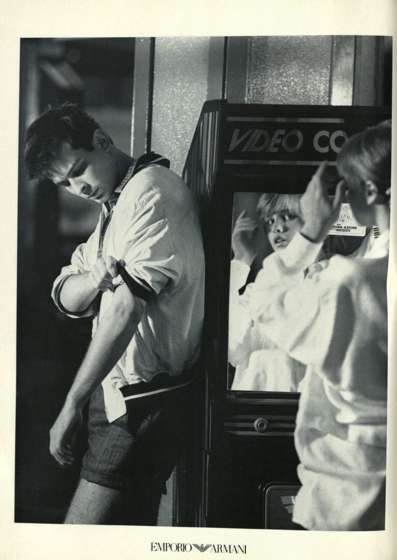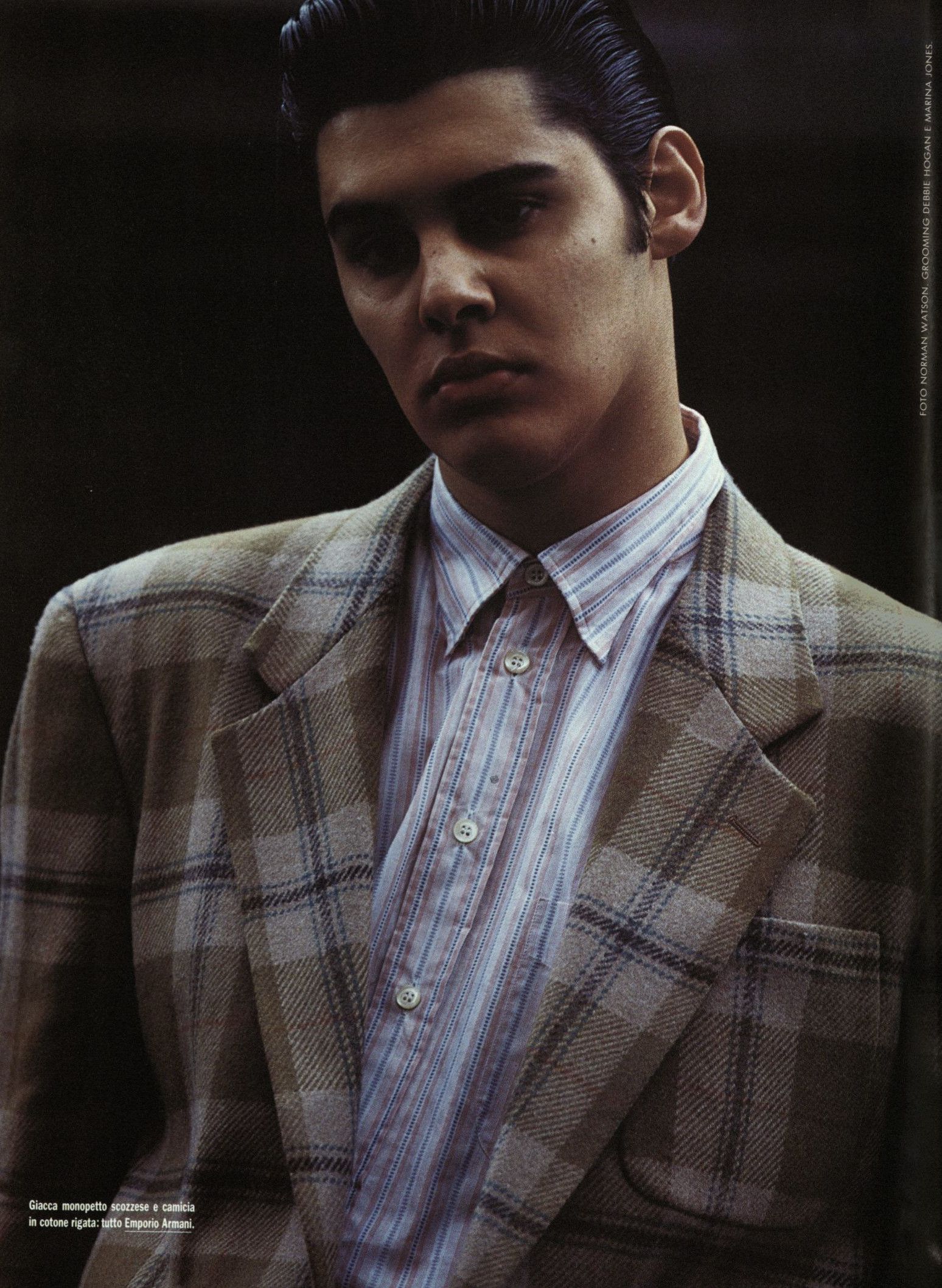 Strano ma vero, quando il magazine Per Lui, membro della famiglia Vogue, pubblicò un servizio dedicato al teen idol diciottenne Rodney Harvey, lo stylist lo vestirono di Emporio Armani dalla testa ai piedi – a testimonianza di una edginess che contraddistingueva il brand e a una sua fortissima riconoscibilità, anche davanti a una completa mancanza di loghi.