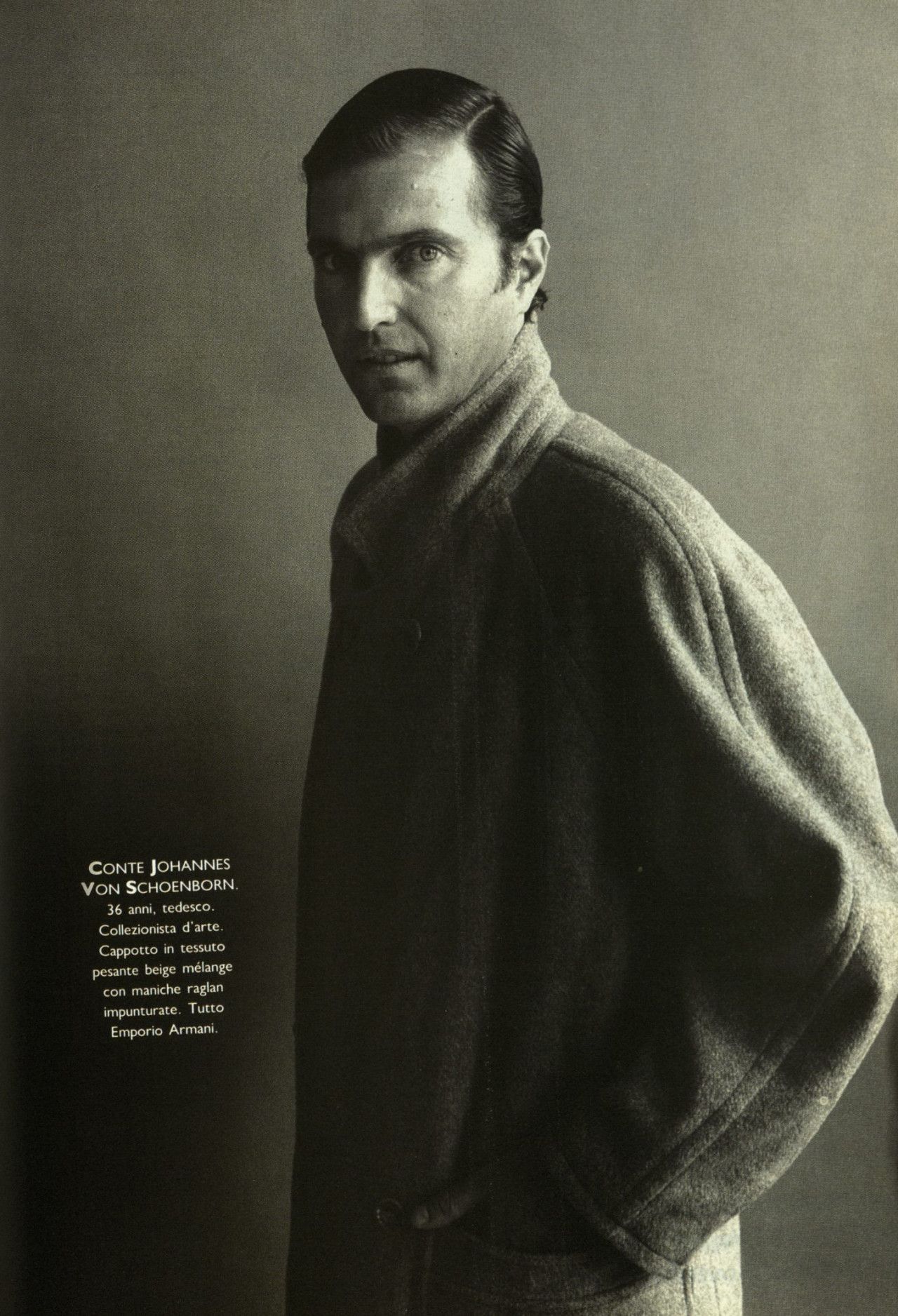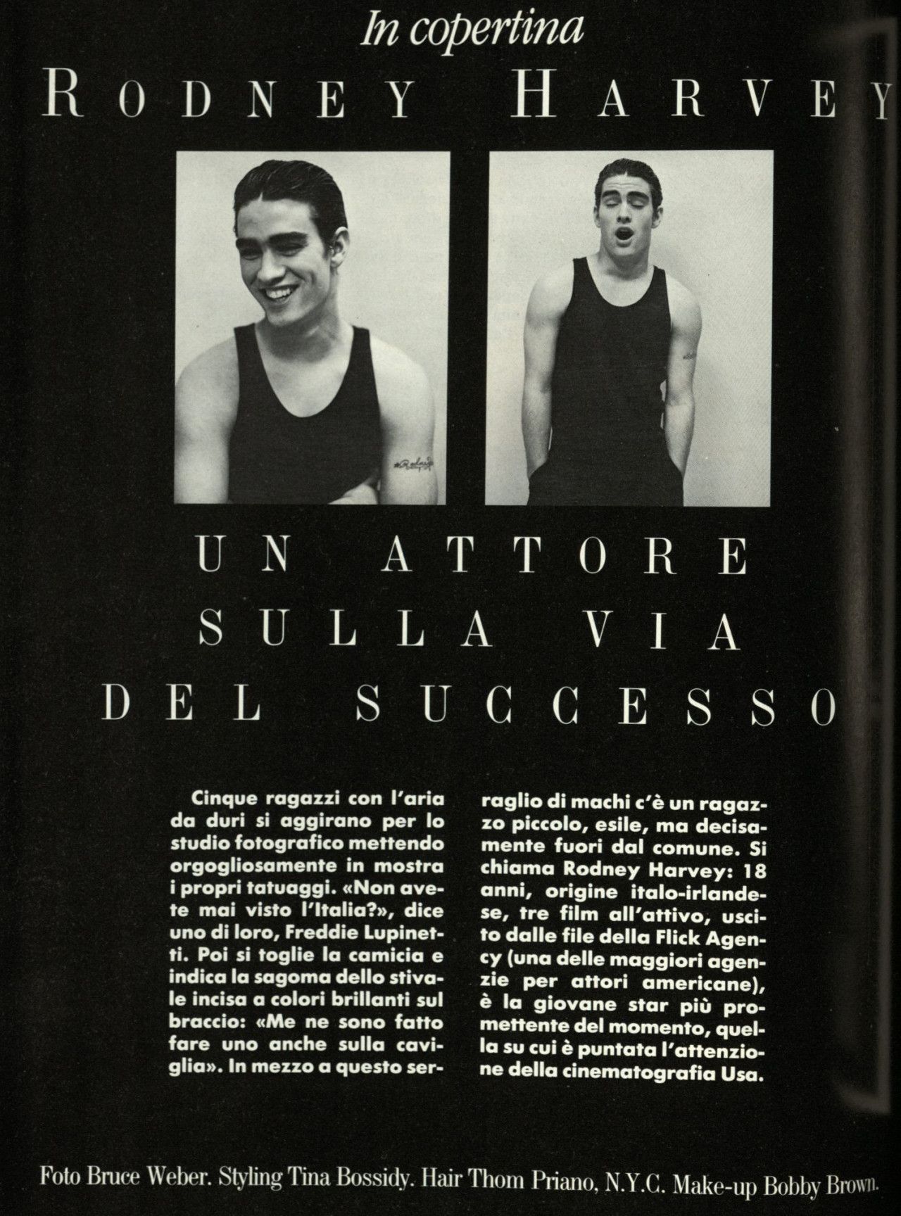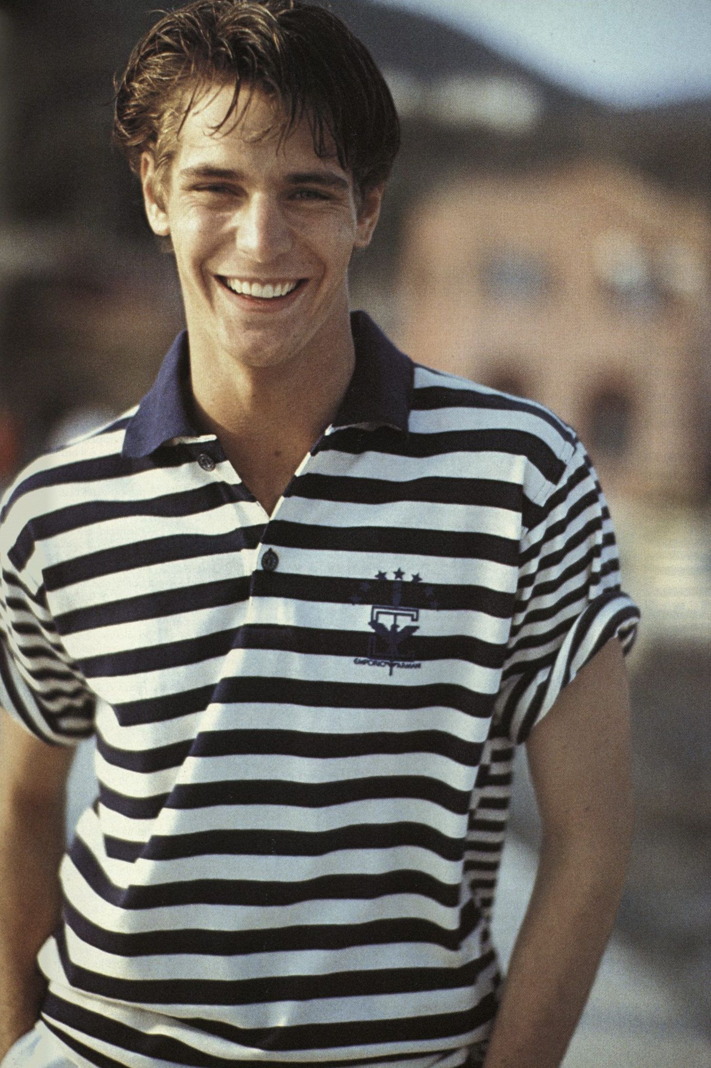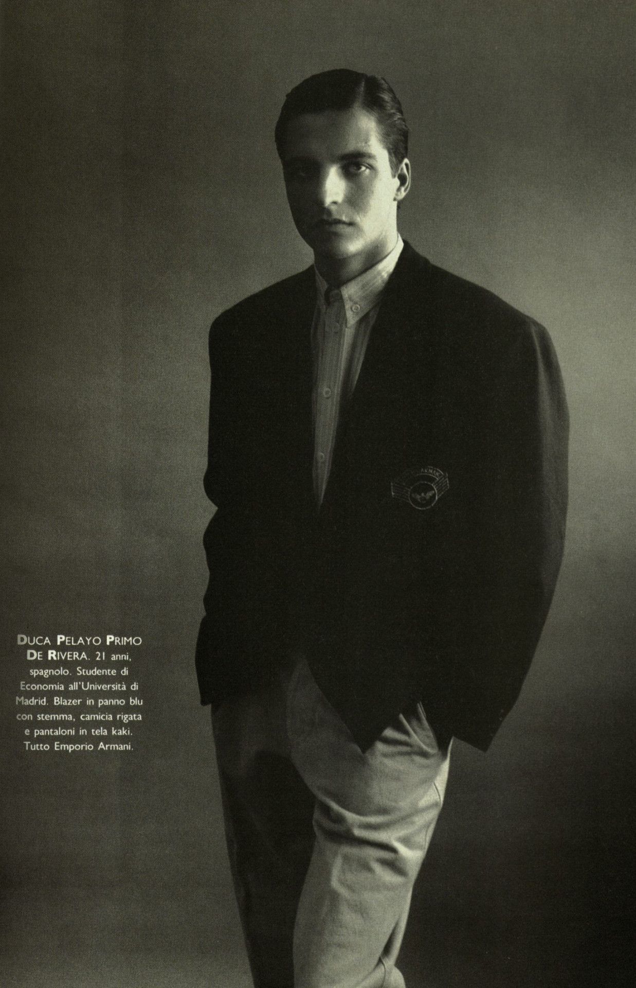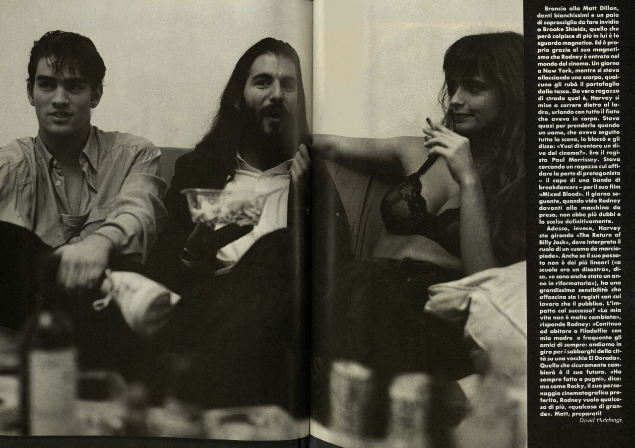 Strano ma vero, quando il magazine Per Lui, membro della famiglia Vogue, pubblicò un servizio dedicato al teen idol diciottenne Rodney Harvey, lo stylist lo vestirono di Emporio Armani dalla testa ai piedi – a testimonianza di una edginess che contraddistingueva il brand e a una sua fortissima riconoscibilità, anche davanti a una completa mancanza di loghi.