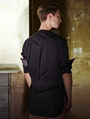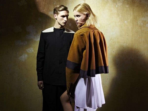In the Autumn / Winter 12 collection, Levi and Matthew's point of reference was the contemporary art, especially the wooden sculptures of BrunoWalpoth and photography by George Platt Lynes, subtly celebrated through a slight contrast in texture. The tunic shape, protagonist of this line, is reworked through complex pattern cutting, fabric panels carefully placed, dozens of highly detailed stitching, reaching pure a but impressive minimalism, which is definitely the label's trademark.