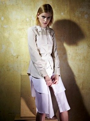 Texas born Levi Palmer and the londoner Matthew Harding, meet each other at Central Saint Martins and decide to re-establish the rules of basic wear. Looking at the seasonal turnover, both felt a sort of strange regret in designers' works for an essential garment of men and women's wardrobe, the shirt. So they choose to give life to palmer//harding, debuting last September during the London Fashion Week with their Spring-Summer 12 collection. The unique project focus on a single garment, the shirt, declined in all possible directions. If in the past worn a shirt with nothing over it was considered improper, it definitely gets a new meaning through the design of palmer//harding that plays with proportions and sophisticated cutting techniques, blending in each garment the classic tailoring and experimentation, to create and plain and wearable pieces, but with a strong identity.